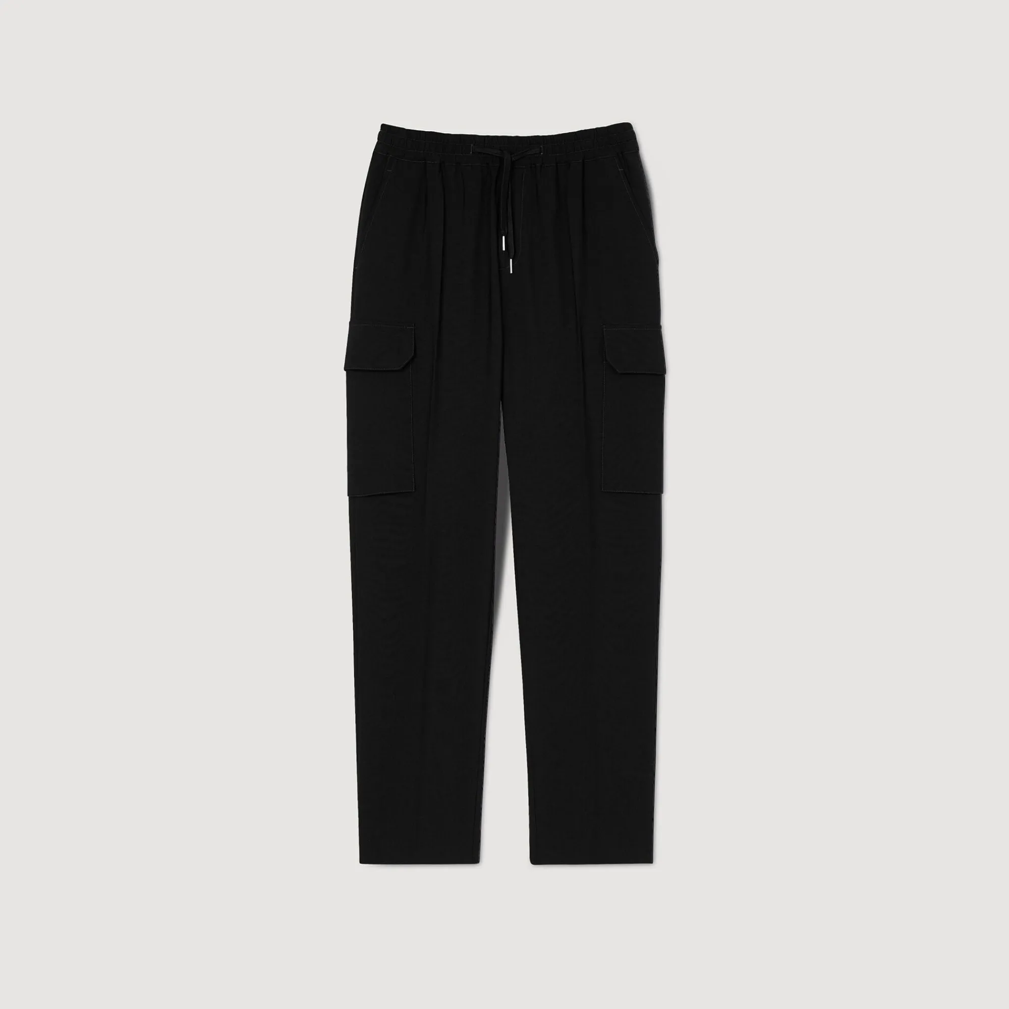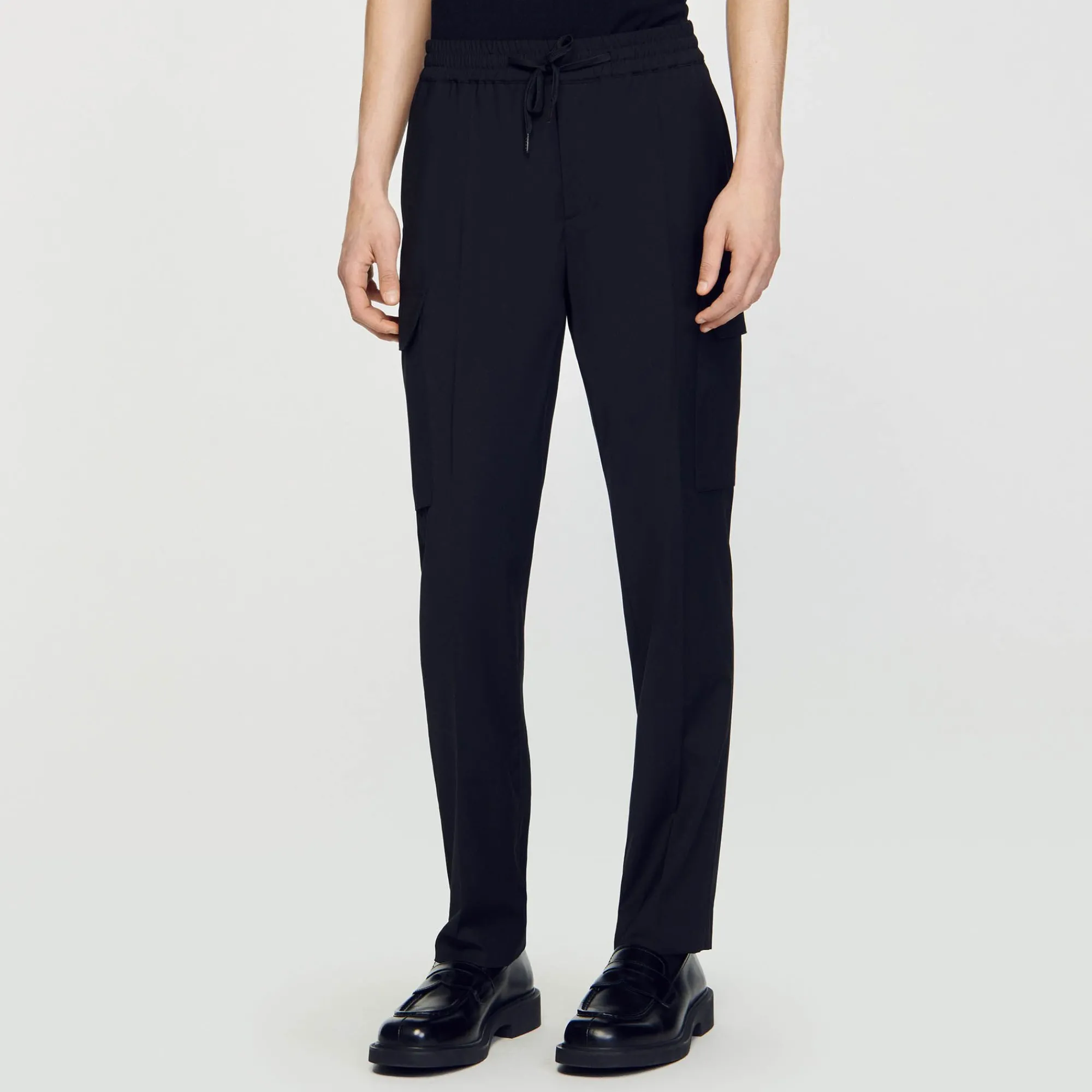 Calça Cargo Com Cintura Elástica Com Cordões E Bolsos Laterais E Traseiros. Calça Cargo Sandro Homme Cintura Elásti…