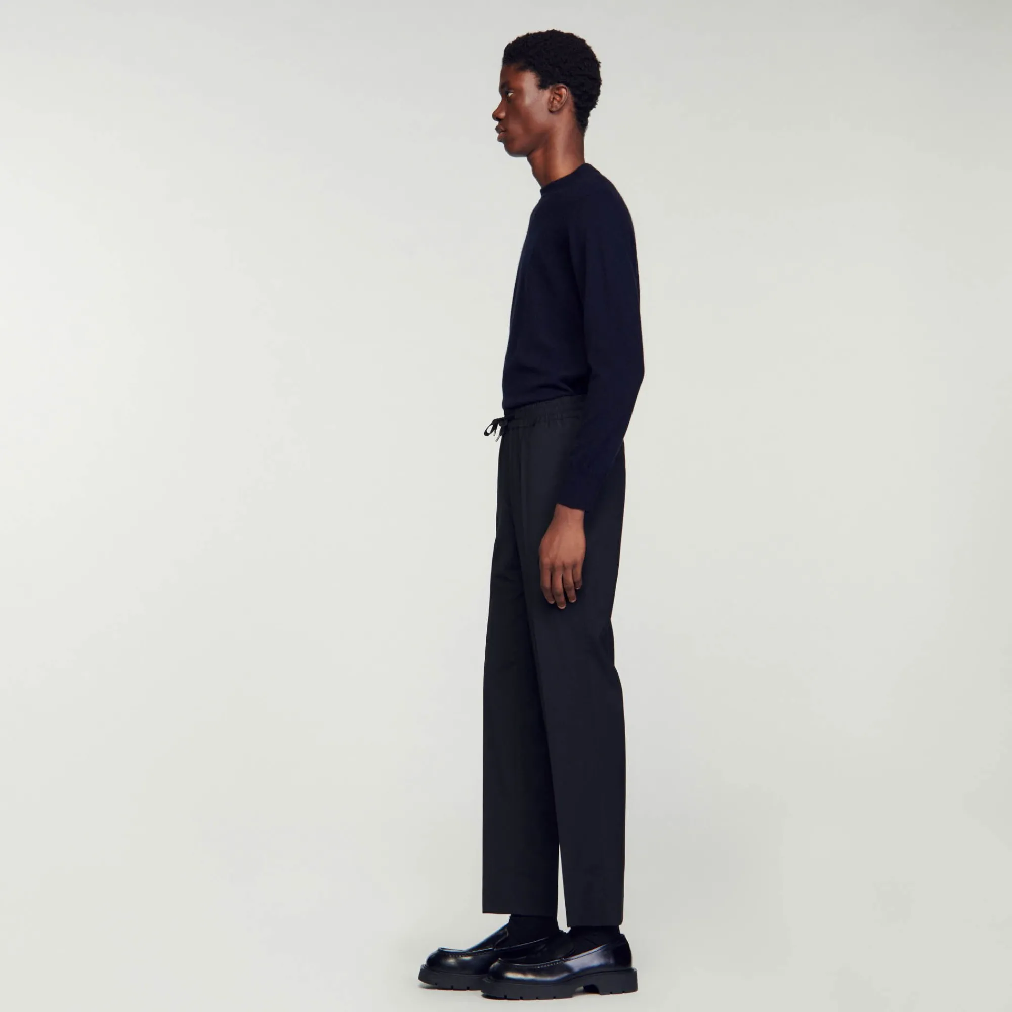 Calça Reta Com Cintura Elástica, Cordão E Bolsos. Calça Reta Masculina SandroCintura ElásticaCordão2 Bolsos Nas La…
