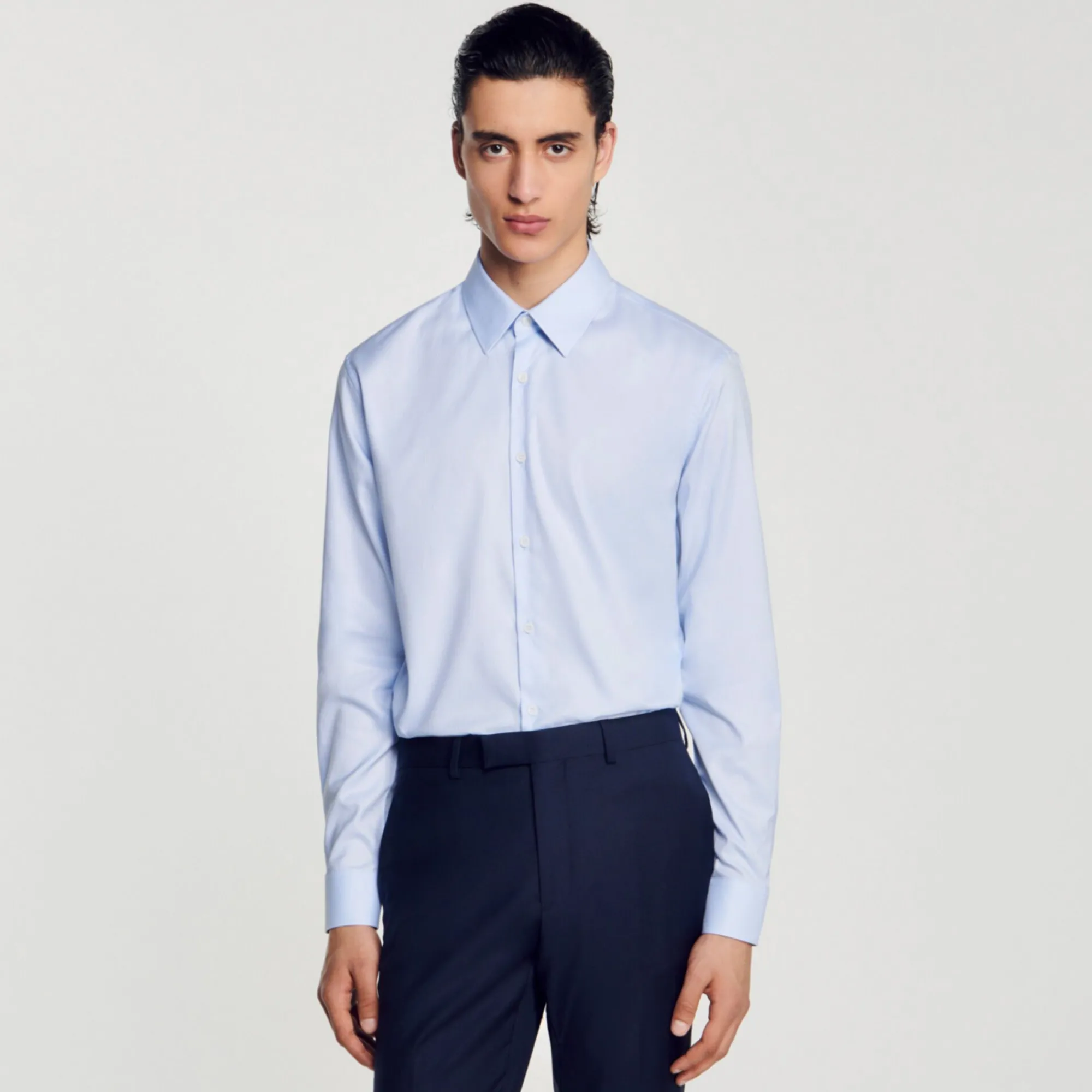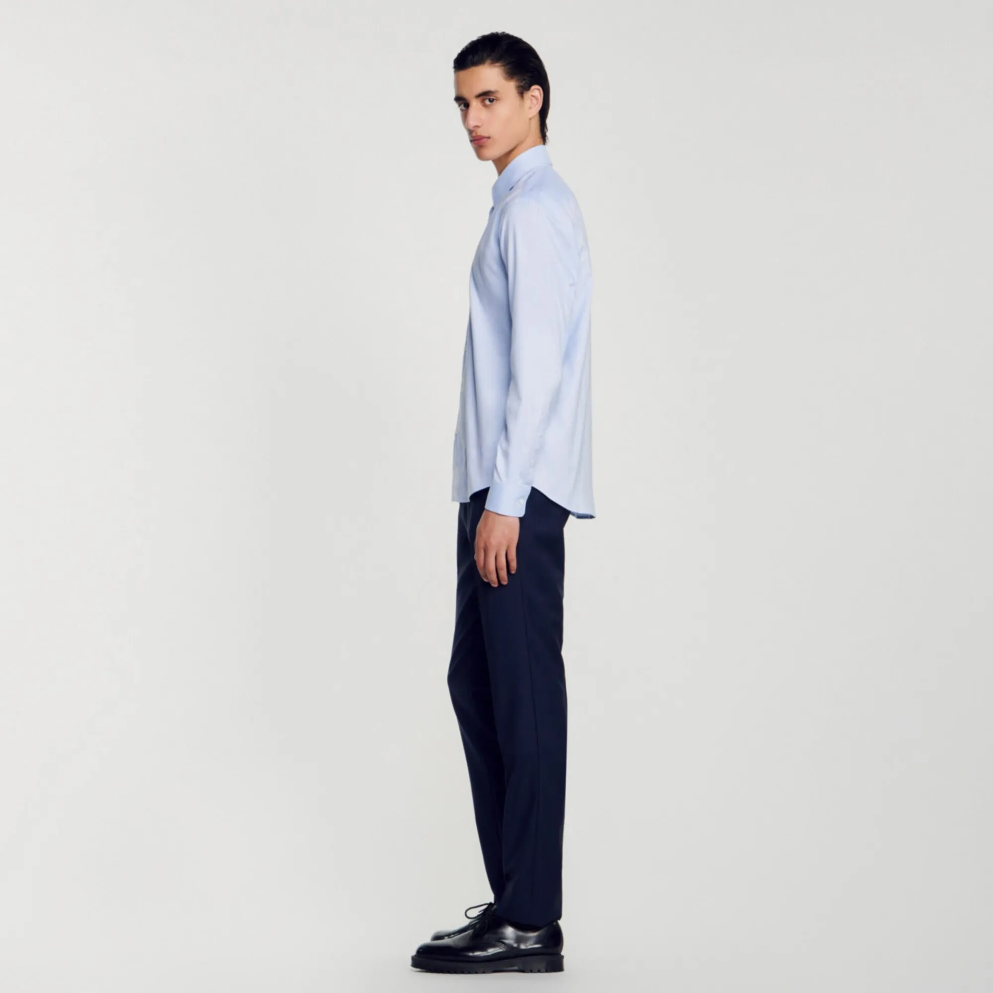Camisa De Algodão Com Mangas Compridas, Punhos Abotoados, Gola Clássica E Fecho De Botão.