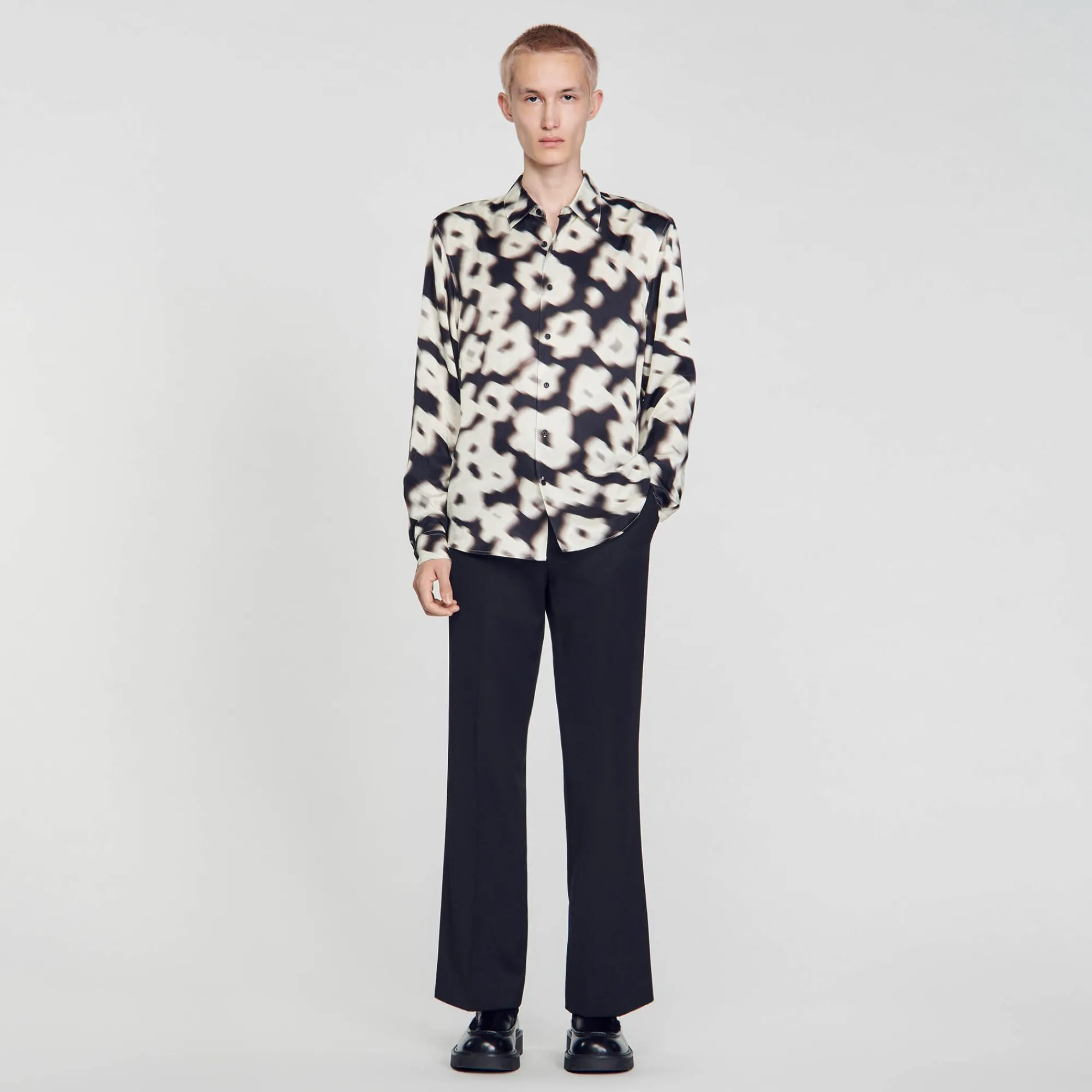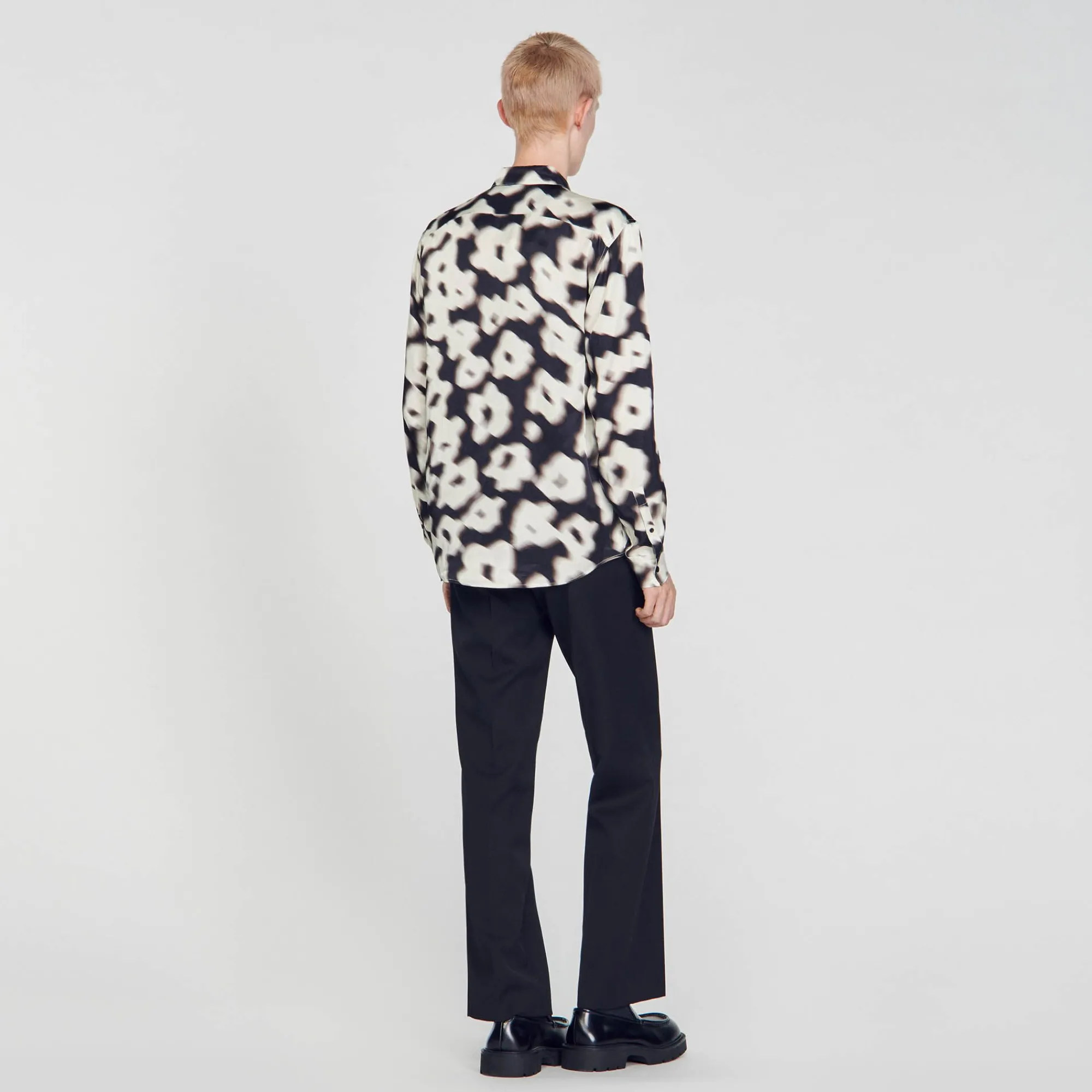 Camisa Fluida Com Gola, Manga Comprida E Fecho De Botão, Decorada Com Estampa De Flores Desbotadas. Camisa Fluida Mascu…