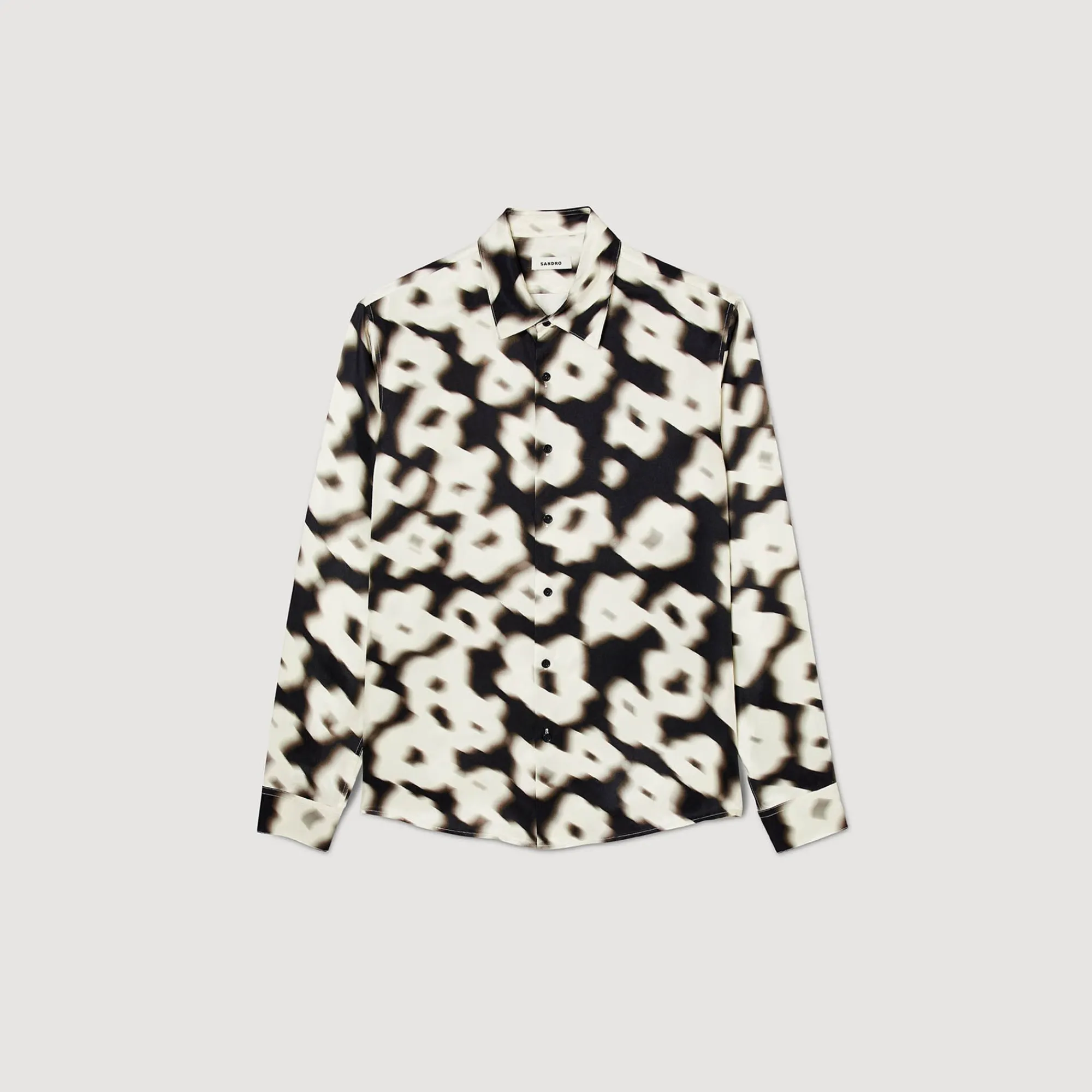 Camisa Fluida Com Gola, Manga Comprida E Fecho De Botão, Decorada Com Estampa De Flores Desbotadas.