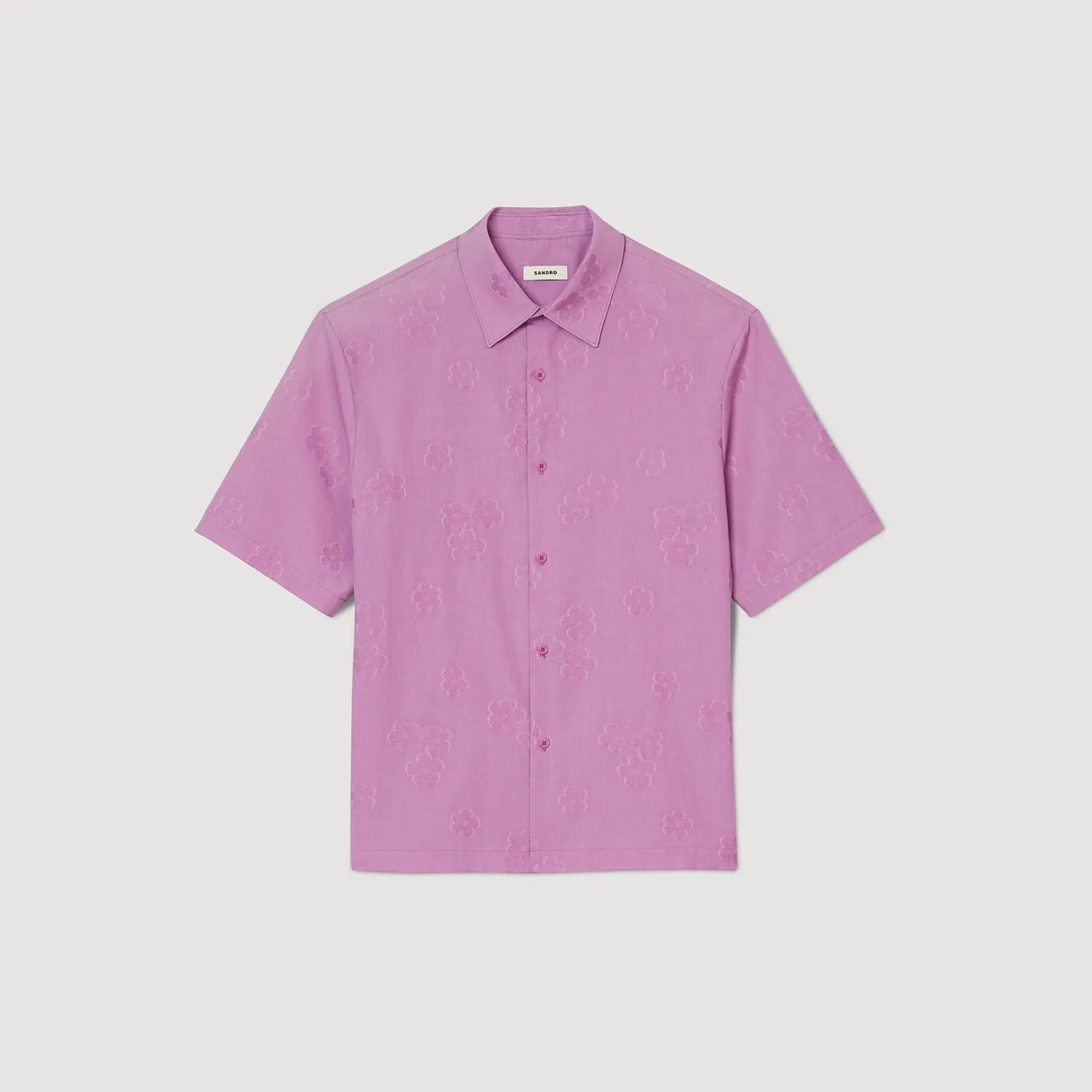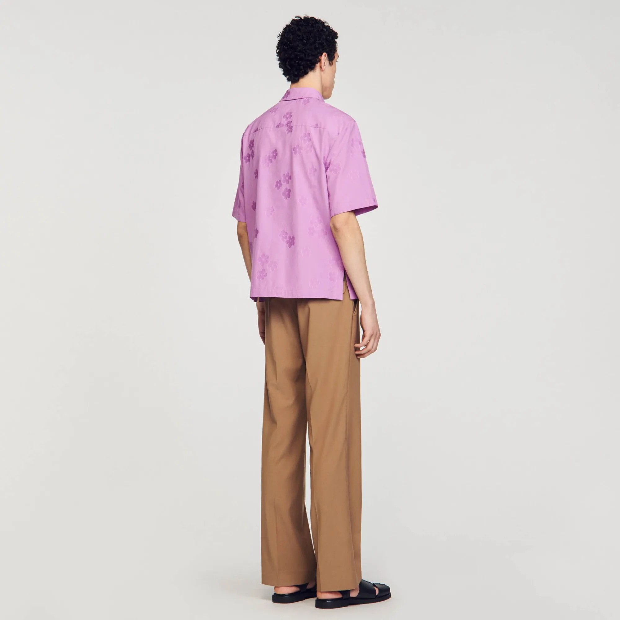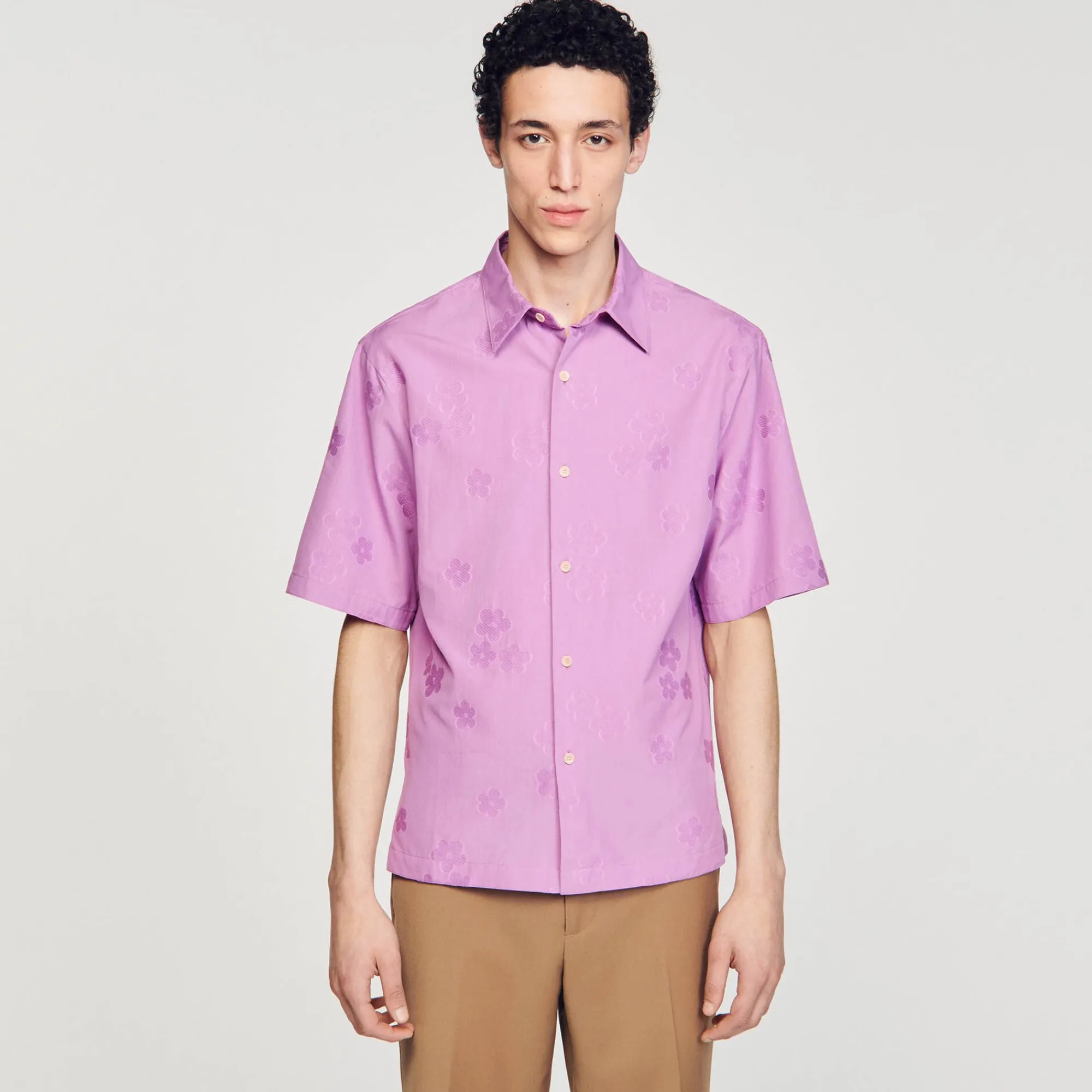 Camisa Oversized De Algodão Com Jacquard Floral, Gola, Manga Curta E Fecho De Botão. Camisa Oversized Sandro Homme Jac…