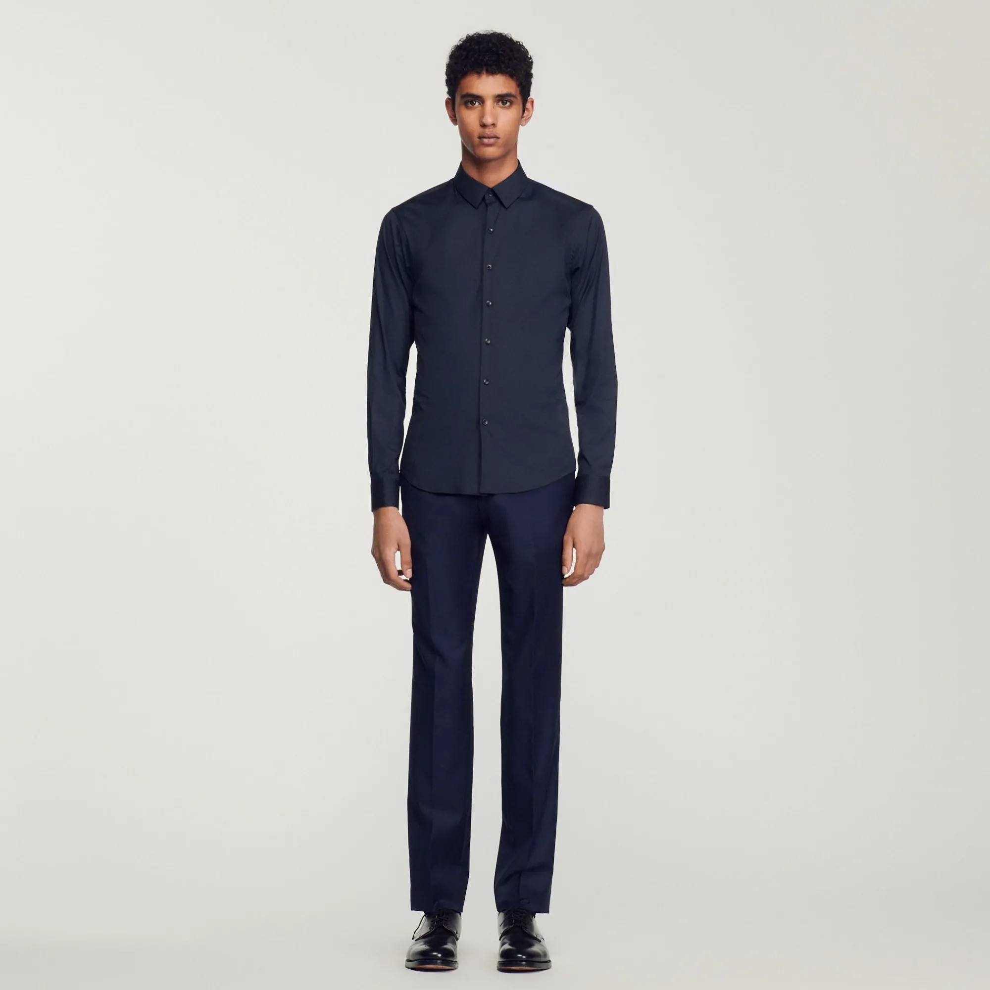 Camisa Justa De Algodão Stretch Com Mangas Compridas, Punhos Abotoados, Gola Clássica E Fecho De Botão.