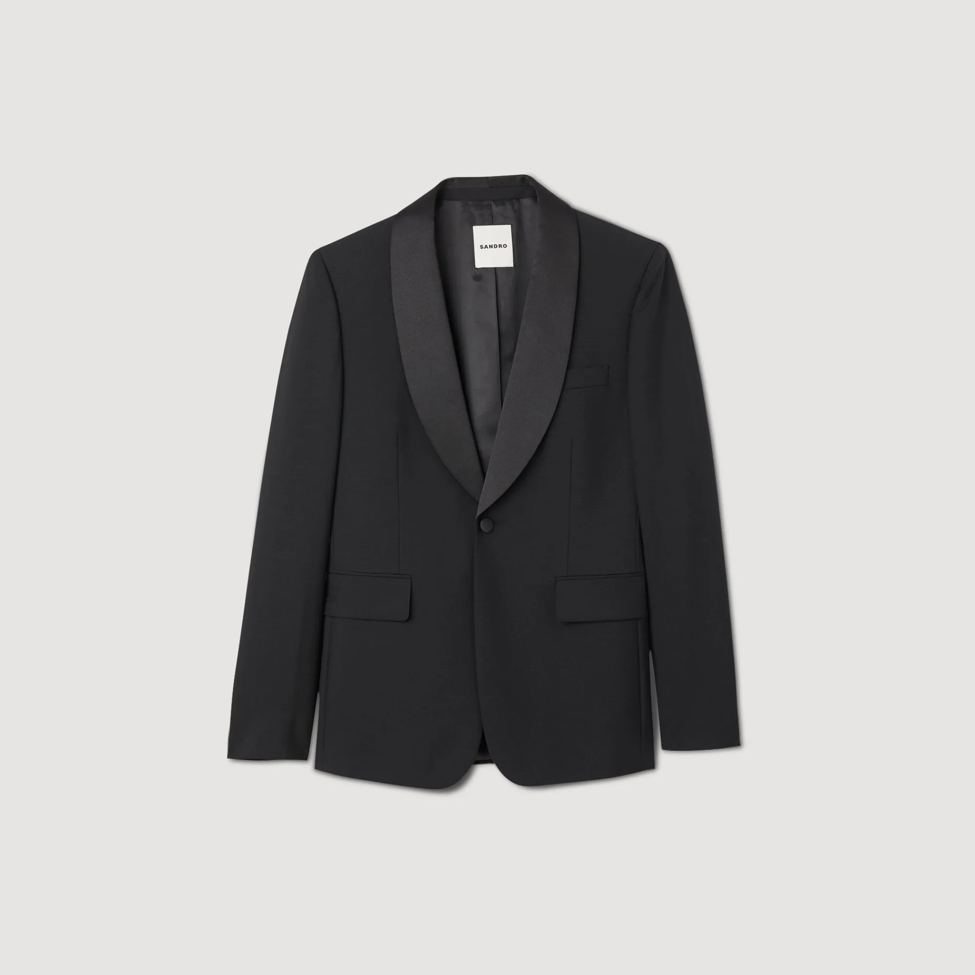 Jaqueta Smoking Com Gola Xale De Cetim, Mangas Compridas, Fecho De Botão E Bolsos Com Aba.Jaqueta De Smoking Sandro Hom…