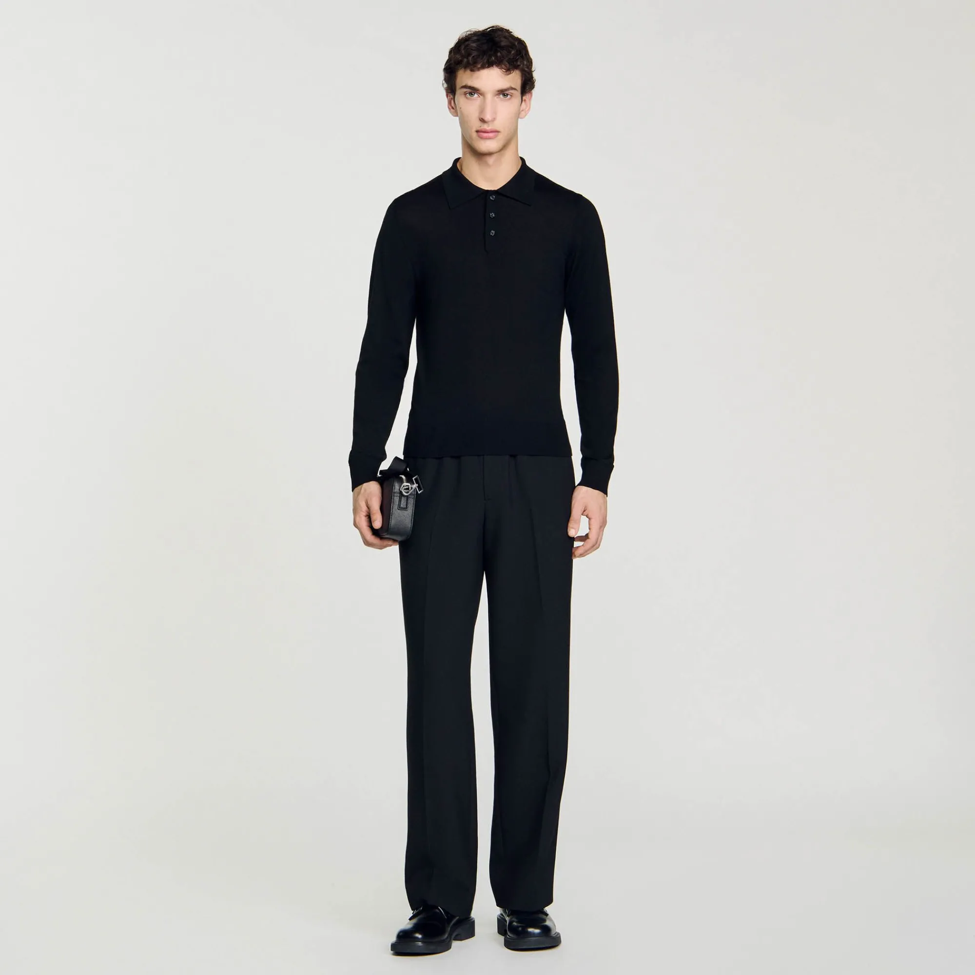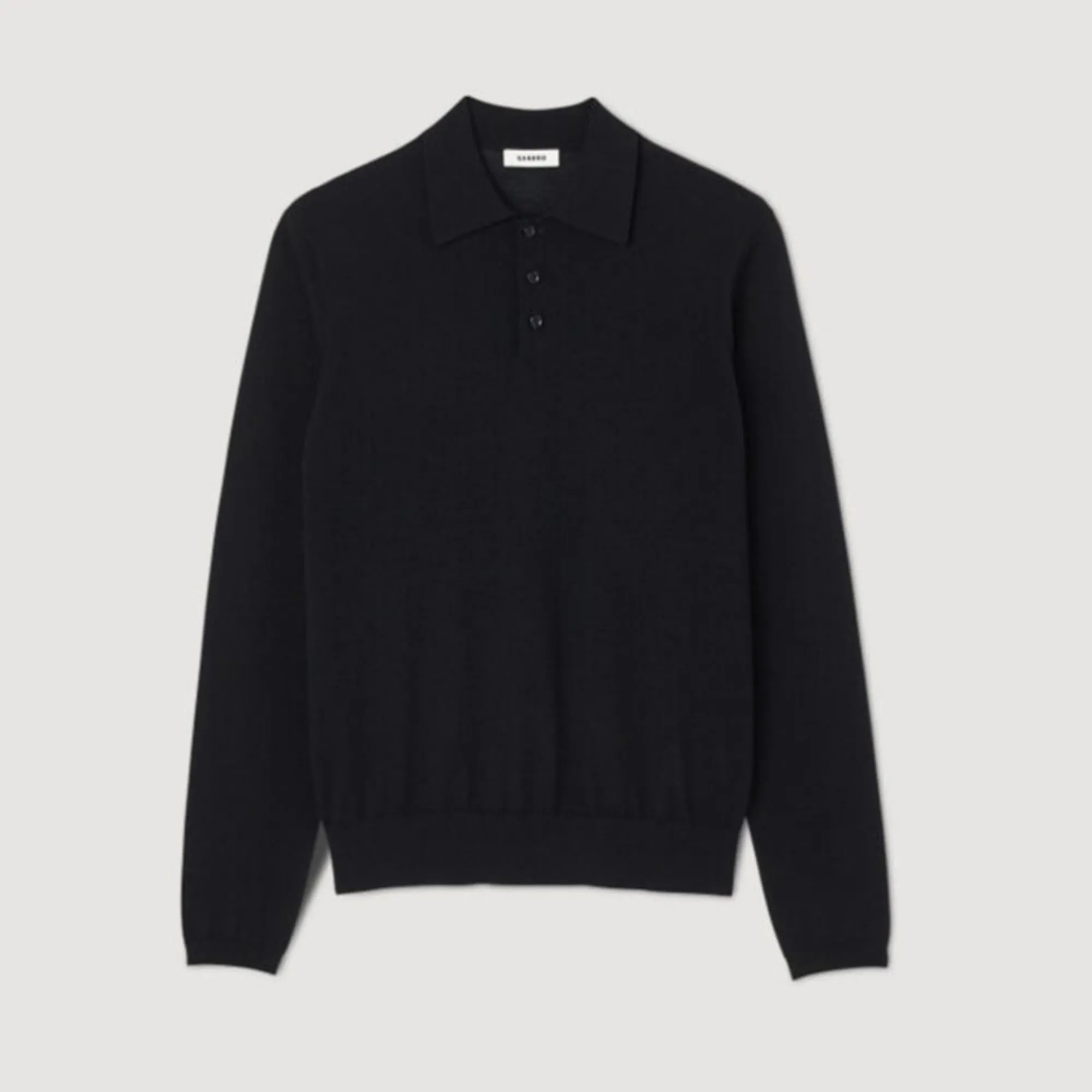 Camisa Pólo De Malha Fina, Com Gola Pólo Com Botões E Manga Comprida.
