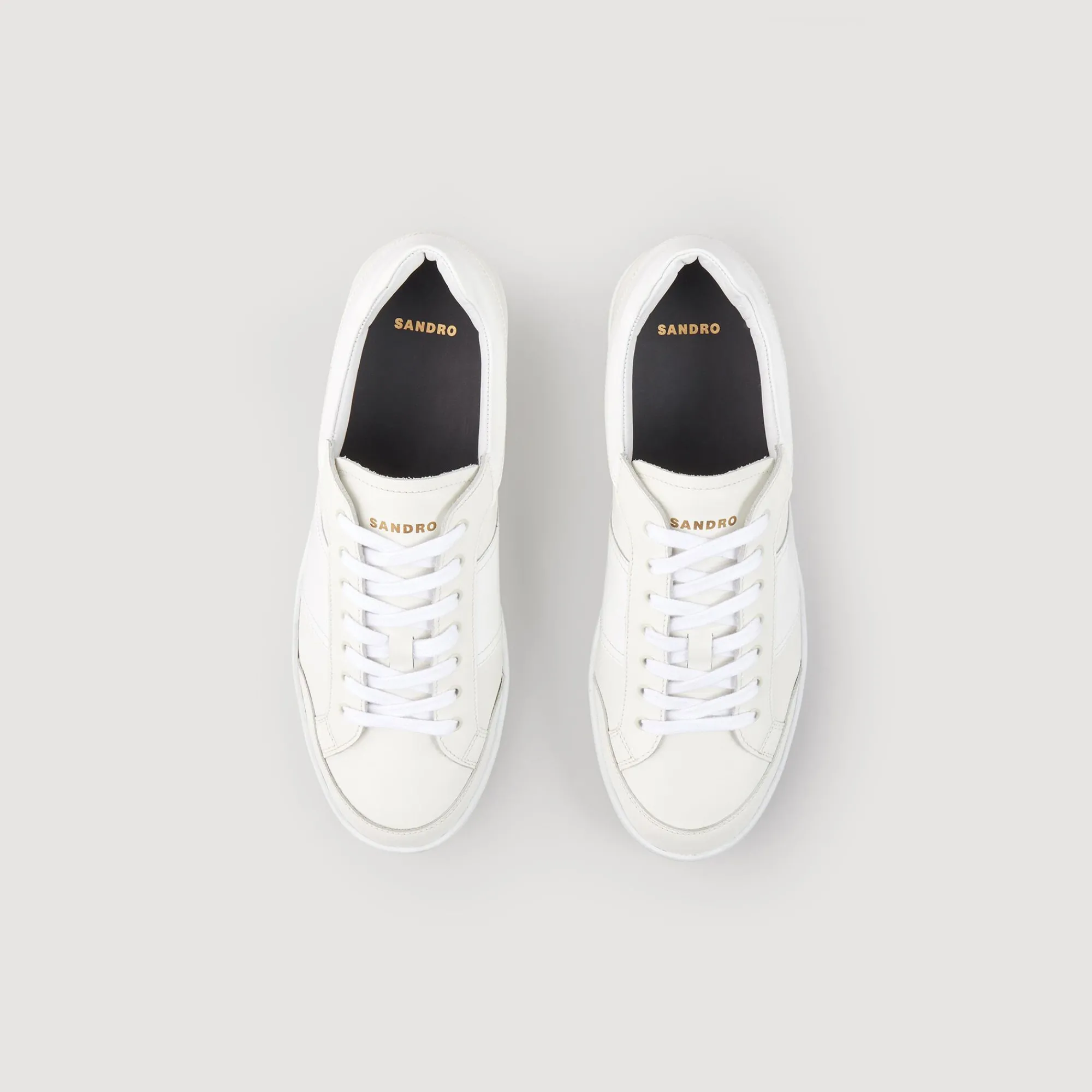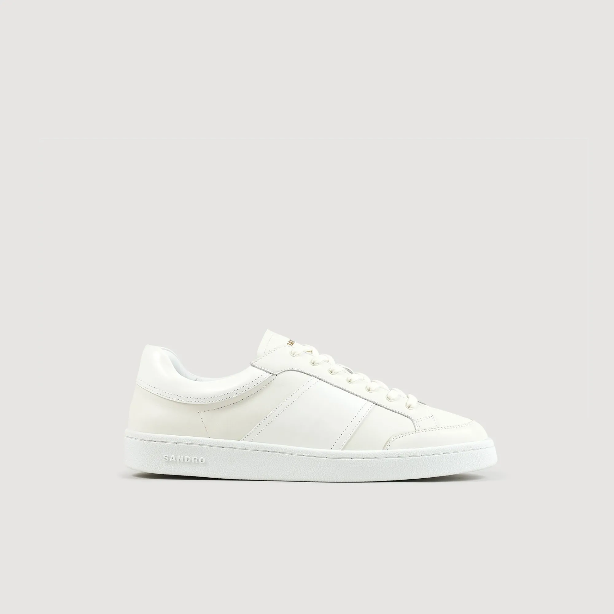 Tênis Cano Baixo De Couro Com Lingueta Gravada Com O Logotipo Sandro Dourado, Sola De Borracha, Atacadores E Inserções Infantis Nas Laterais.