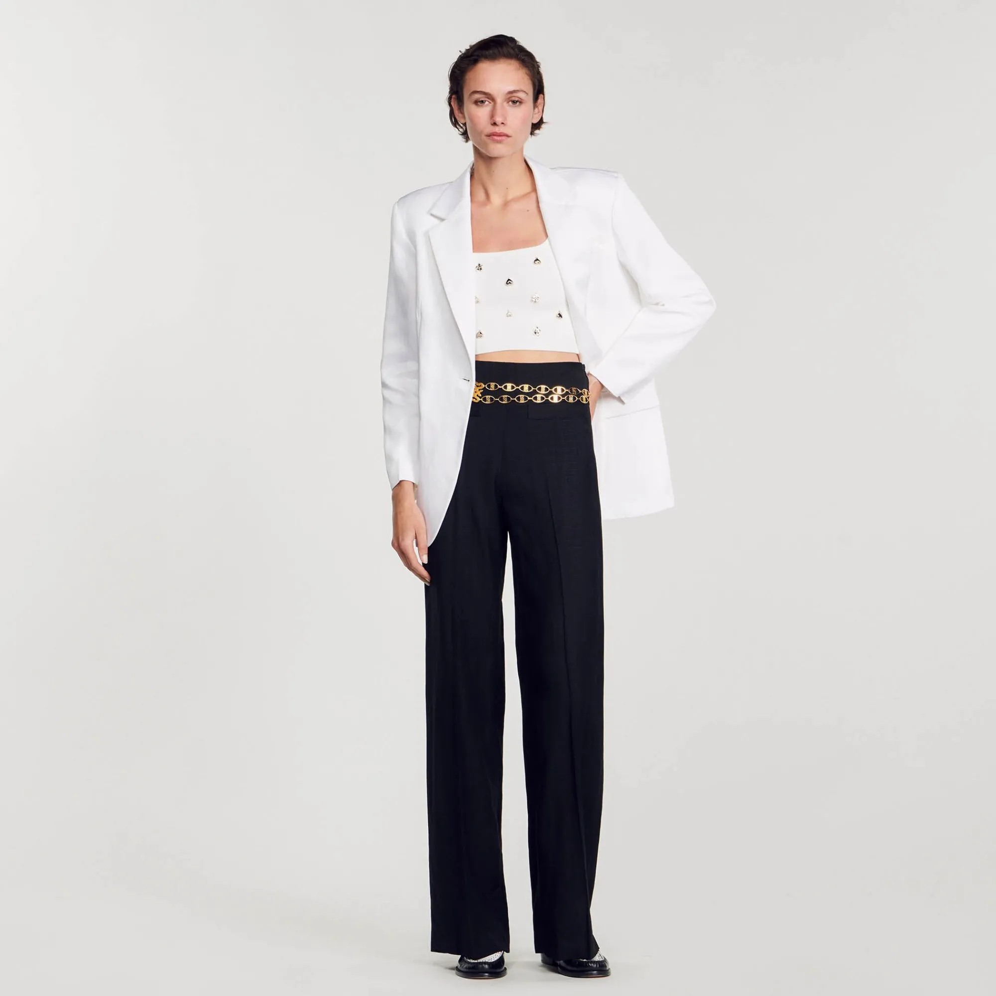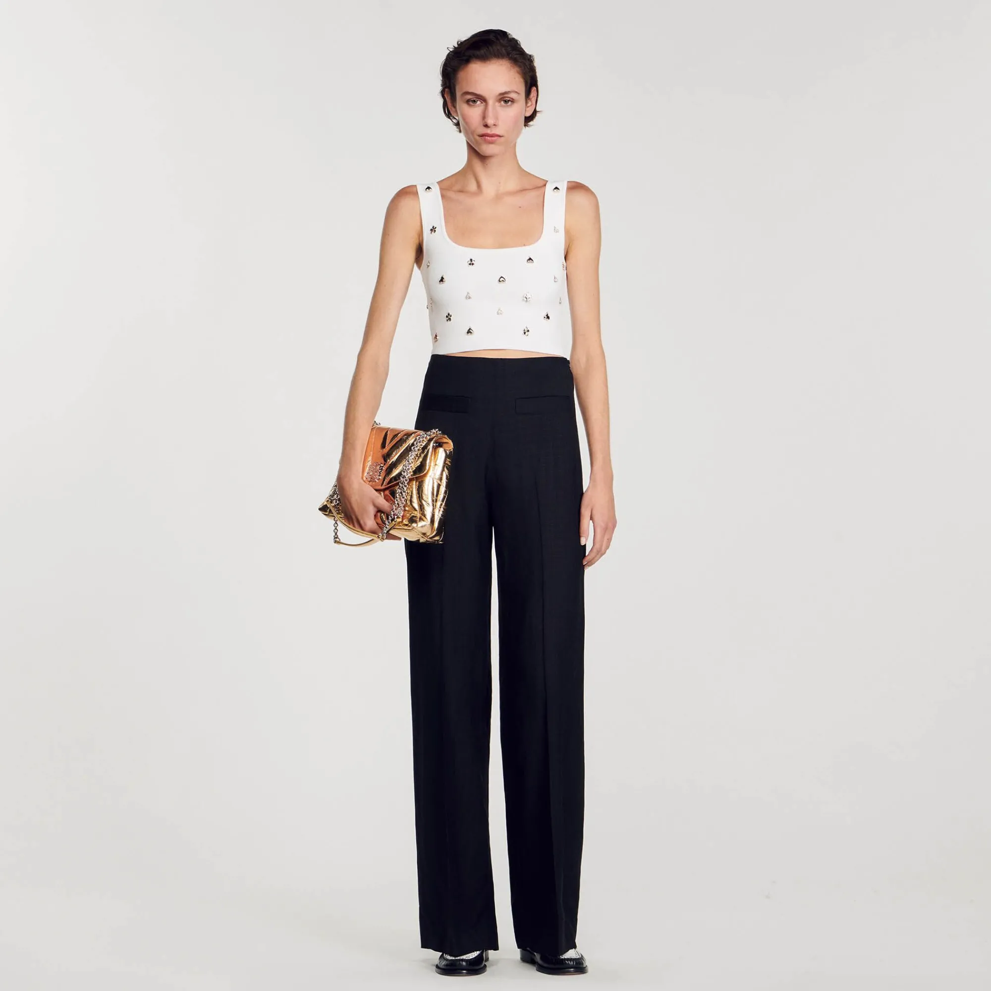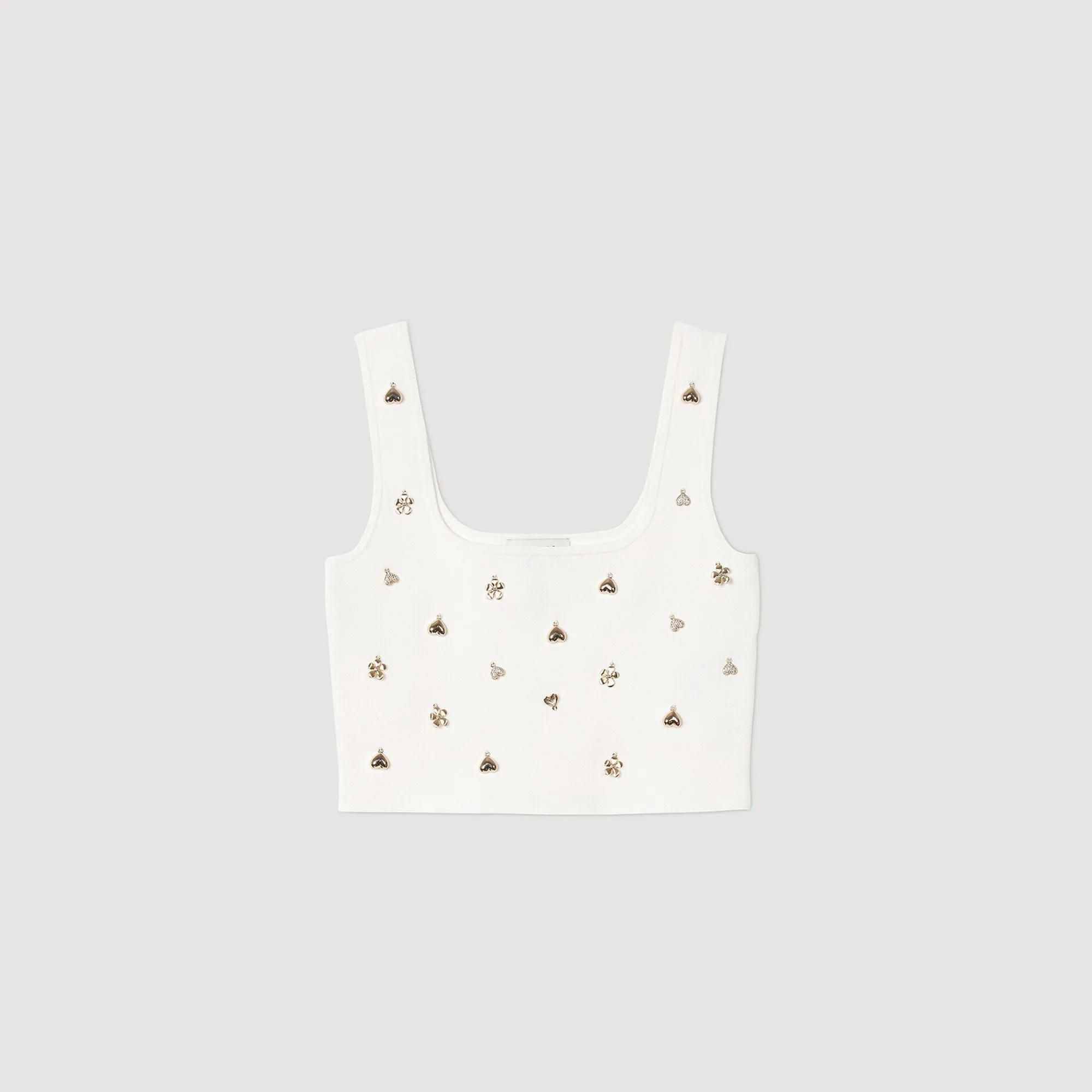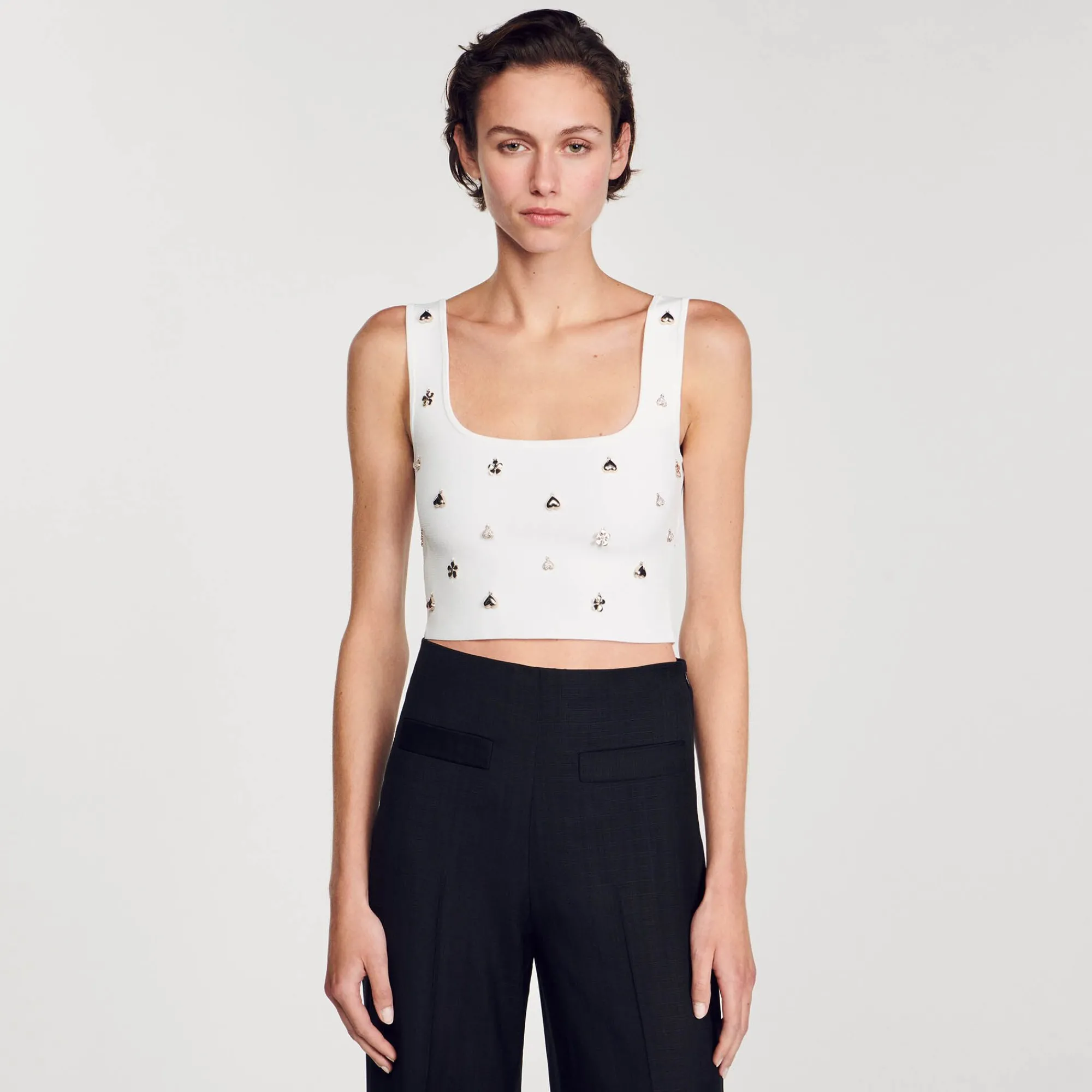 Curto “Bralette” De Malha Com Decote Quadrado Baixo E Alças, Decorado Com Pingentes De Fantasia.Sandro Femme Curto …
