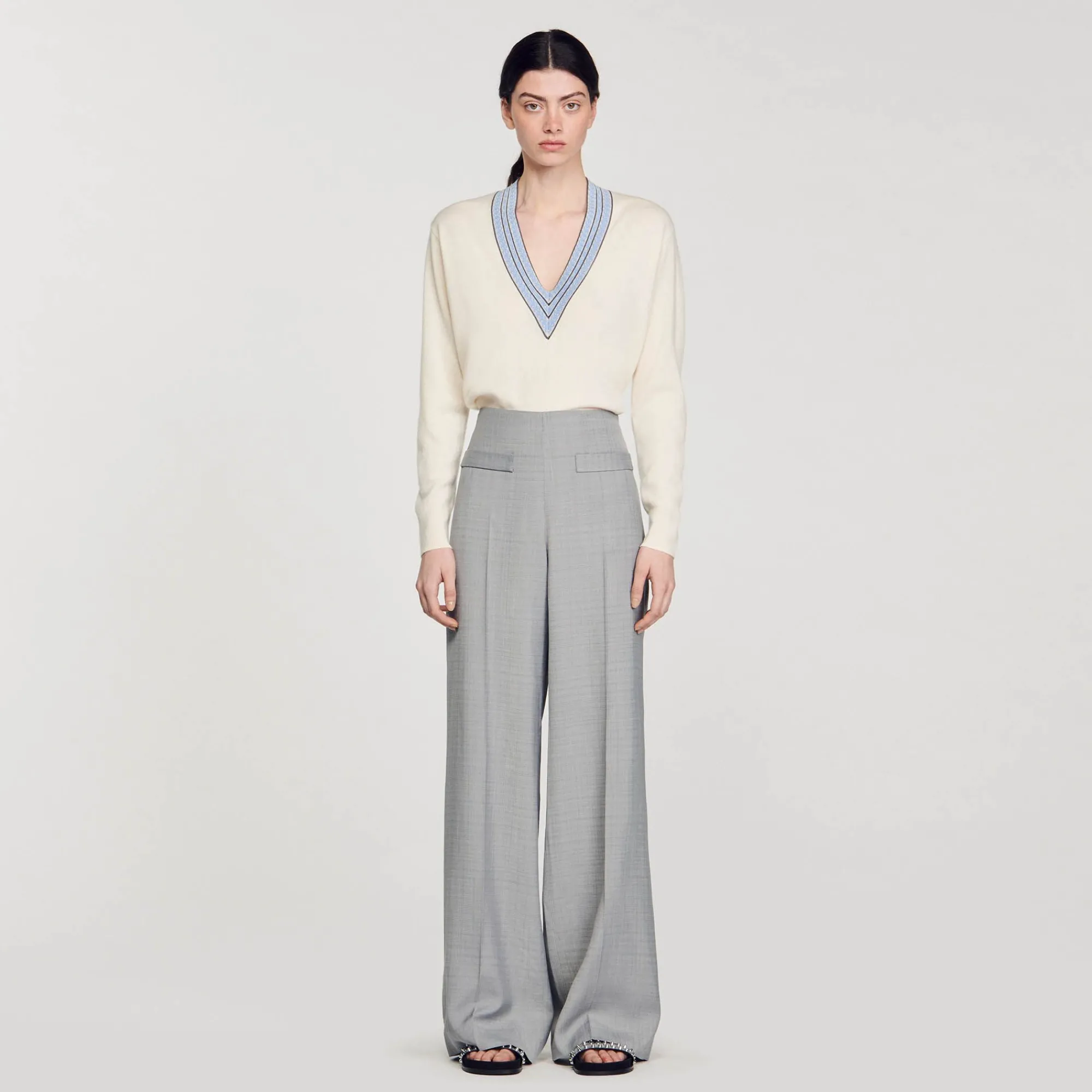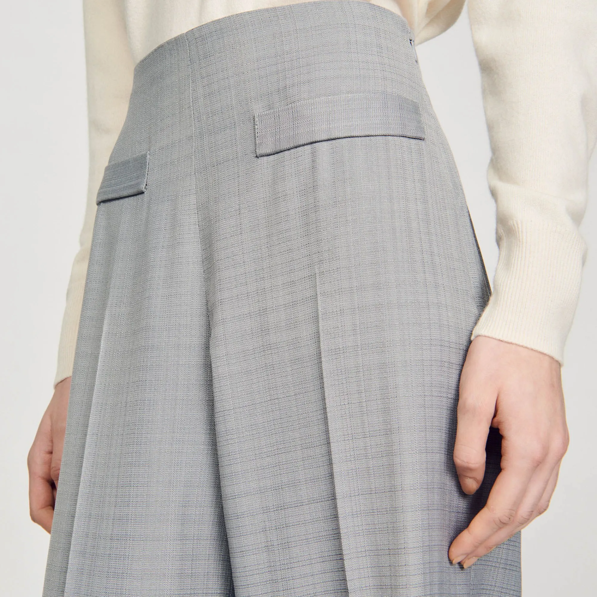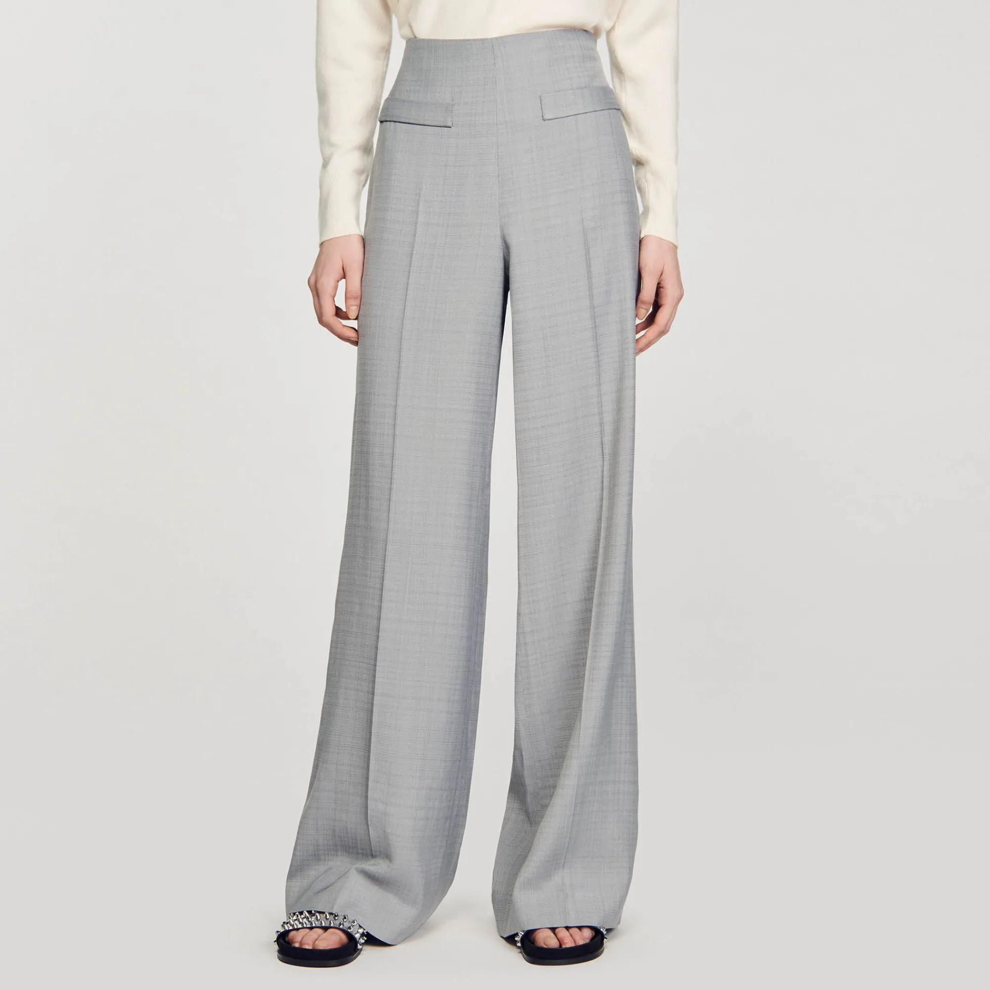 Calças De Cintura Alta Com Pernas Largas, Dardos Marcados E Grandes Bolsos De Debrum. Calças Largas Sandro Femme Perna…