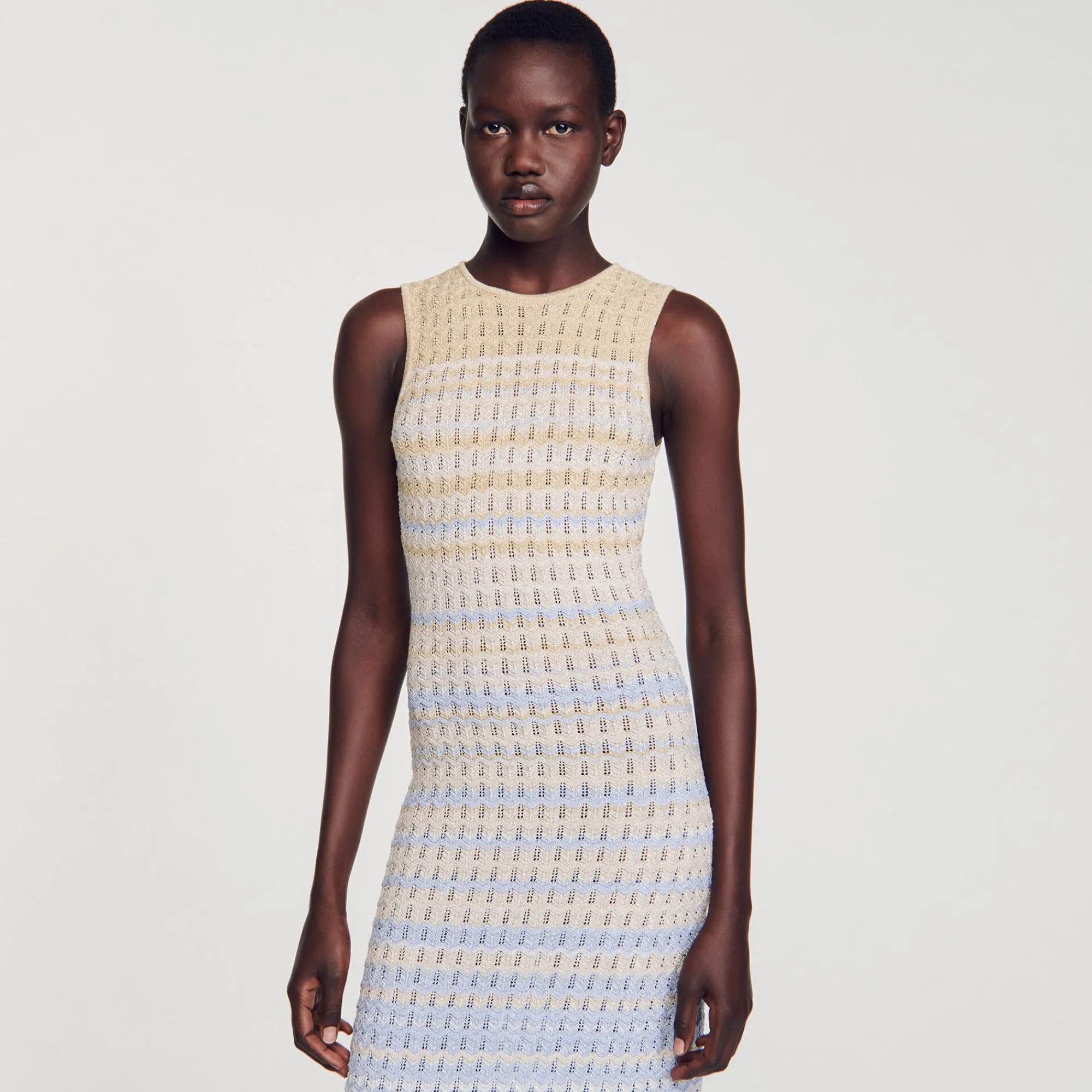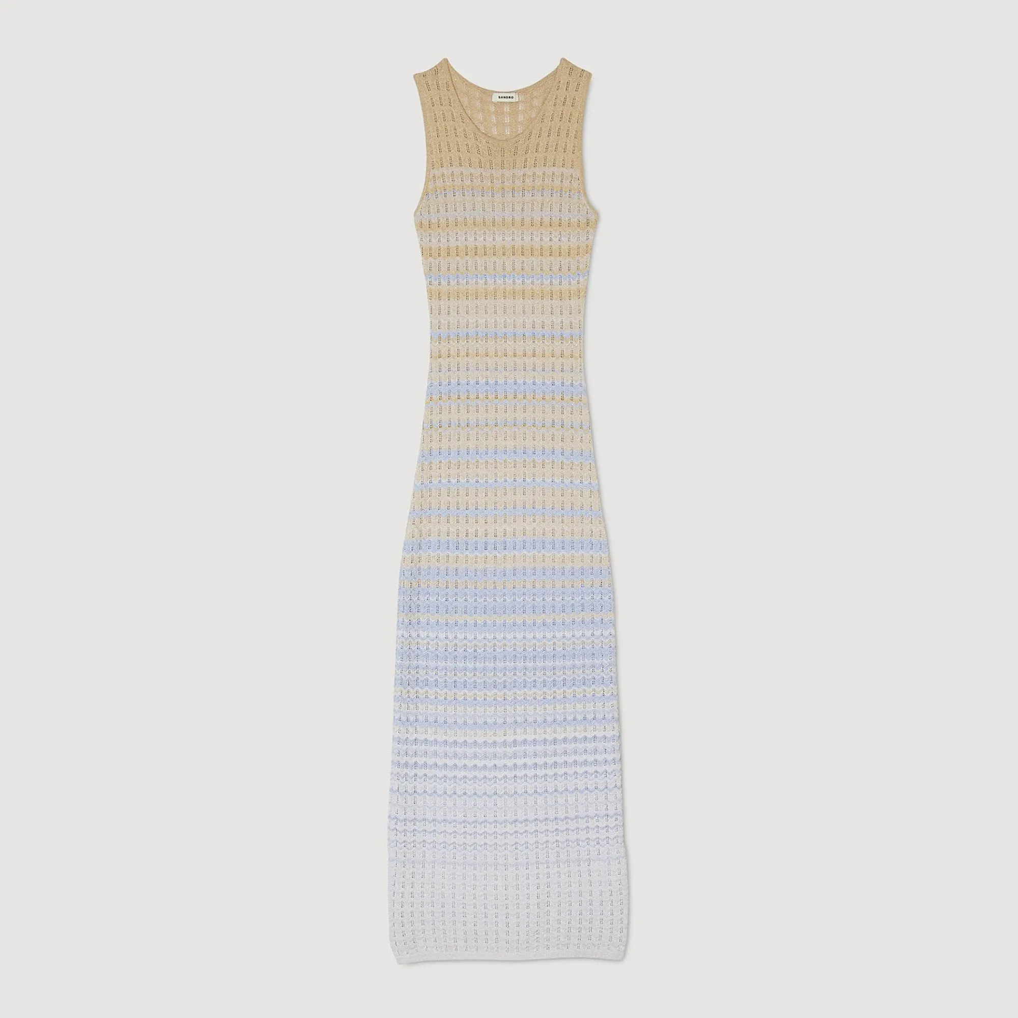 Vestido Longo Em Malha Pointelle Degradê, Sem Mangas, Com Decote Redondo. Vestido Longo Em Malha Pointelle Sandro Femme…