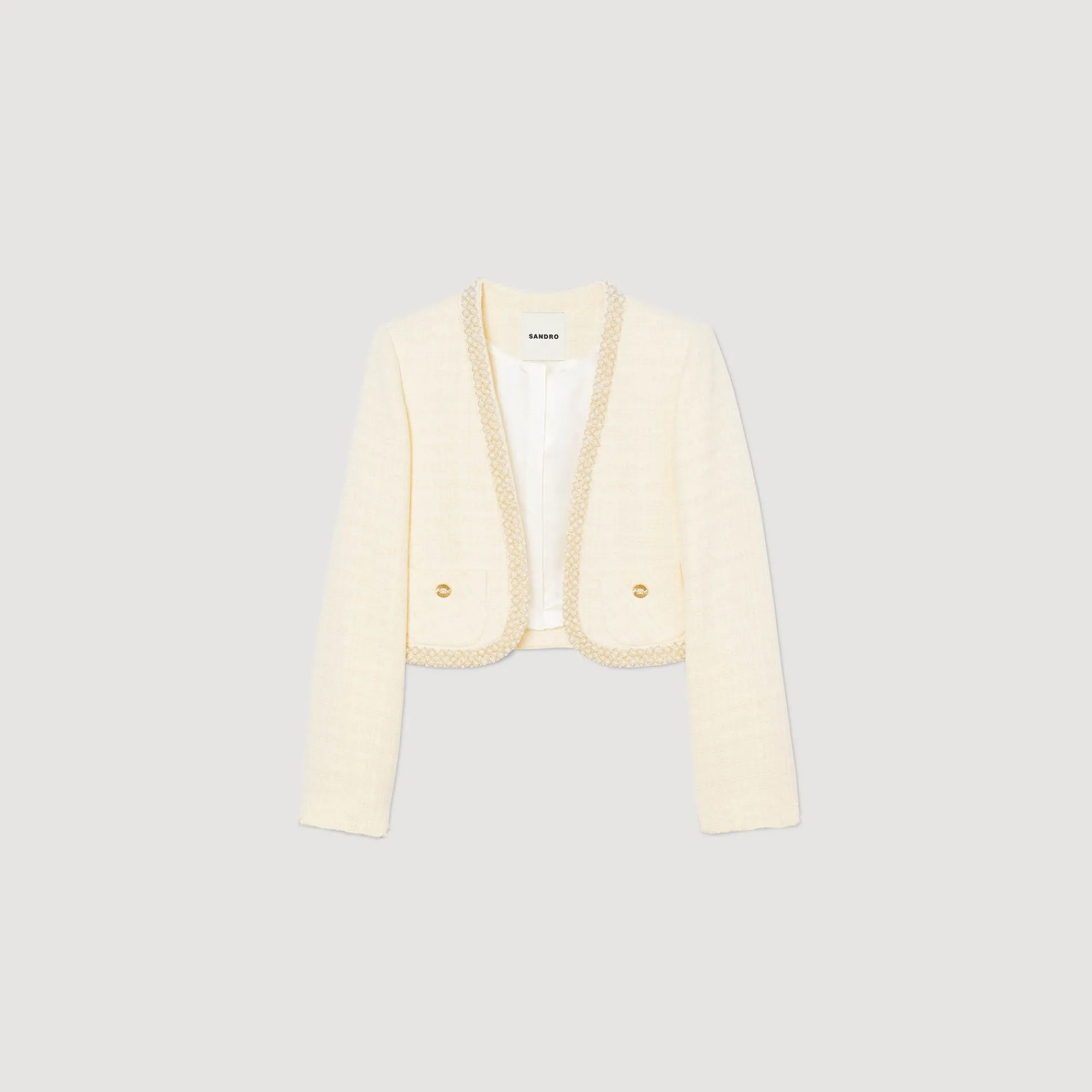Jaqueta Curta De Sarja Com Mangas Compridas, Bolsos De Aplicação E Divisas De Pedra.