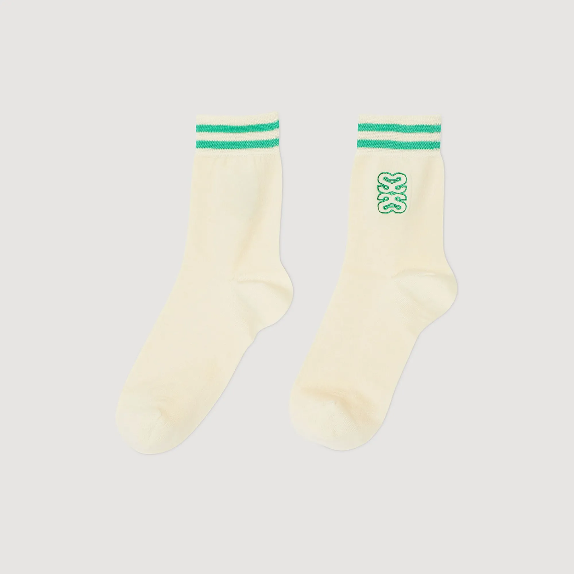Meias Caneladas Decoradas Com Logótipo Duplo S Bordado. Meias Caneladas Sandro Femme Logotipos Bordados