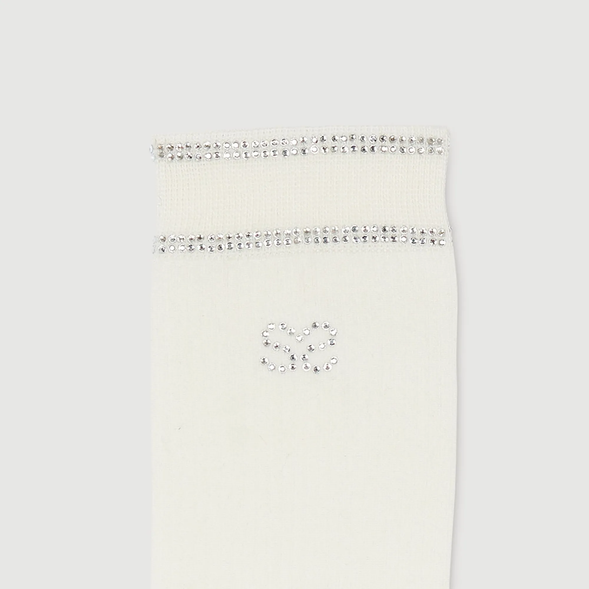 Meias Caneladas Decoradas Com Logotipo S Duplo E Linhas De Strass. Meias Caneladas Sandro Femme Imitação De Linhas E L…
