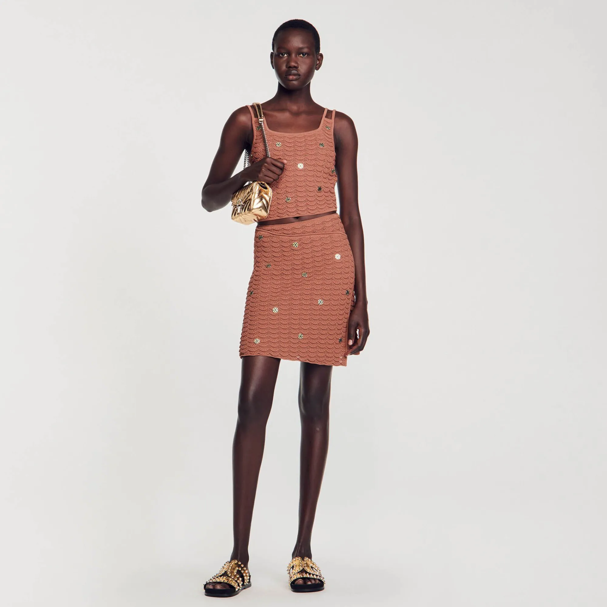 - Saia Curta Em Malha Texturizada Sandro Femme