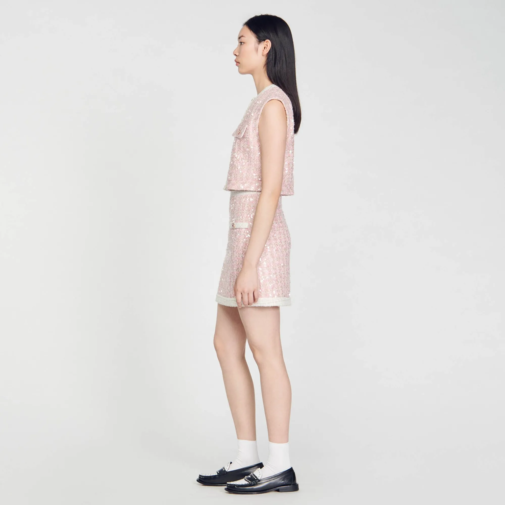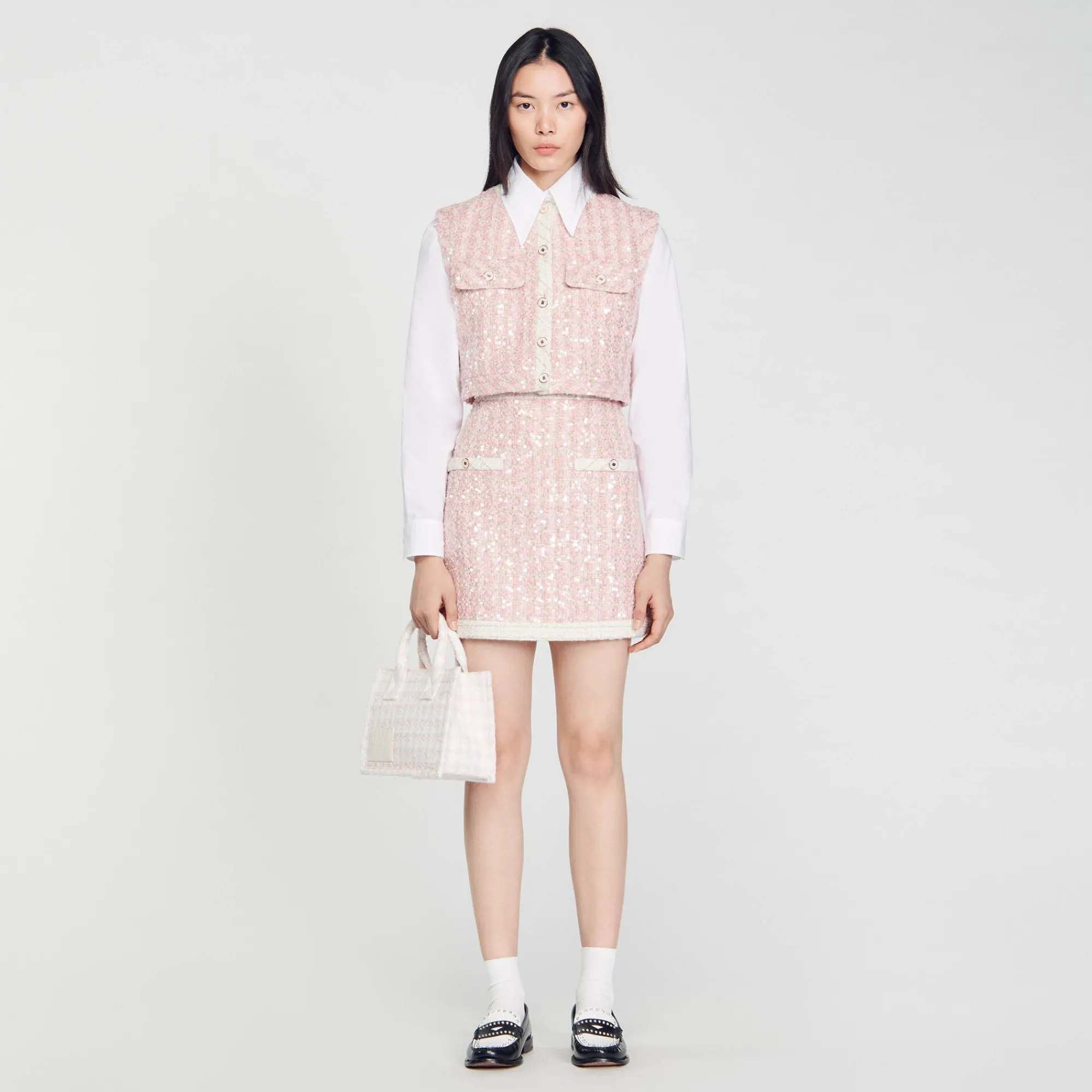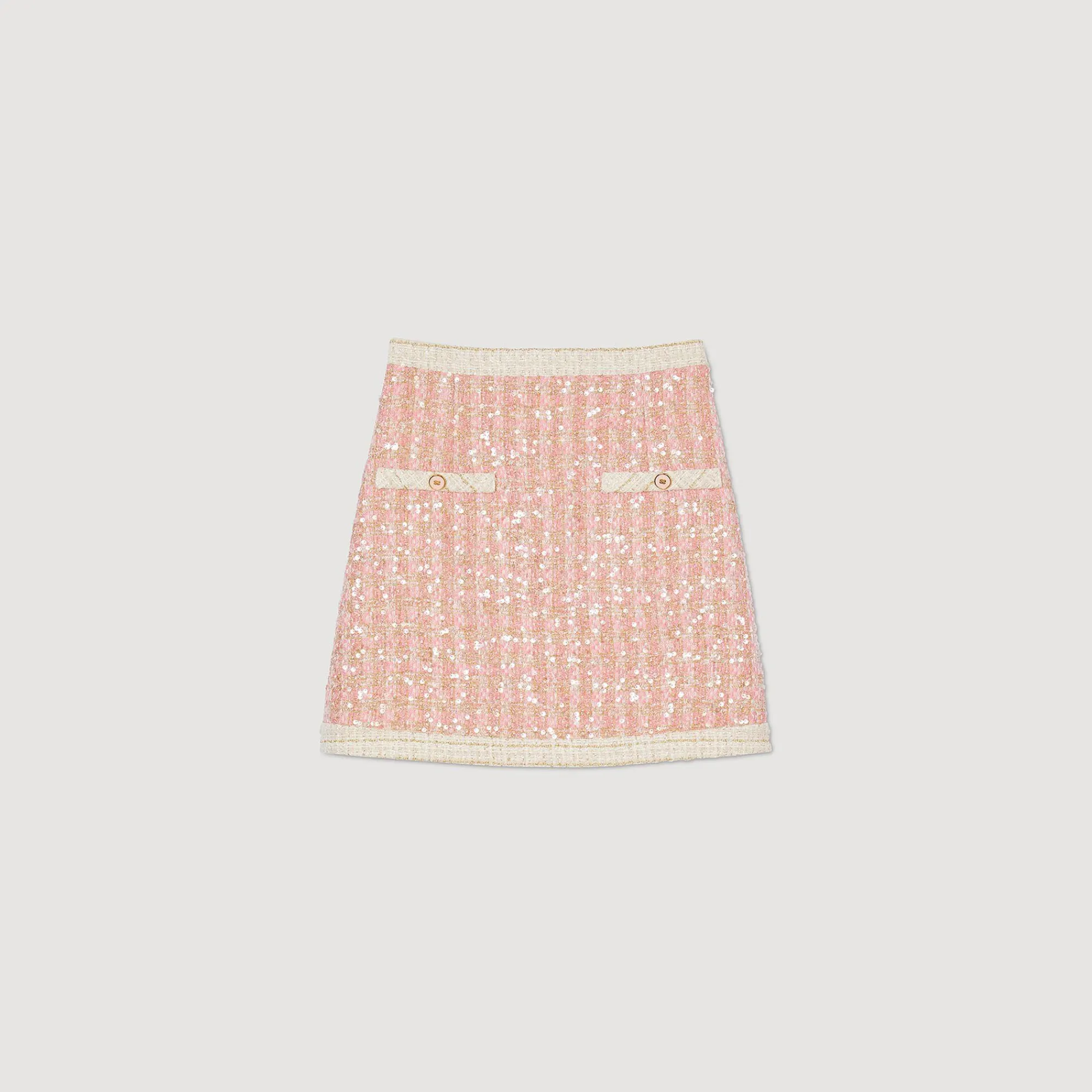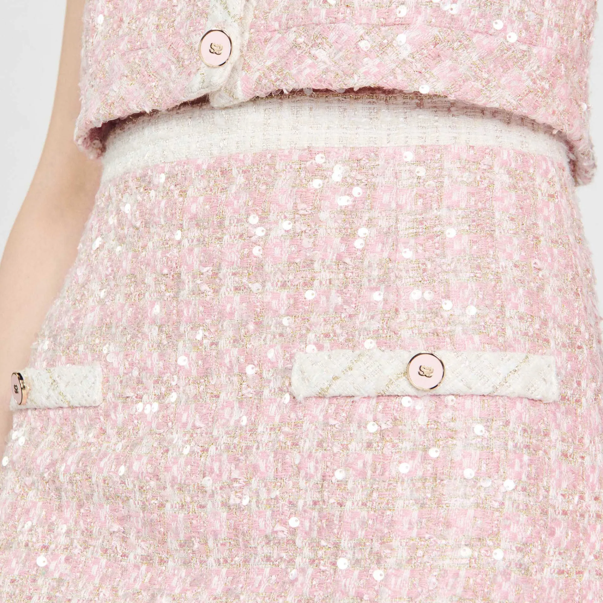 Saia Curta Em Sarja Misturada Com Fios Metálicos, Cós E Parte Inferior Com Bolsos Contrastantes.