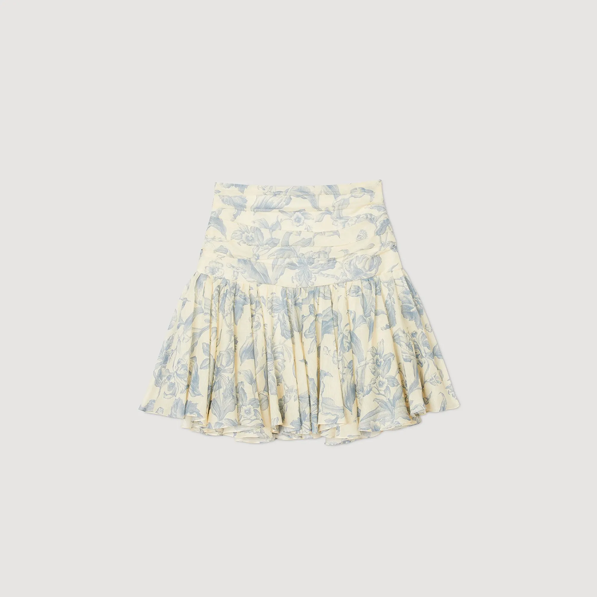Saia Curta Drapeada E Plissada, Decorada Com Estampa Floral Em Toda A Peça. Saia Curta Sandro Femme Top Franzido Base P…