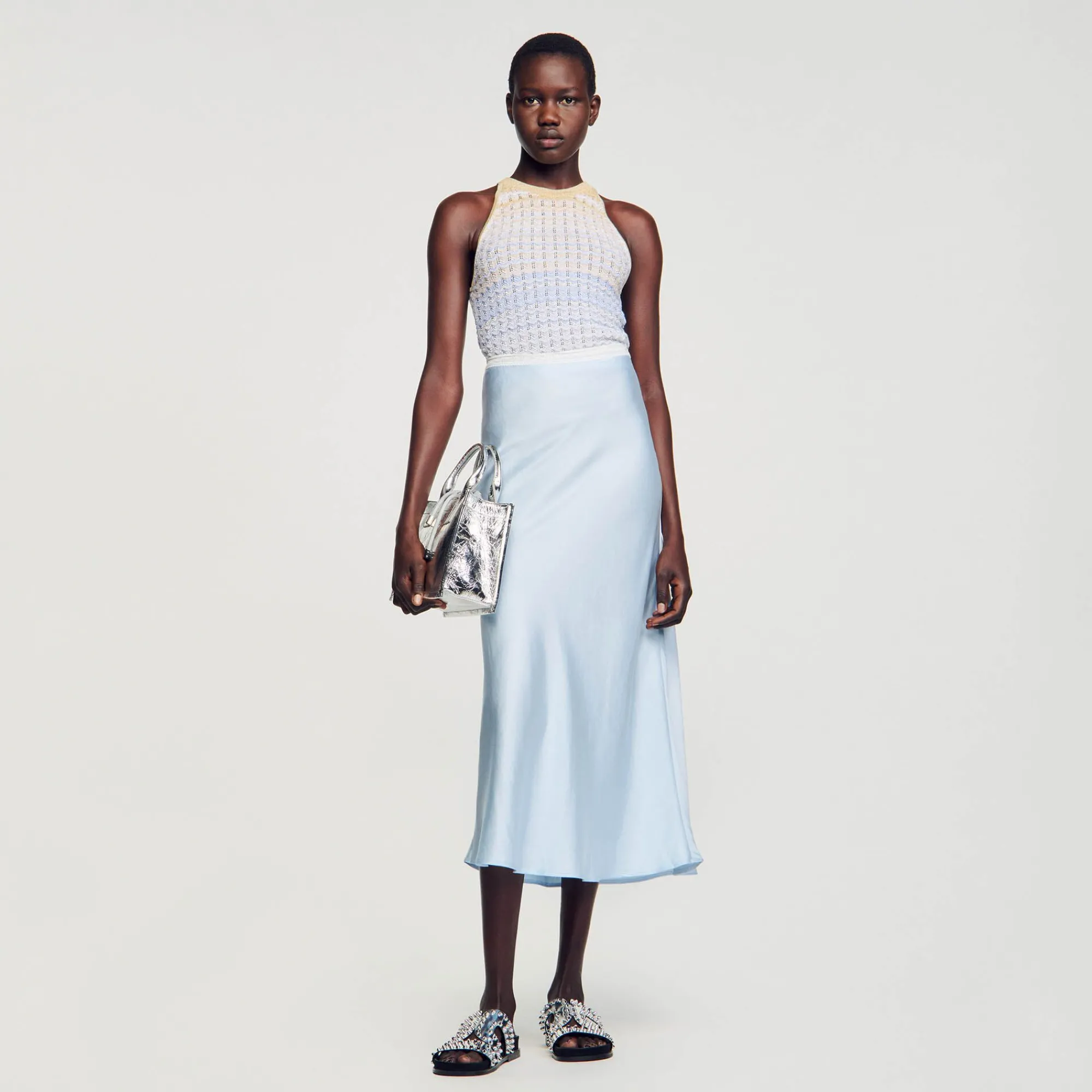 Saia Longa Reta E Fluida Em Mescla De Linho Acetinado, Com Cinto De Renda Na Cintura Com Iniciais Sandro. Saia Longa San…
