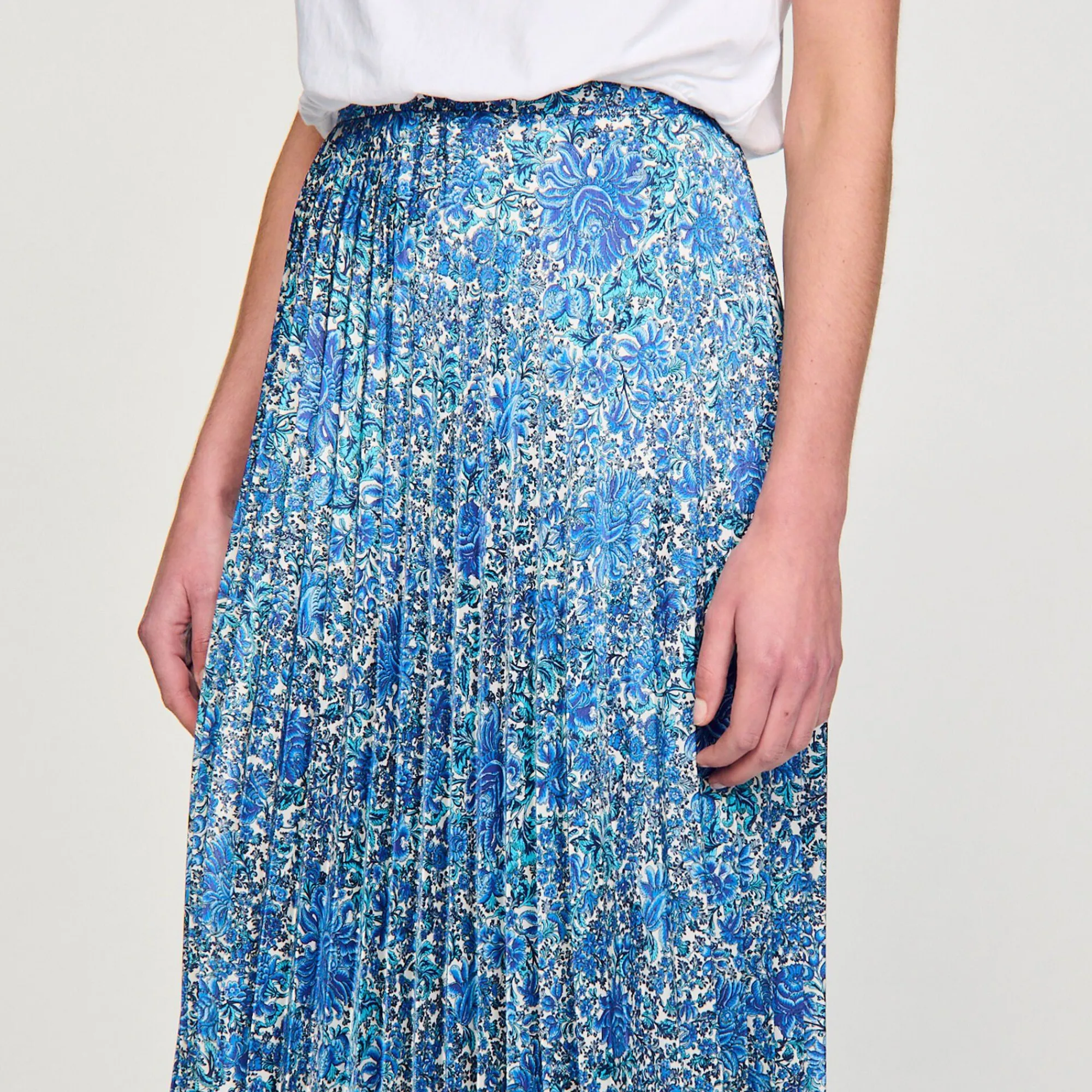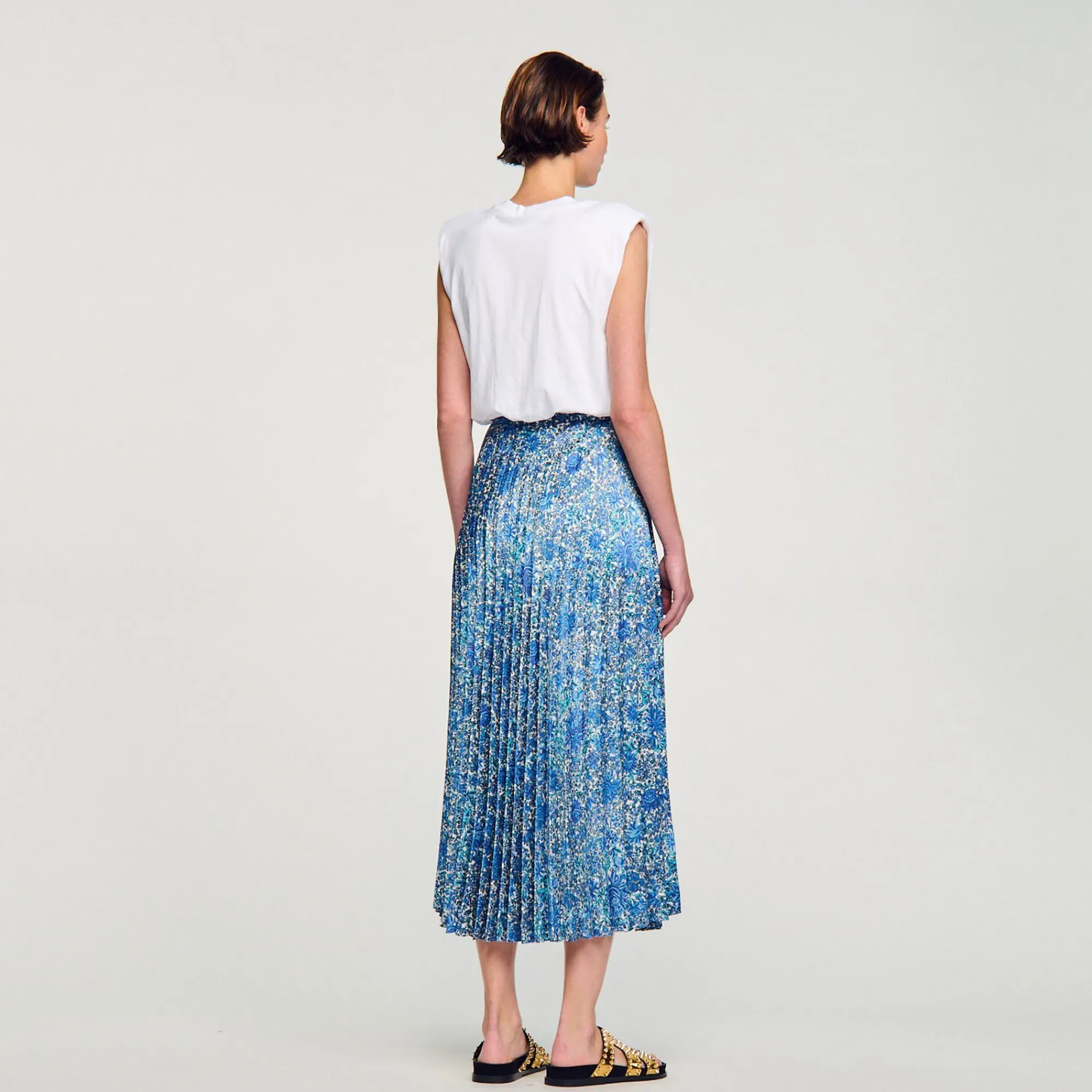 Saia Longa, Fluida E Plissada Com Detalhe De Estampa “Indie Liberty” E Fechamento Em Zíper. Sandro Saia Feminina Lo…