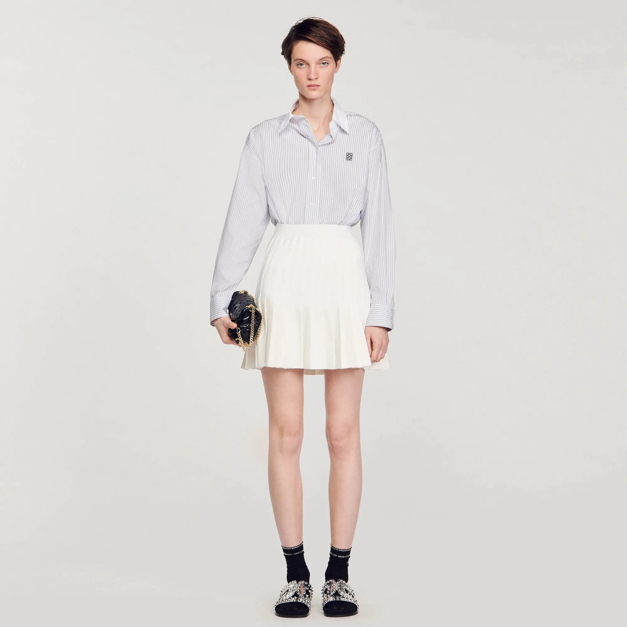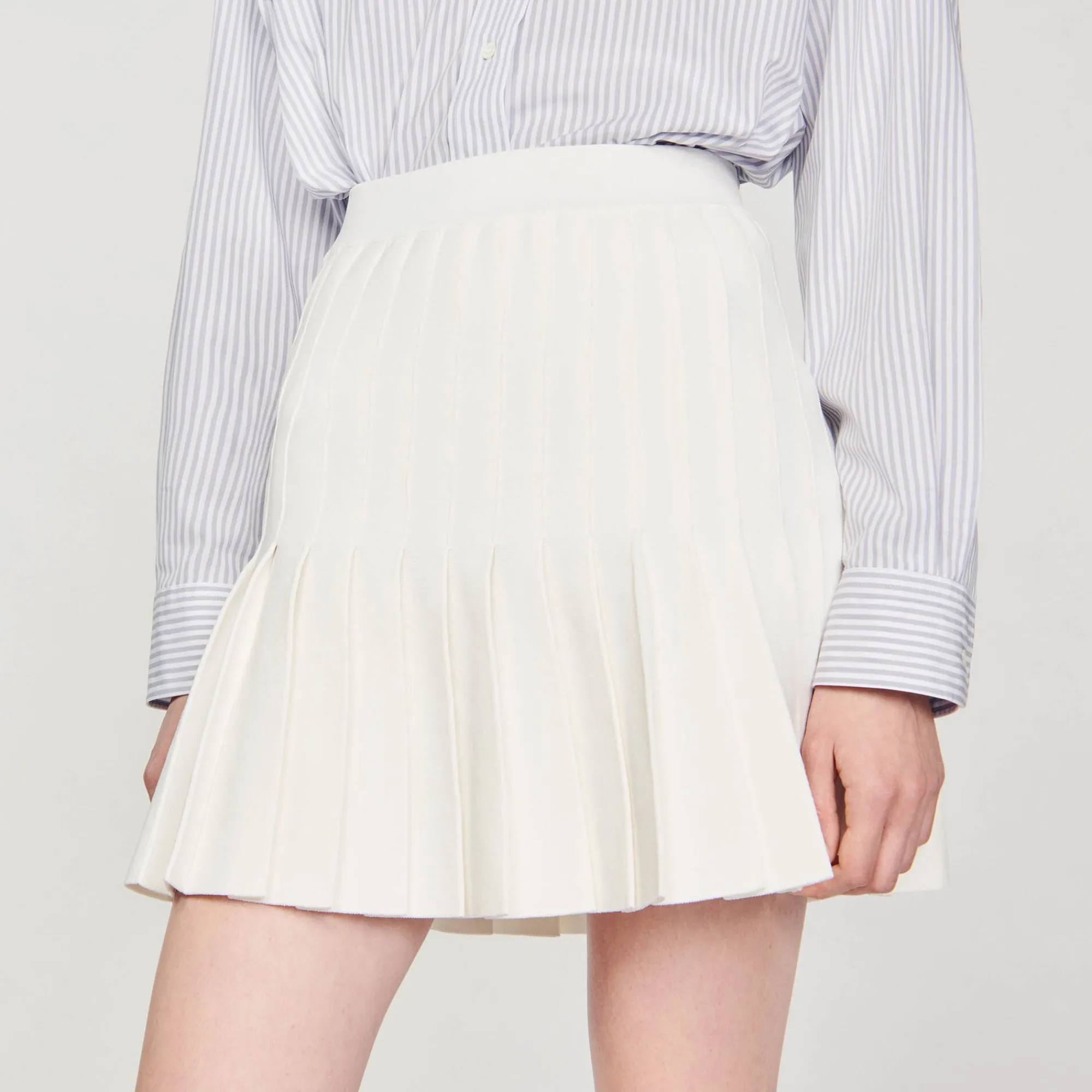 Saia Curta De Malha Plissada Levemente Alargada Na Parte Inferior. Saia Curta Feminina De Malha Sandro Pressionada Na Pa…