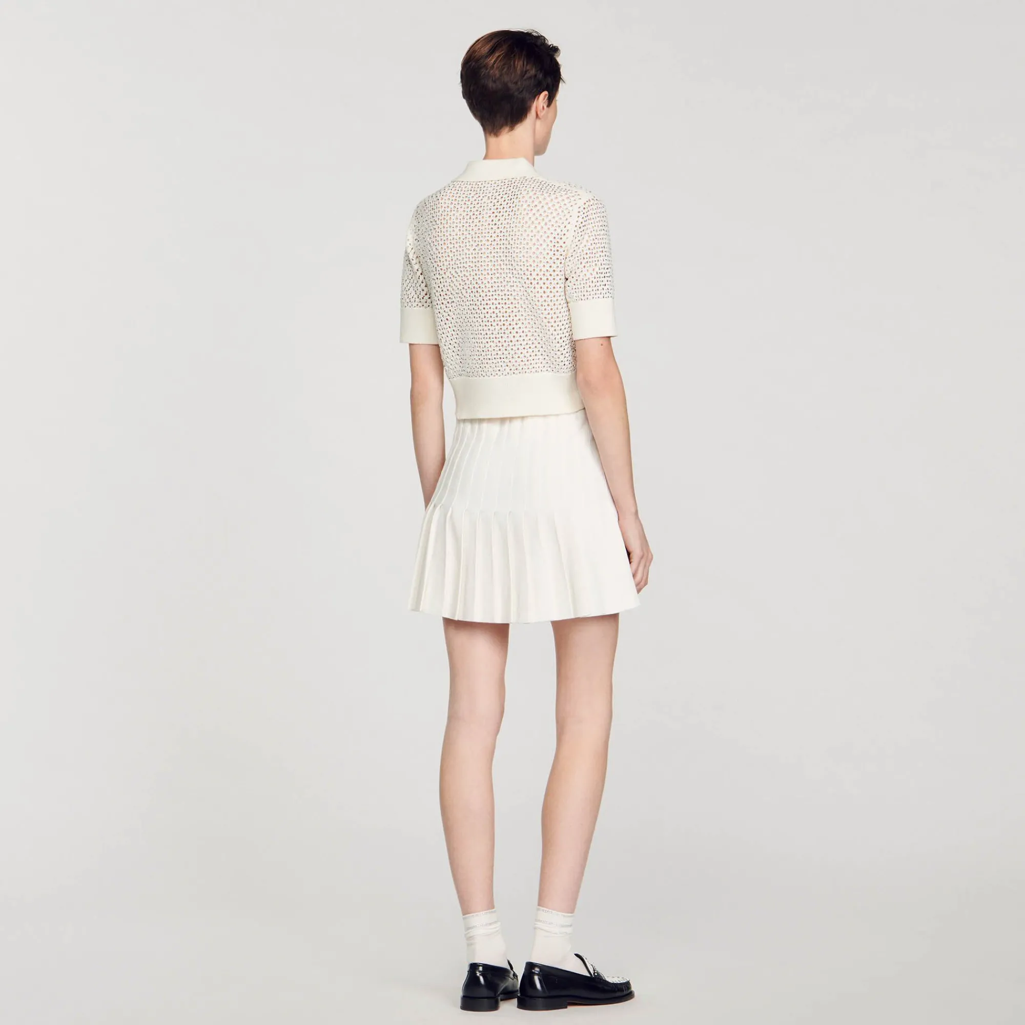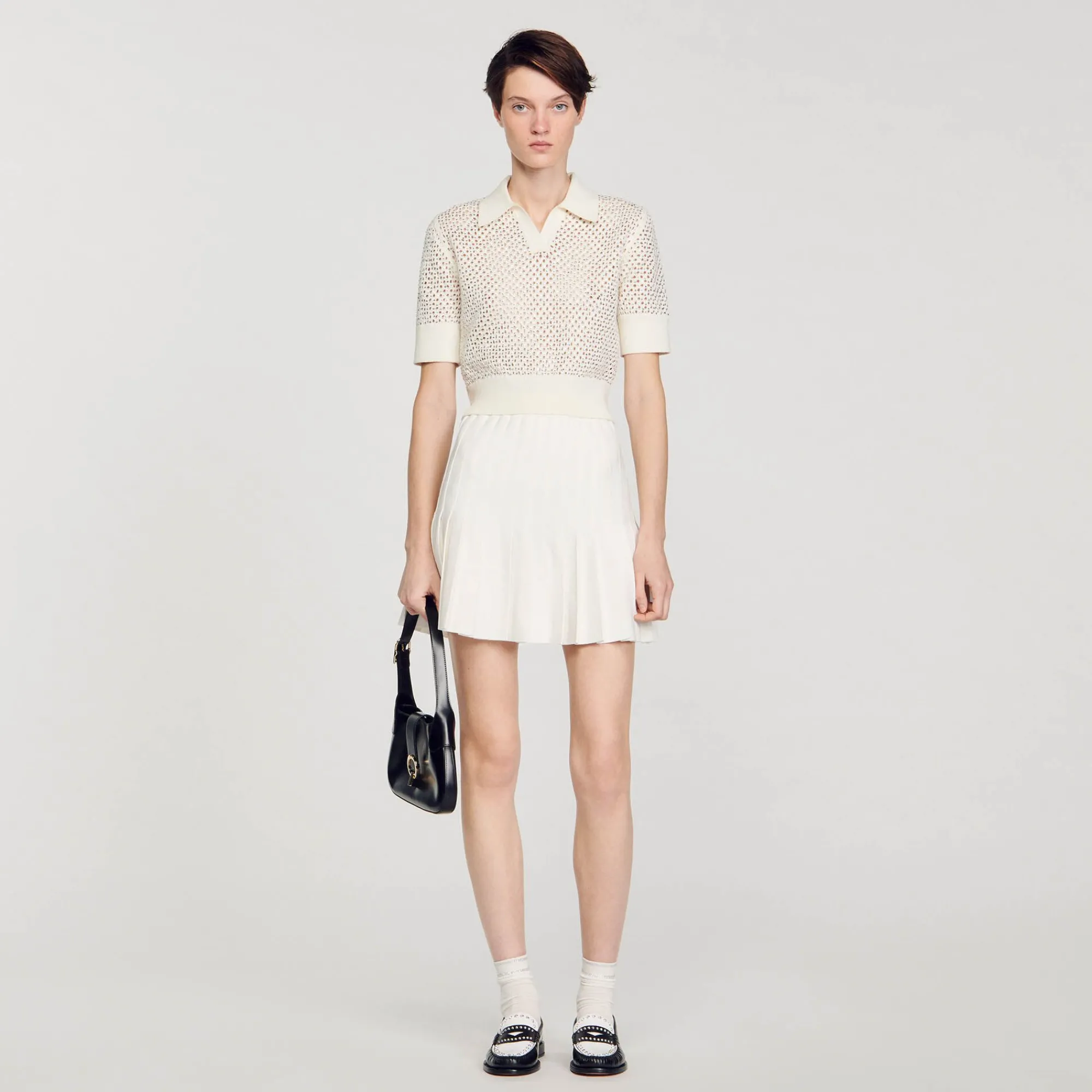 Camisola Curta Em Malha De Malha Com Detalhe De Strass, Gola Pólo, Mangas Curtas E Bainha Canelada.