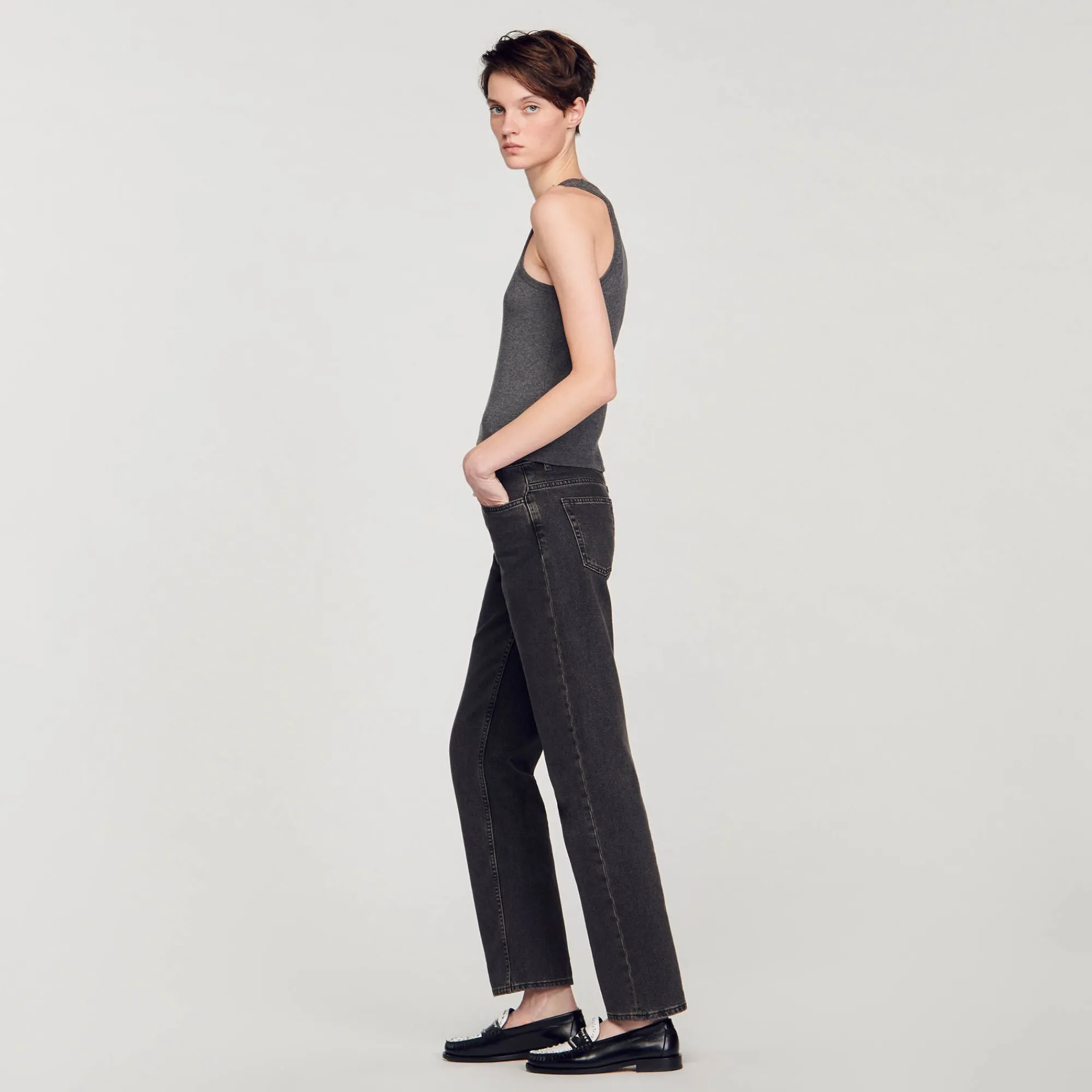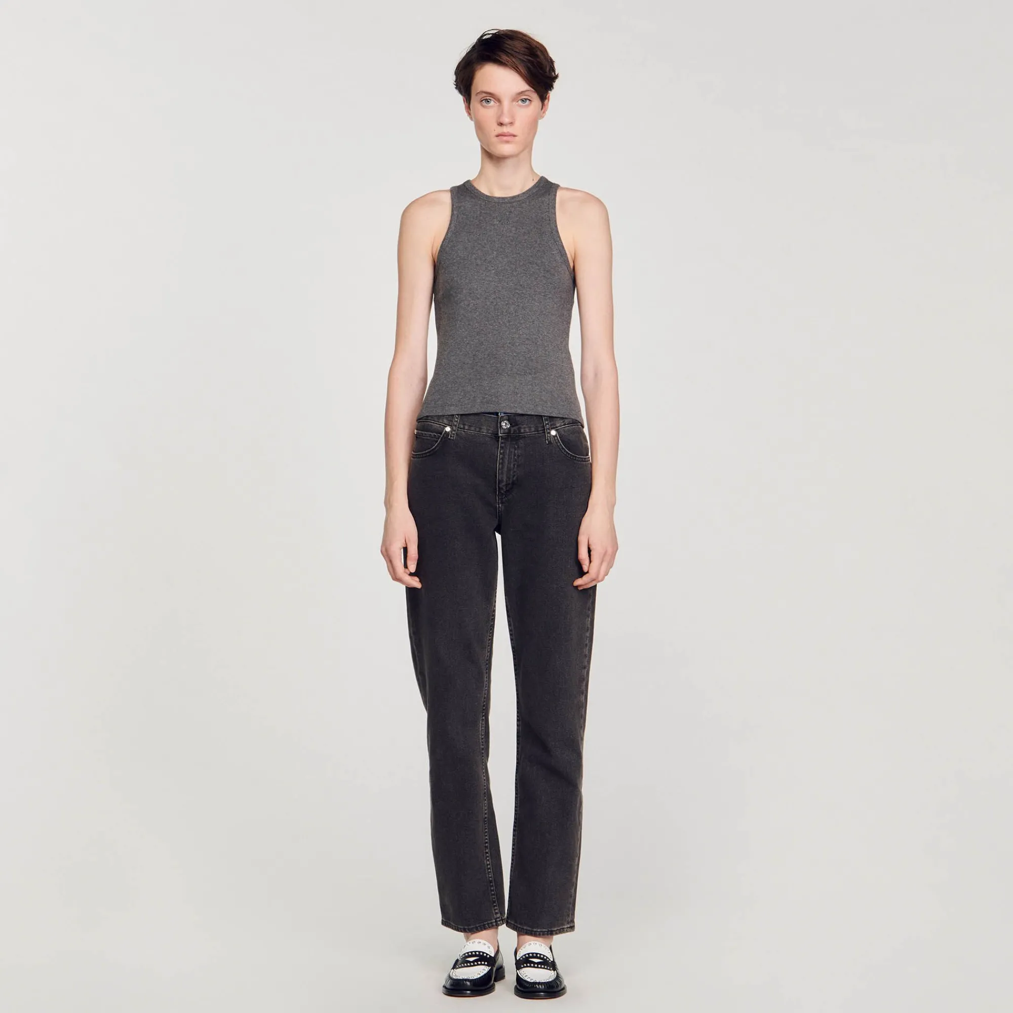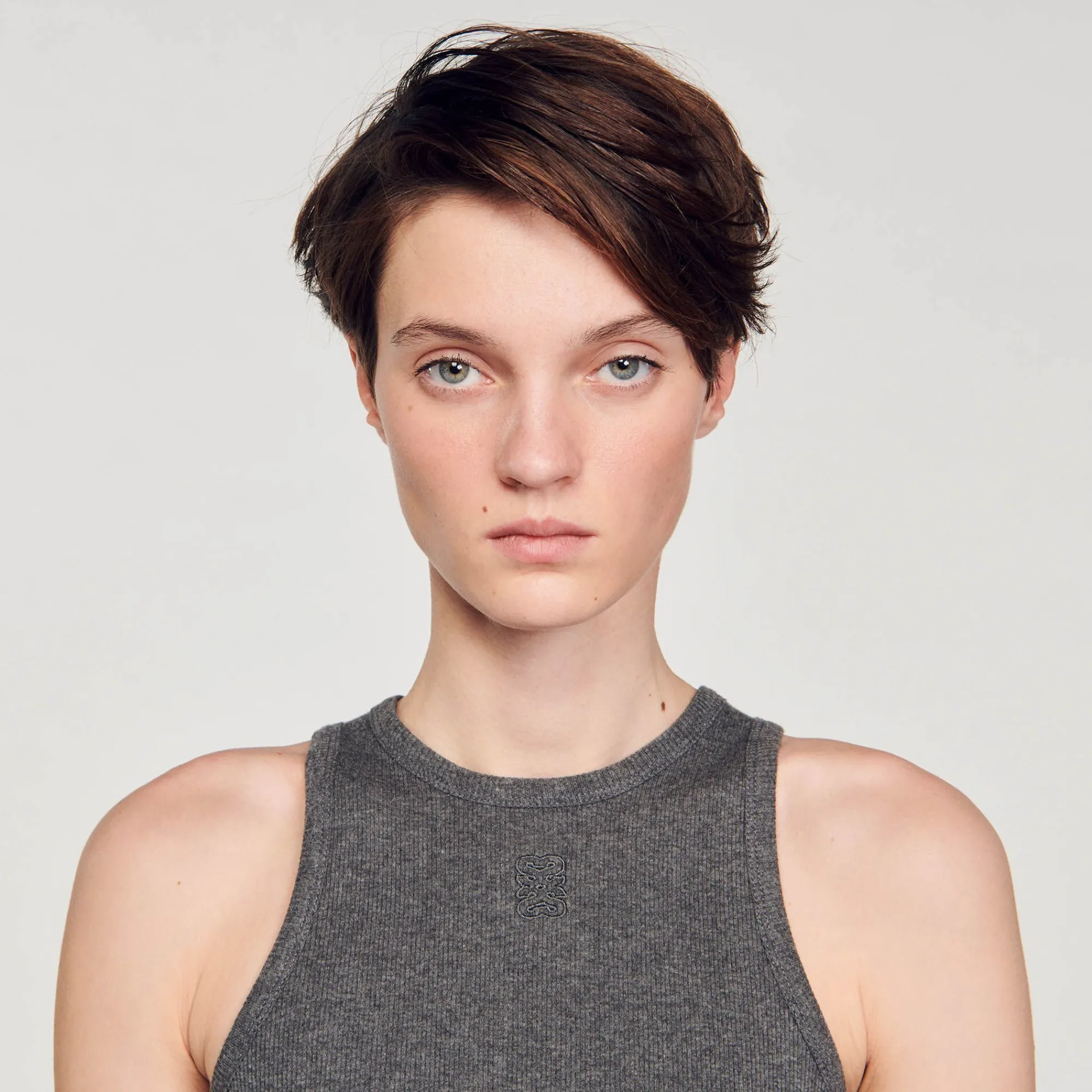 Regata Curta Com Decote Redondo E Cavas Americanas, Decorada Com Bordado Duplo S No Peito. Camiseta Curta Sandro Femme G…