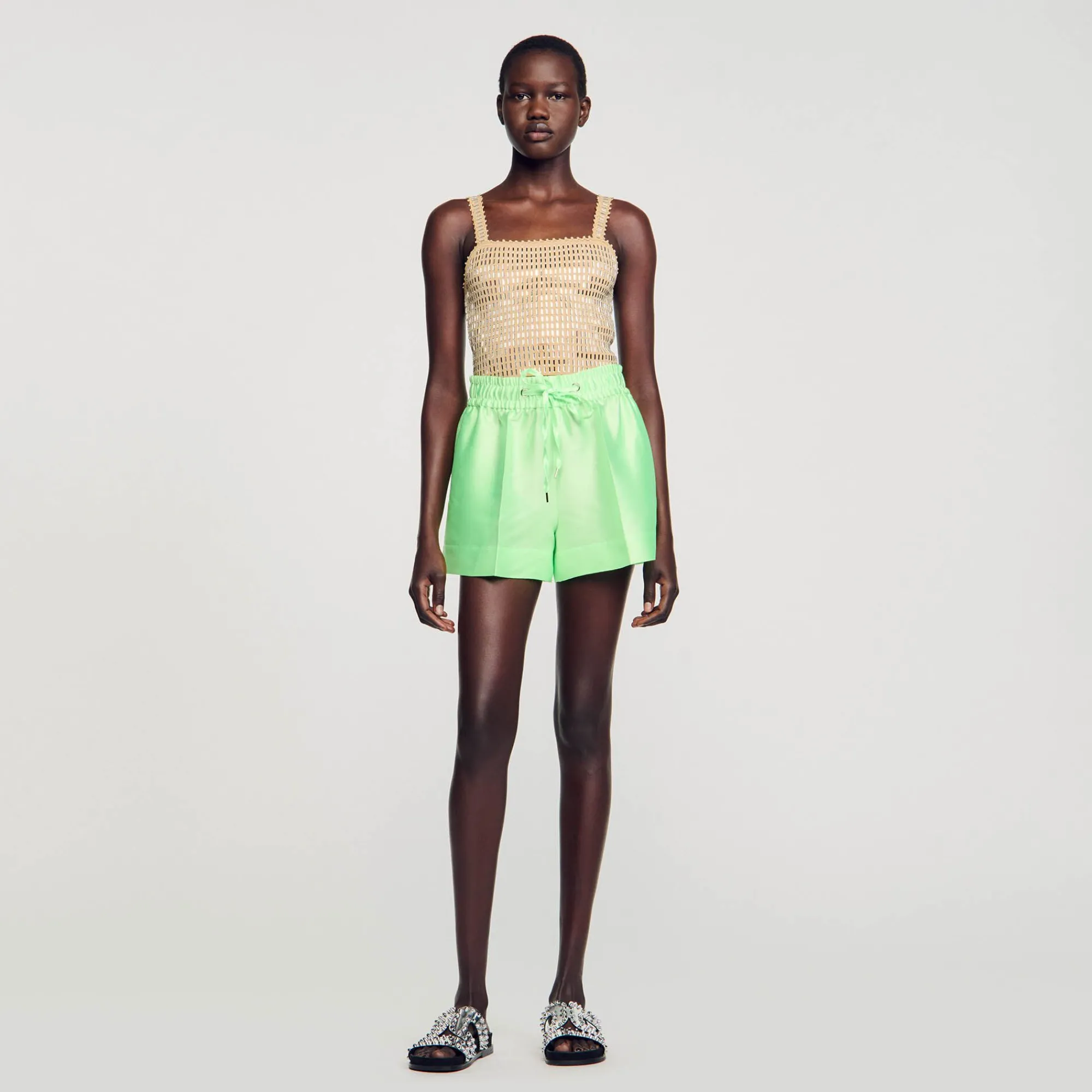 Top Curto Em Malha Com Detalhe De Strass, Decote Reto E Alças. Top Cropped Feminino Sandro Decote Reto Forma Curta E Ju…