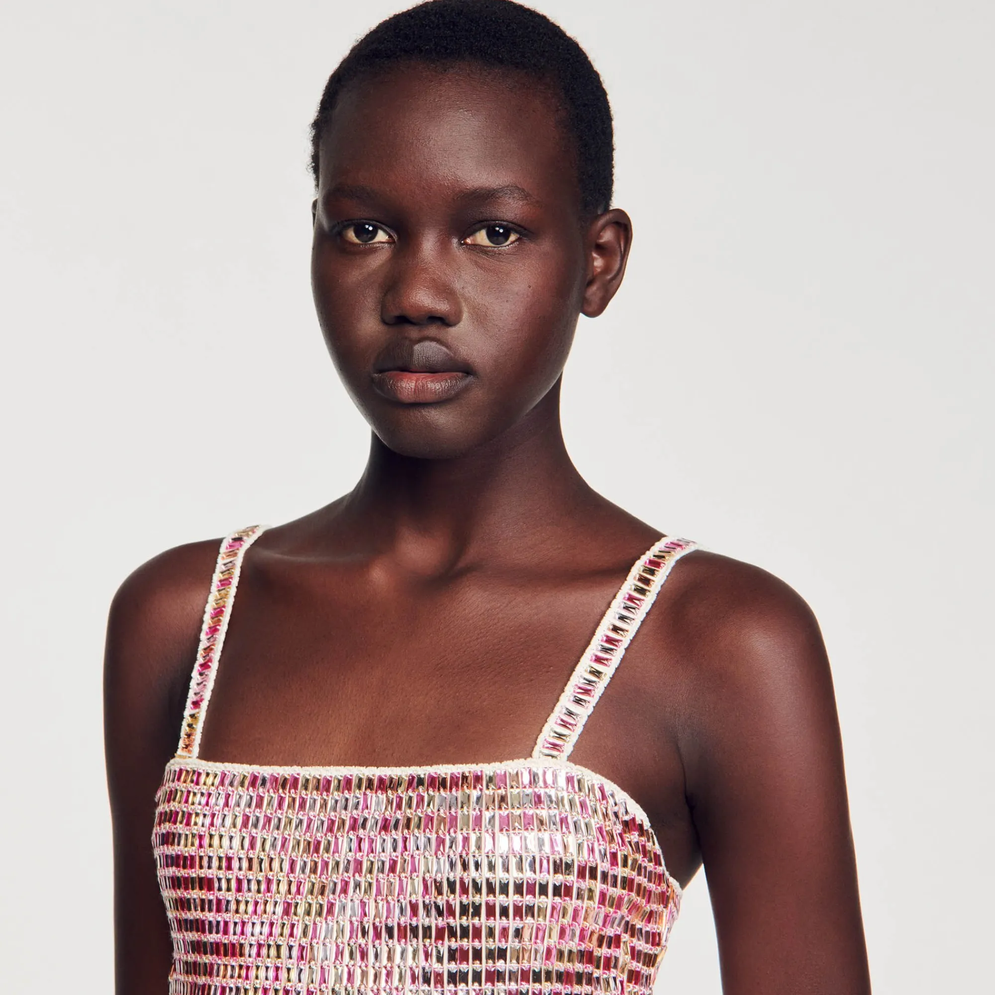 Top Curto De Malha Com Alças Finas E Detalhe De Strass Fantasia Bordado Por Toda Parte. Top Feminino De Malha Sandro St…