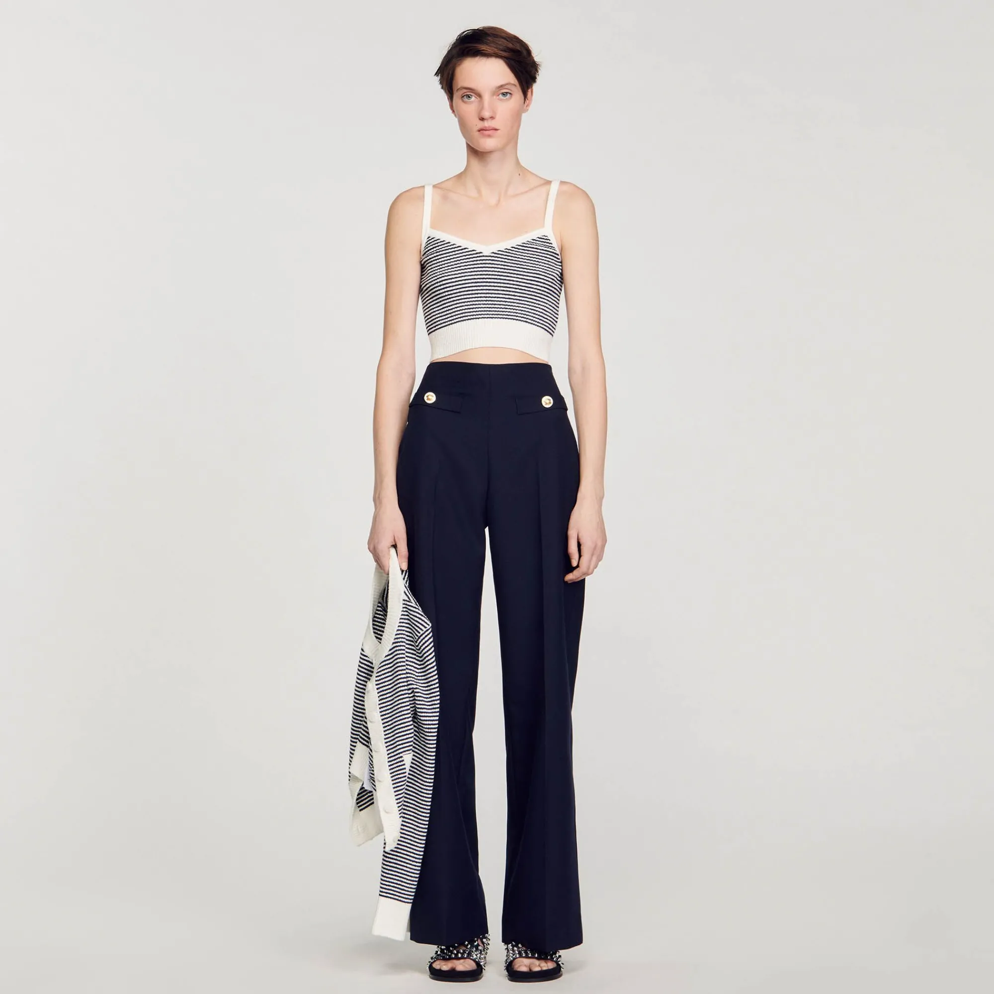 Top Cropped Em Malha Atoalhada Listrada, Com Alças Finas E Acabamento Canelado Contrastante.