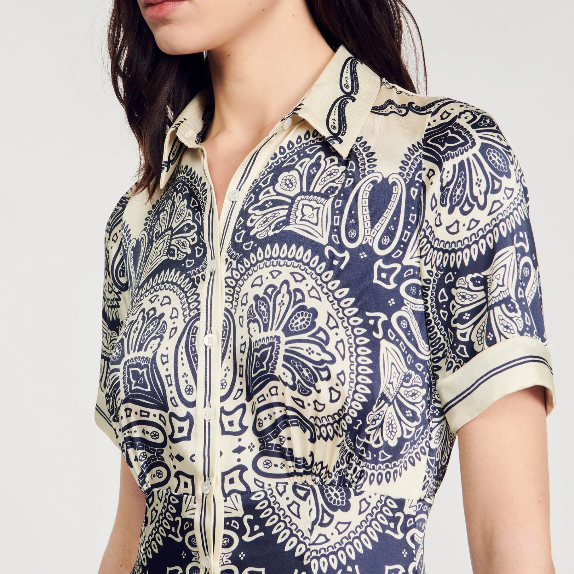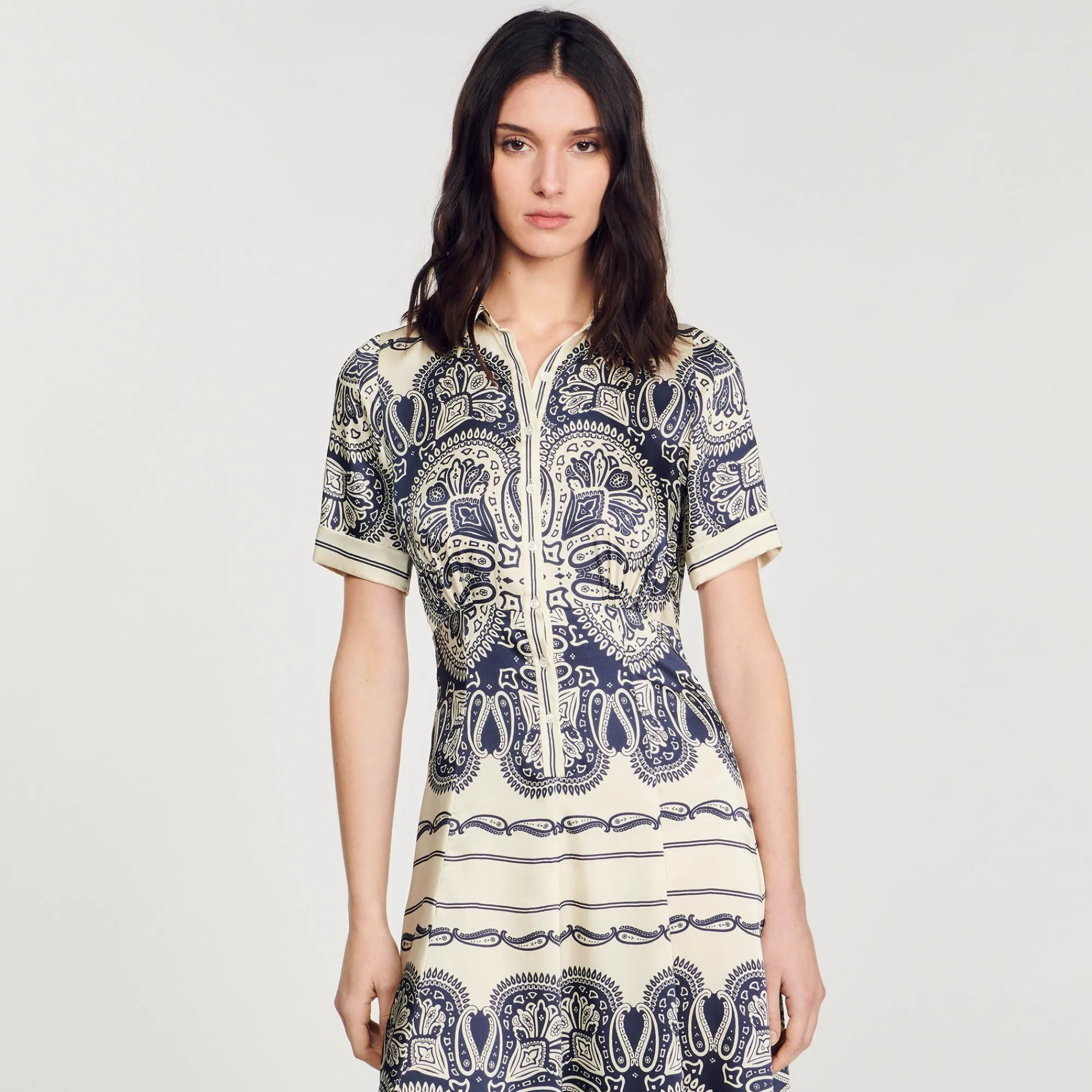 Vestido Longo Com Botões, Gola De Camisa, Manga Curta, Saia Larga E Estampa Paisley. Vestido Camisa Longo Sandro Femme …