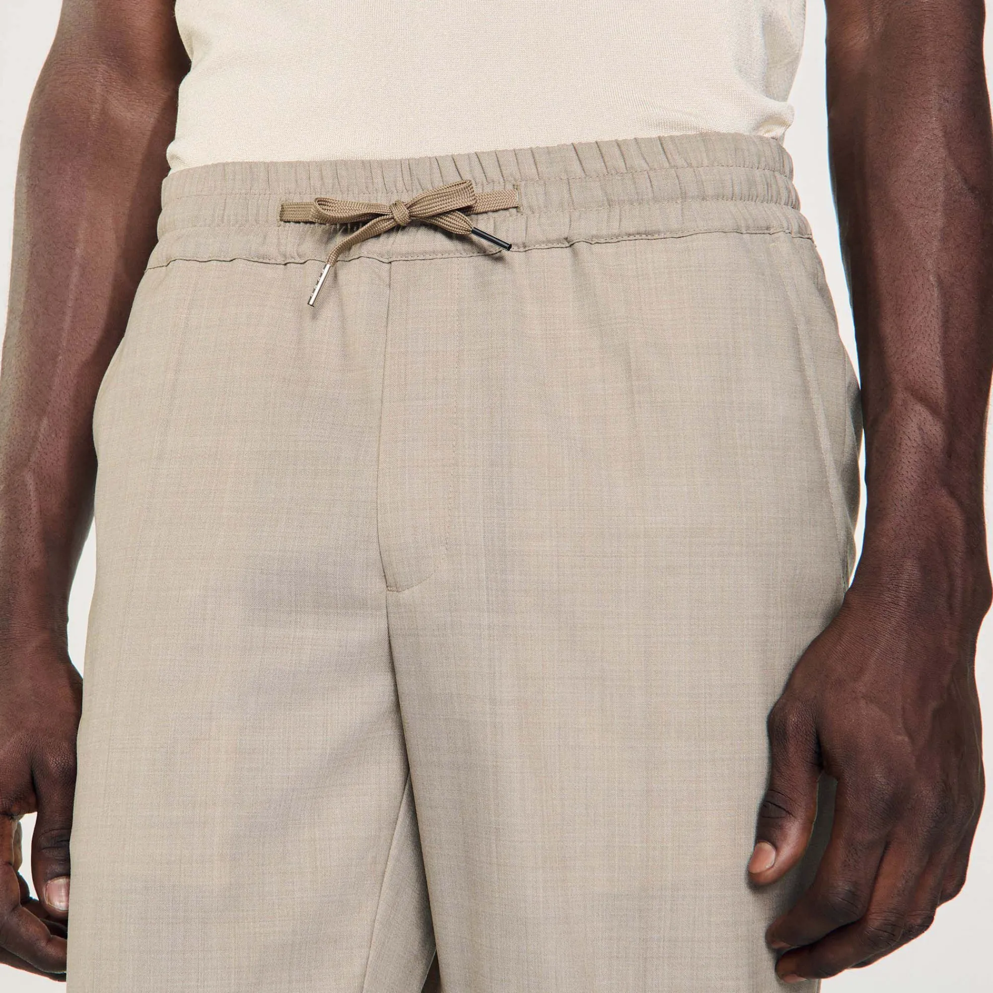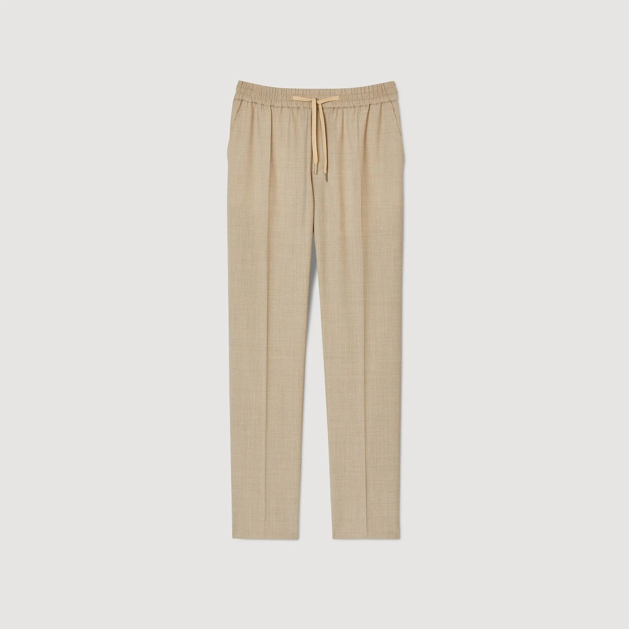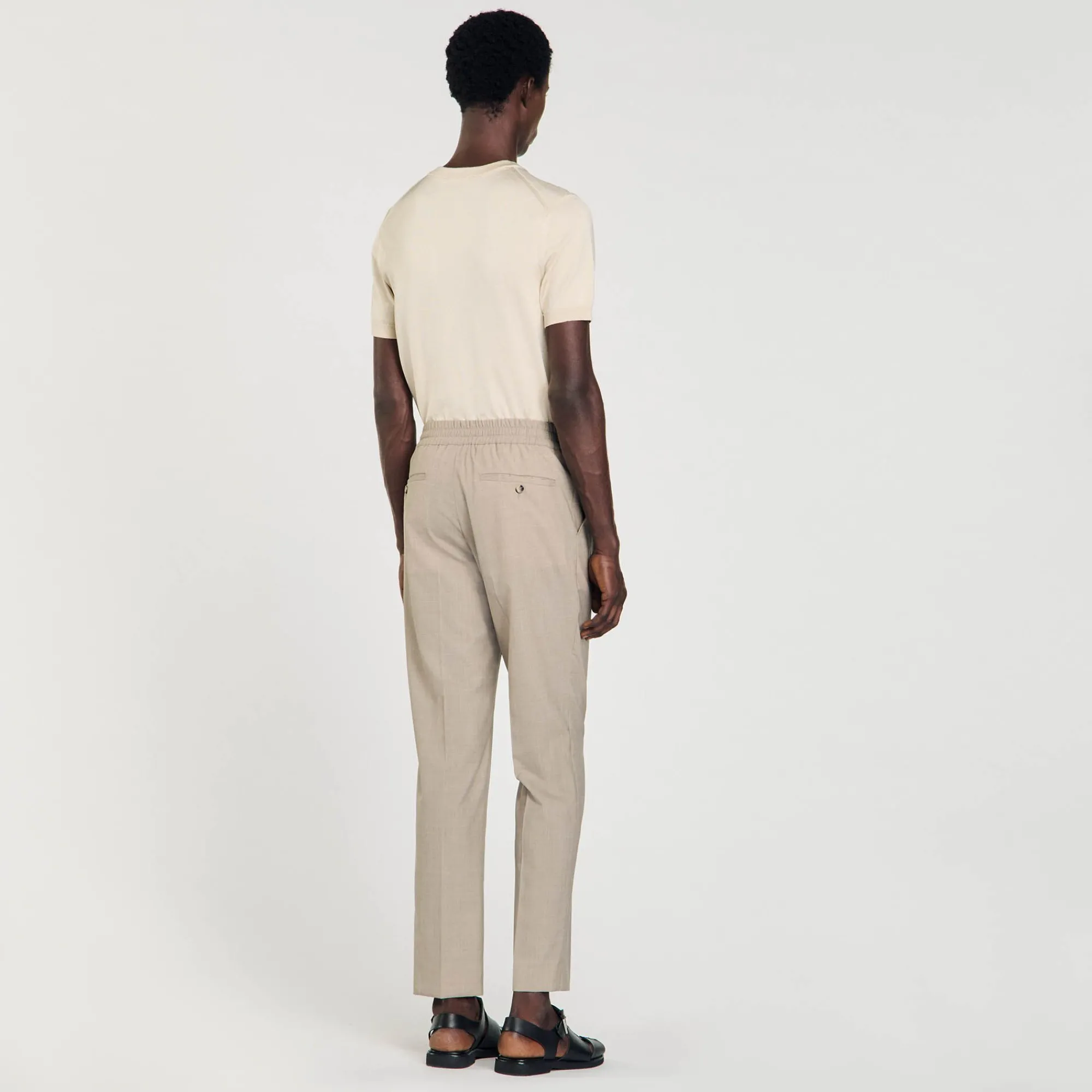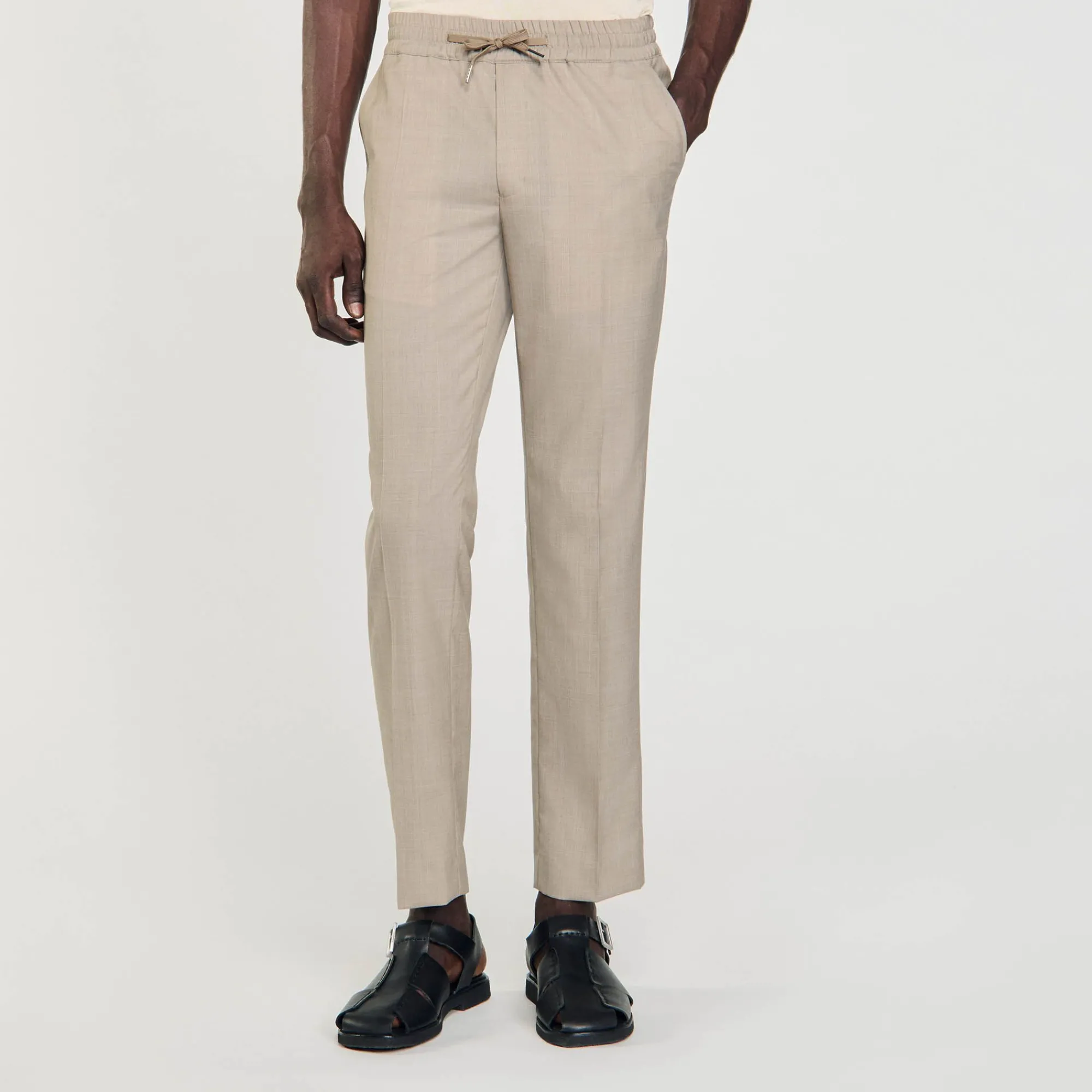 Calça Reta Com Cintura Elástica Com Cordões E Bolsos Nas Laterais. Calças Retas Sandro Homme Cordão E Cintura Elás…