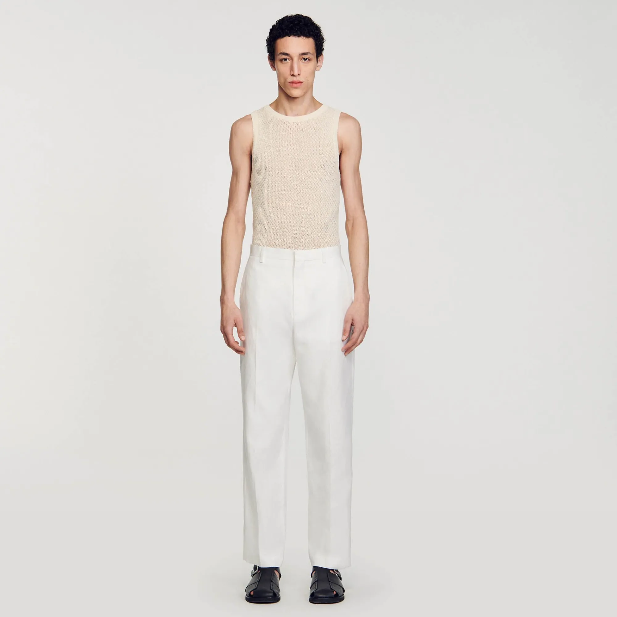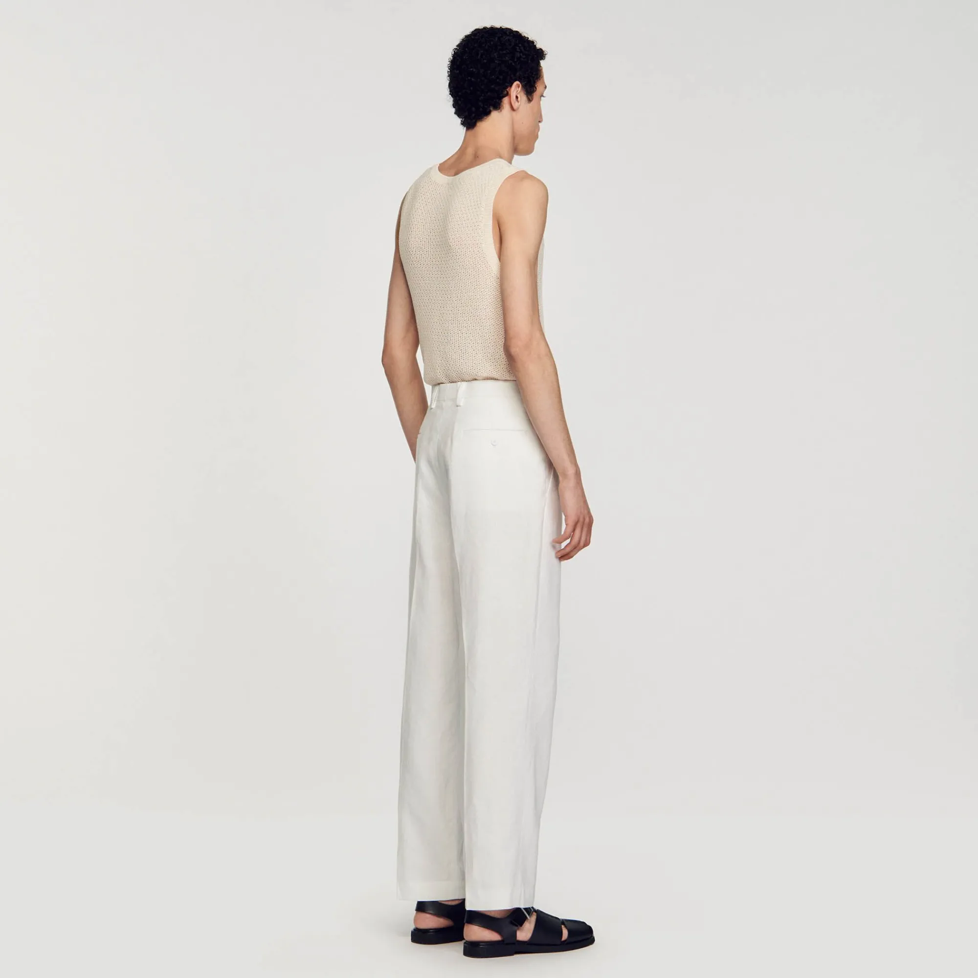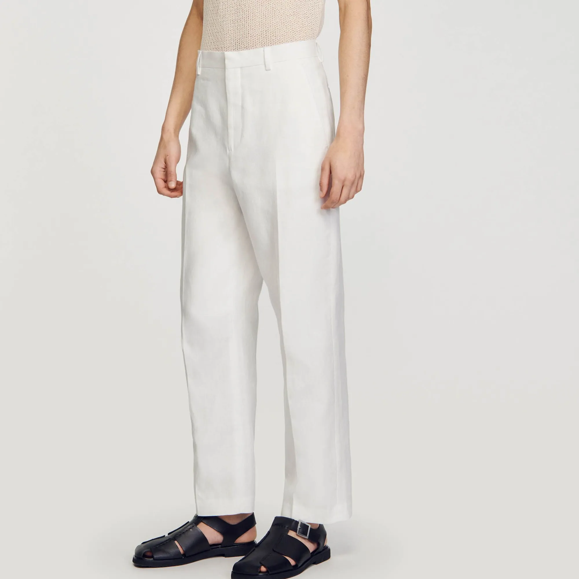 Calças Em Linho E Algodão Com Corte Largo E Bolsos Laterais E Traseiros. Calças Masculinas Sandro De Linho E Algodão…