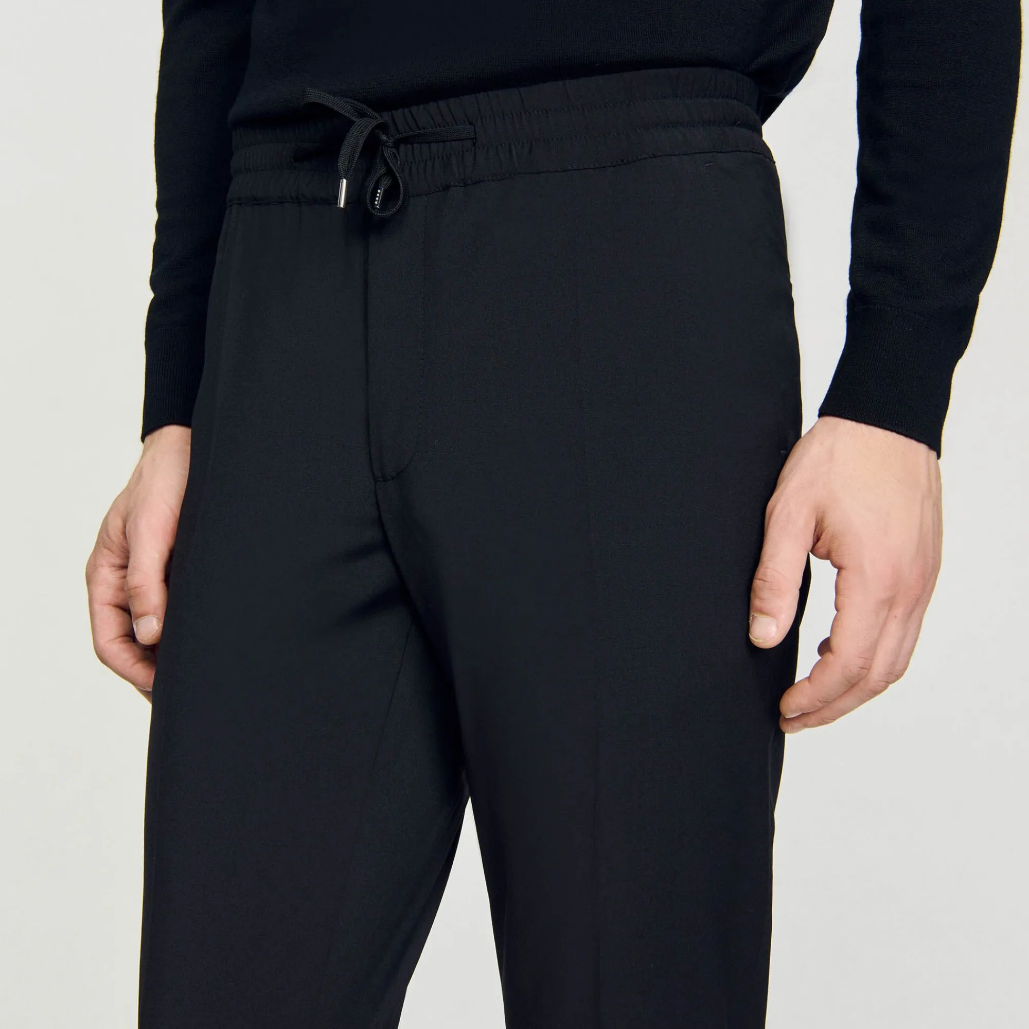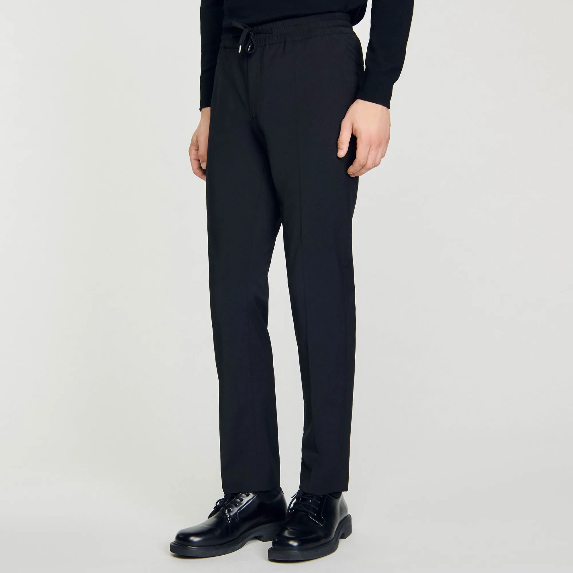 Calça Reta Com Cintura Elástica, Cordão E Bolsos. Calça Reta Masculina SandroCintura ElásticaCordão2 Bolsos Nas La…