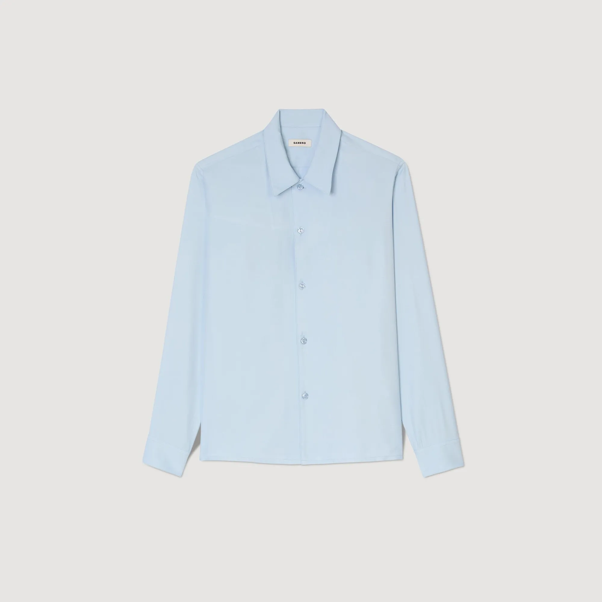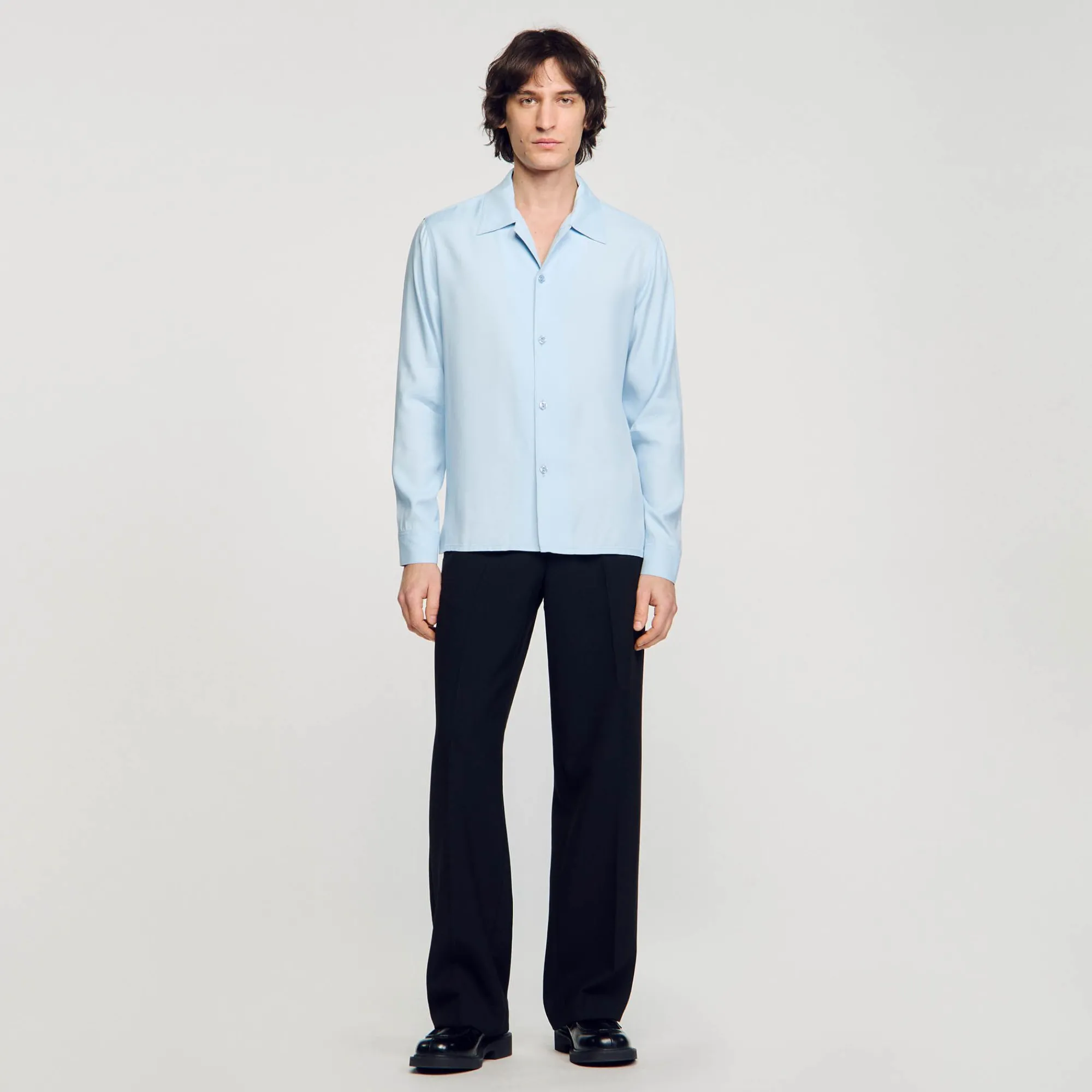 Camisa Fluida Com Mangas Compridas, Punhos Abotoados, Gola Italiana E Fecho De Botão. Camisa Fluida Sandro Homme Gola I…