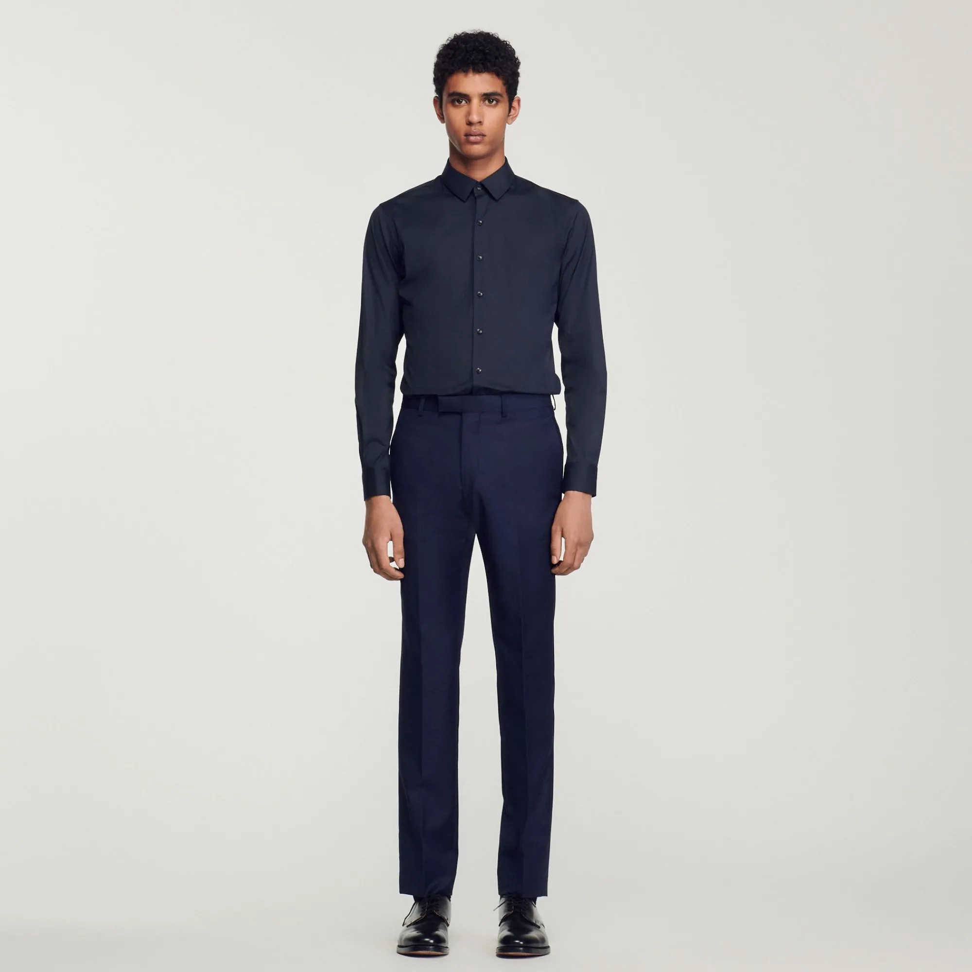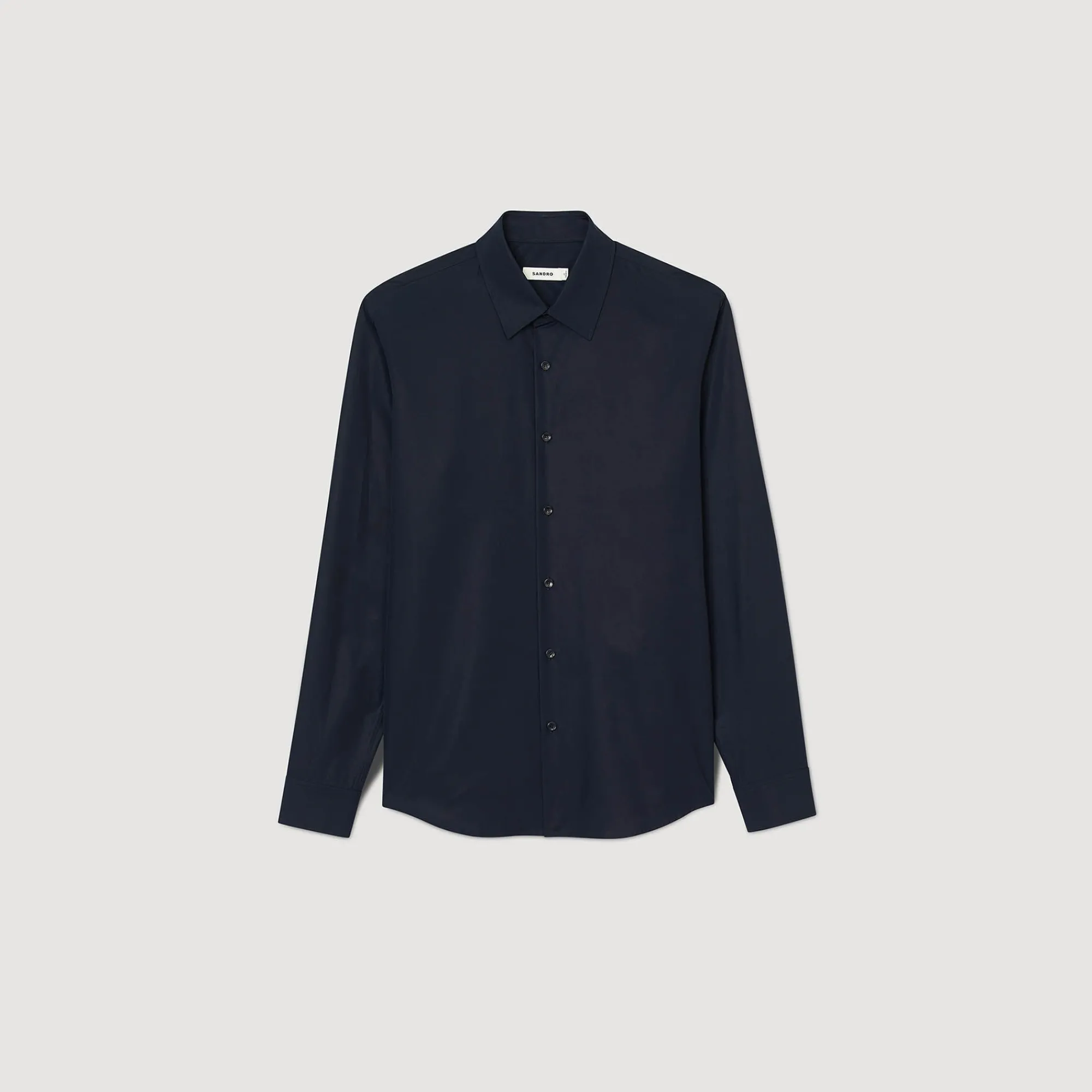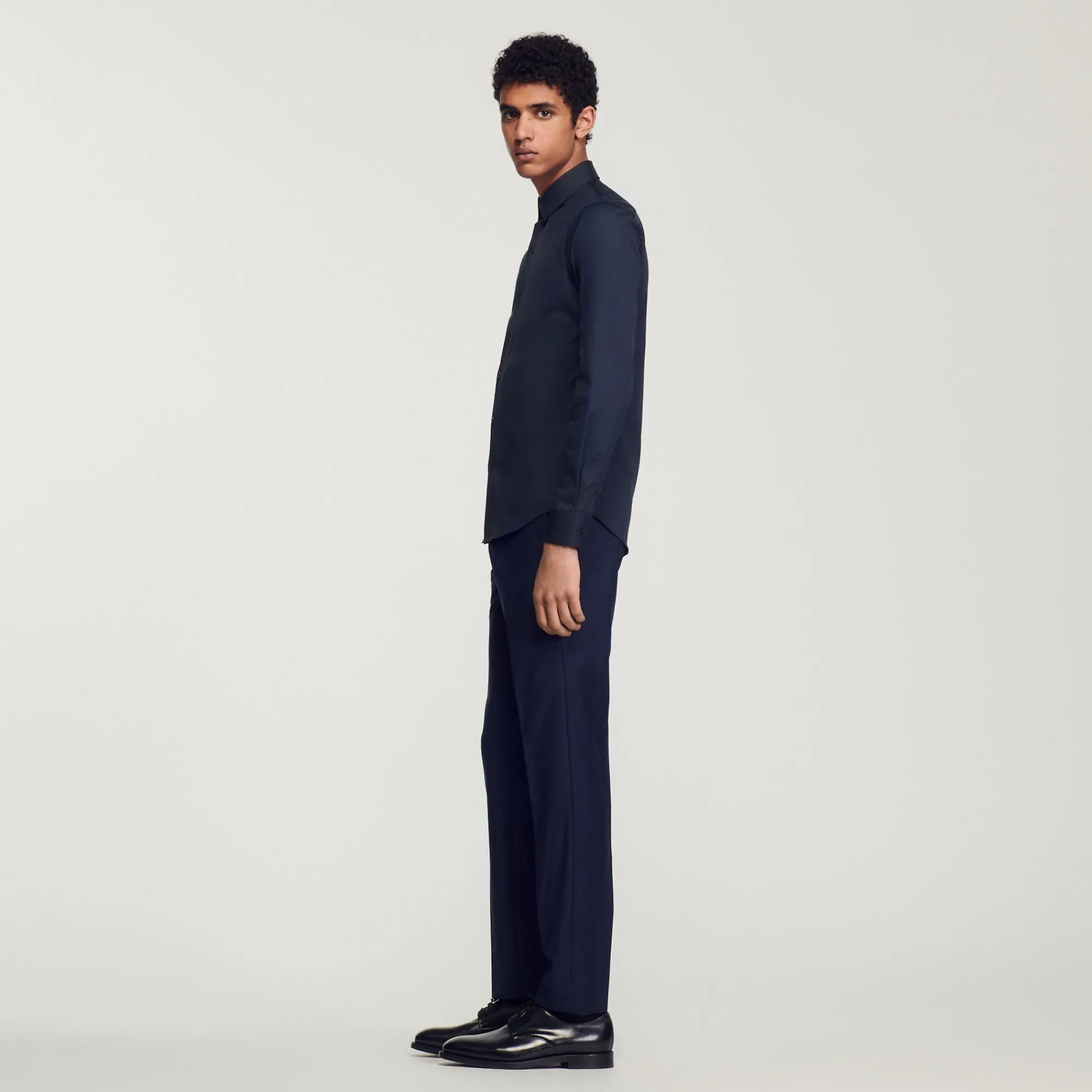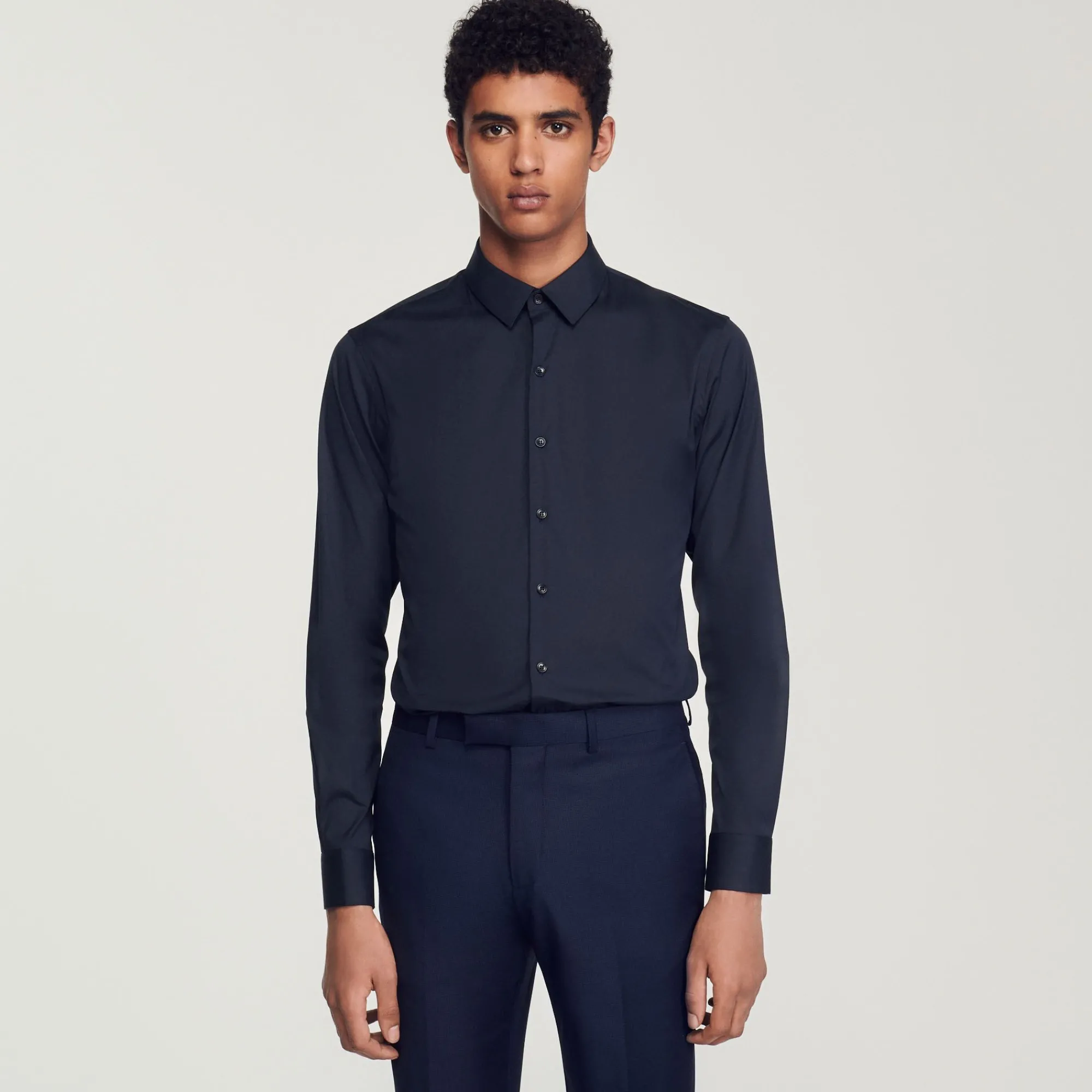 Camisa Justa De Algodão Stretch Com Mangas Compridas, Punhos Abotoados, Gola Clássica E Fecho De Botão.