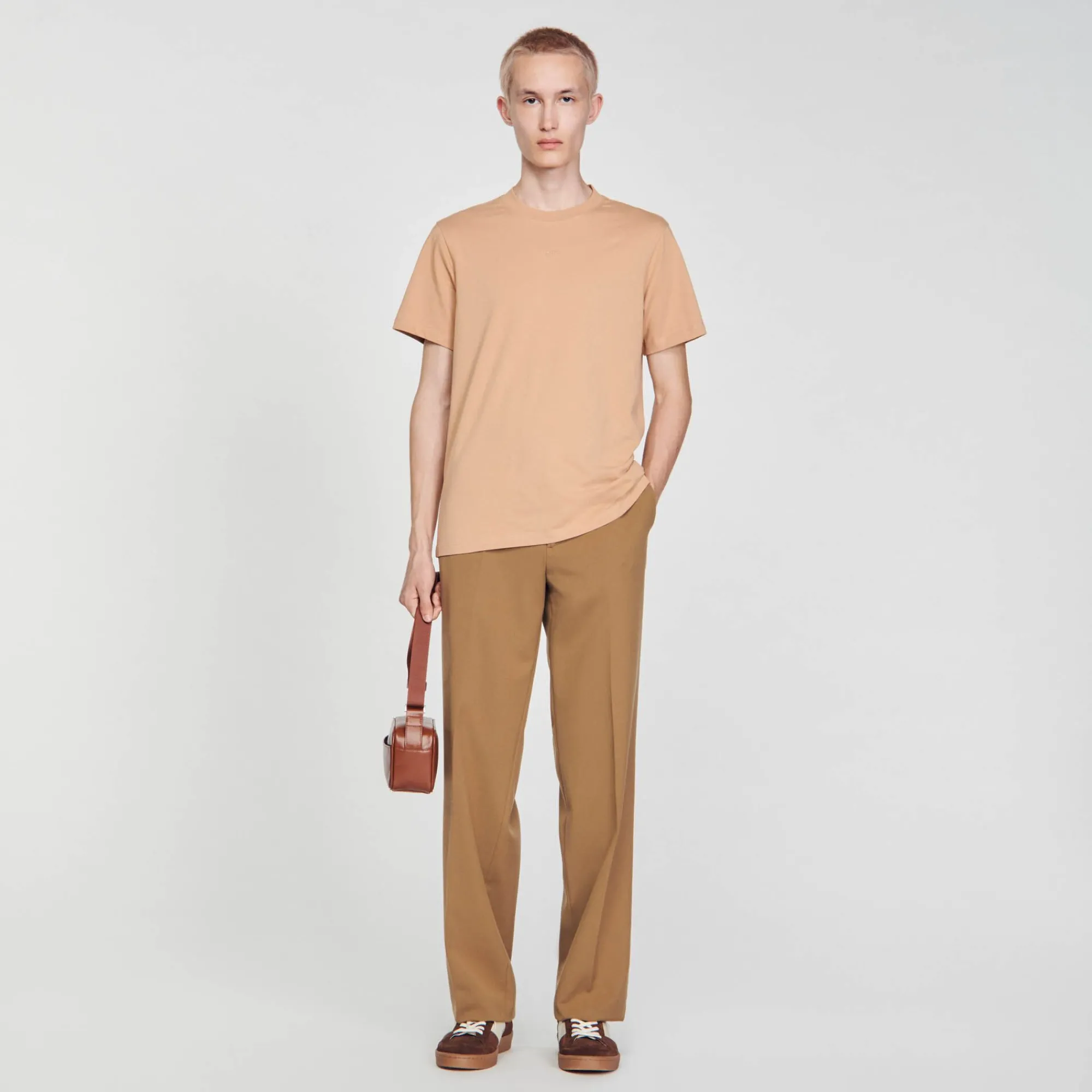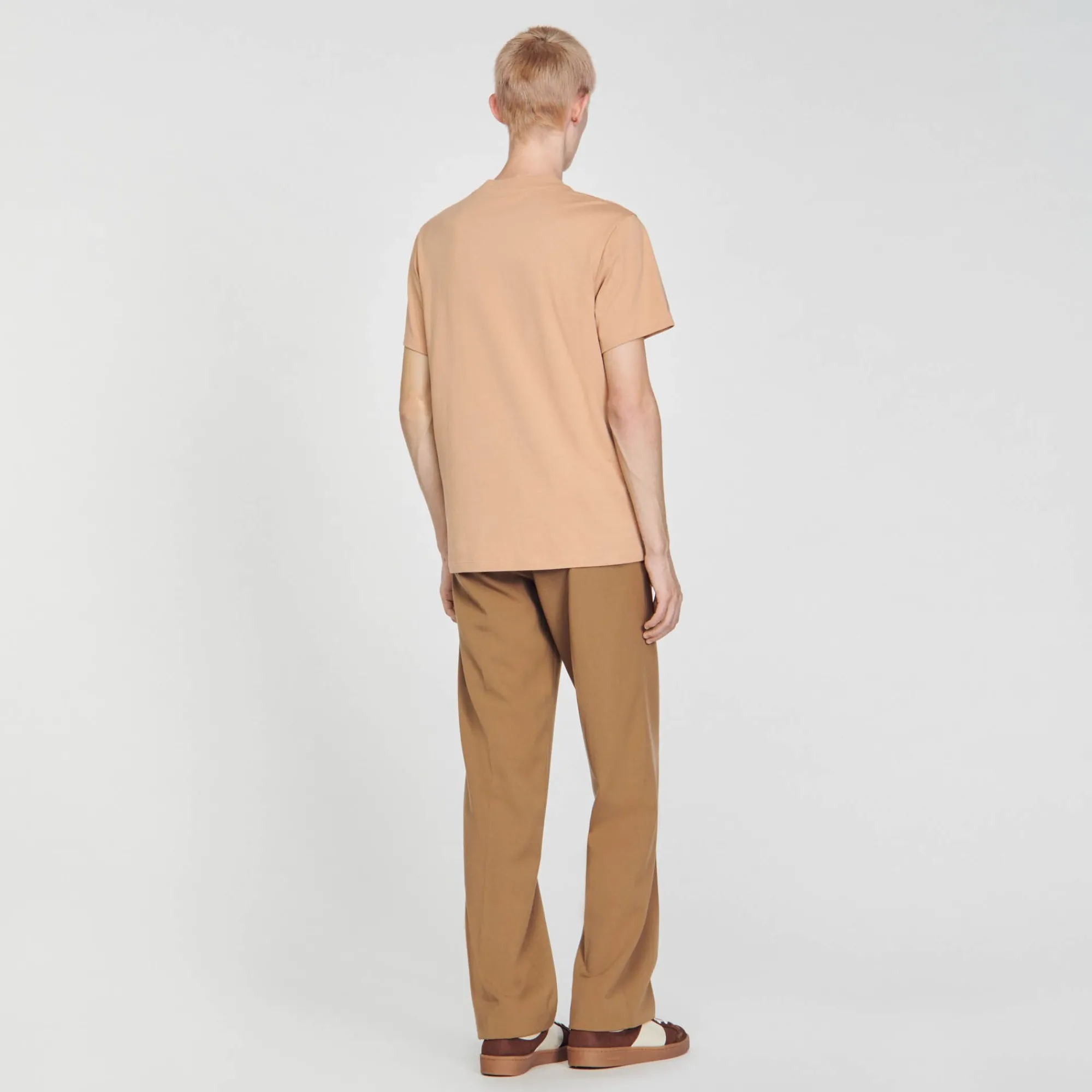 T-Shirt De Gola Redonda E Manga Curta Com Bordado Sandro. Camiseta Masculina Sandro Gola Redonda Com Nervuras Mangas Cur…
