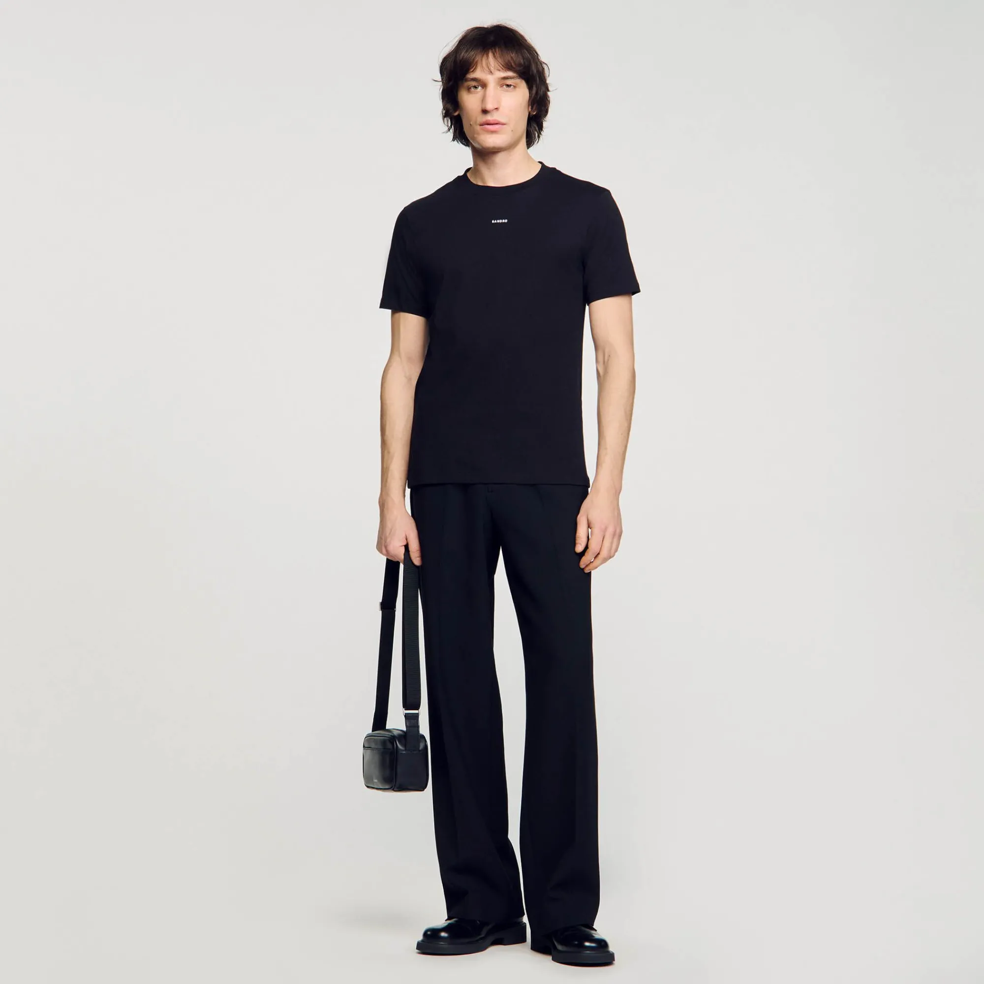 T-Shirt De Gola Redonda E Manga Curta Com Bordado Sandro. Camiseta Masculina Sandro Gola Redonda Com Nervuras Mangas Cur…