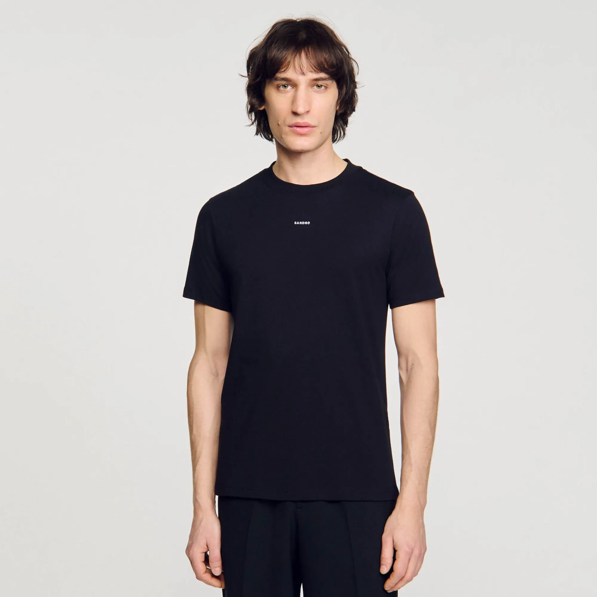 T-Shirt De Gola Redonda E Manga Curta Com Bordado Sandro.