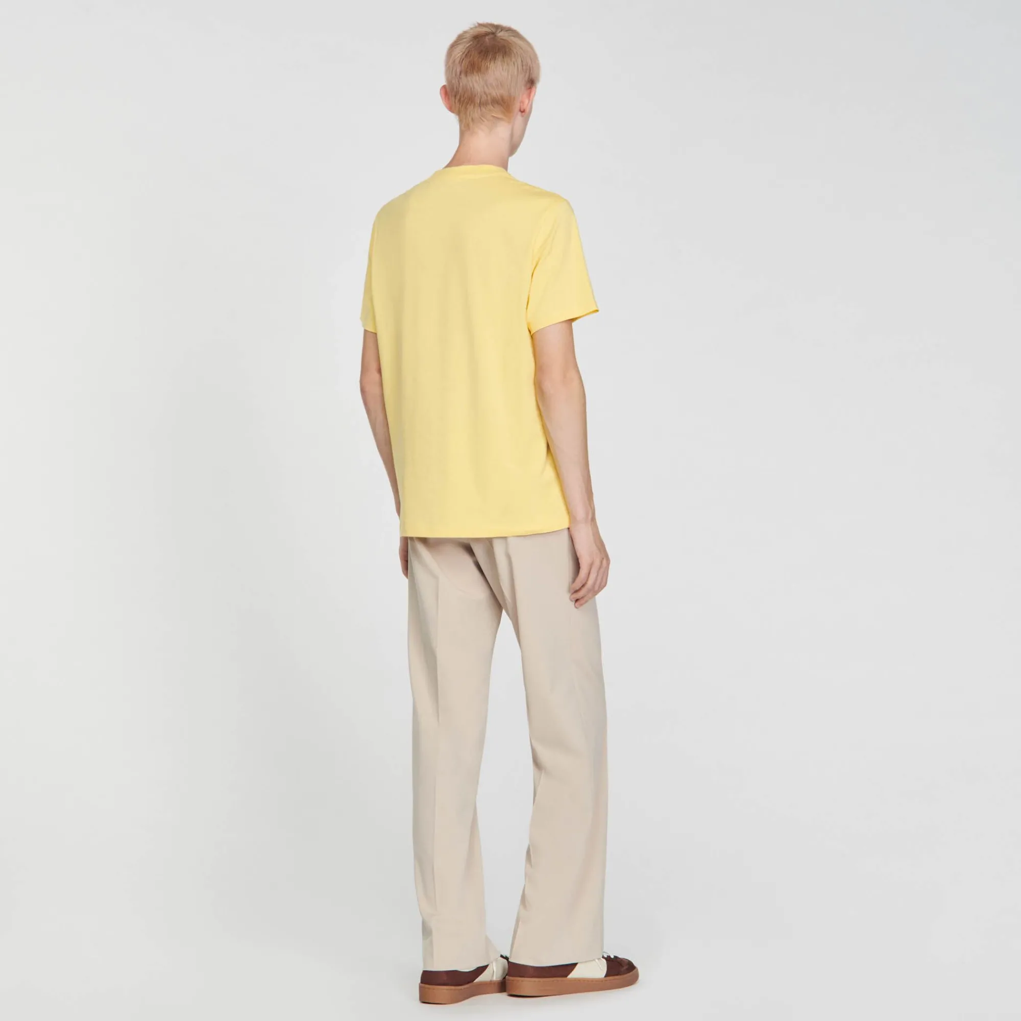 T-Shirt De Gola Redonda E Manga Curta Com Bordado Sandro. Camiseta Masculina Sandro Gola Redonda Com Nervuras Mangas Cur…
