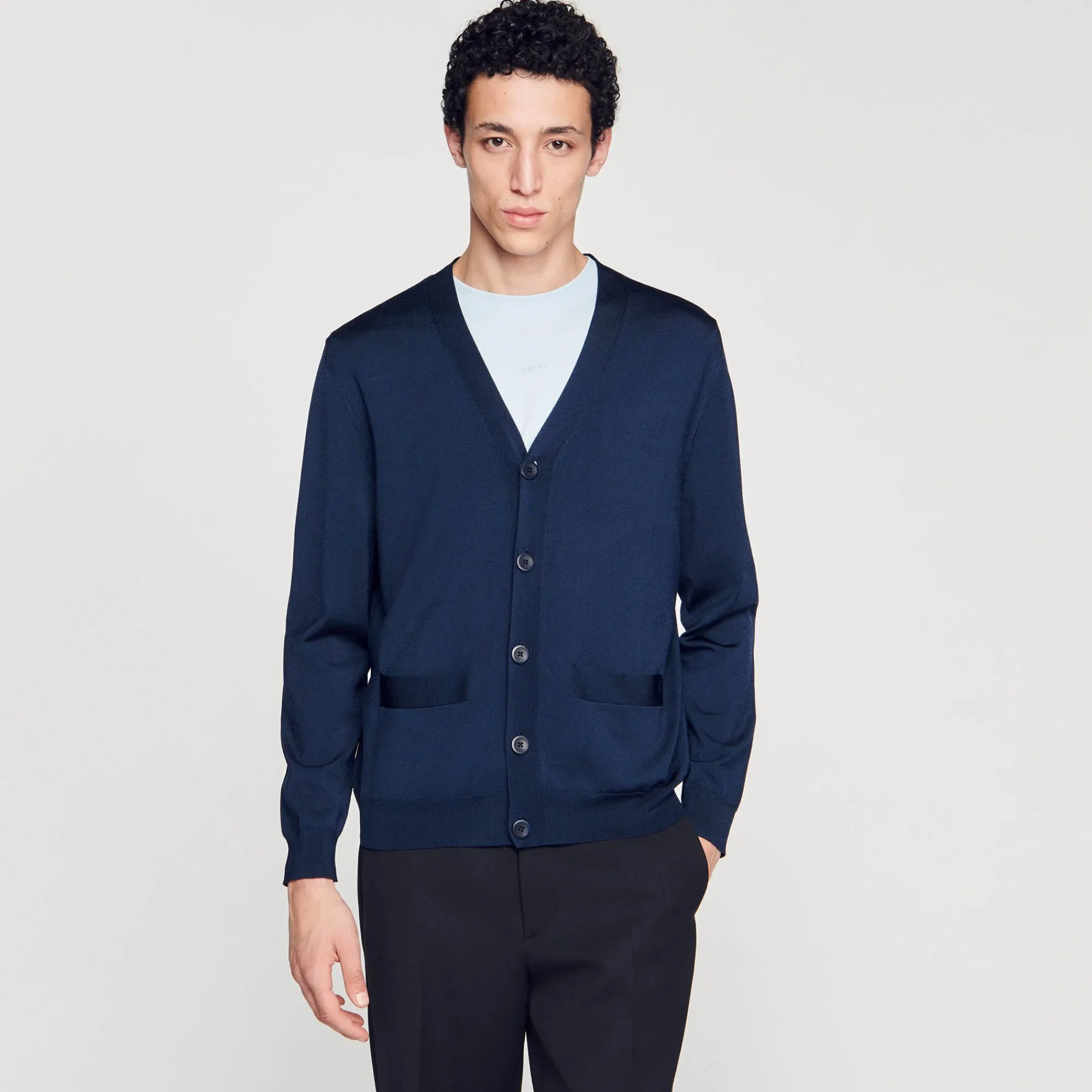 Cardigan De Malha Com Fecho De Botão, Manga Comprida, Dois Bolsos De Aplicação E Acabamento Canelado.