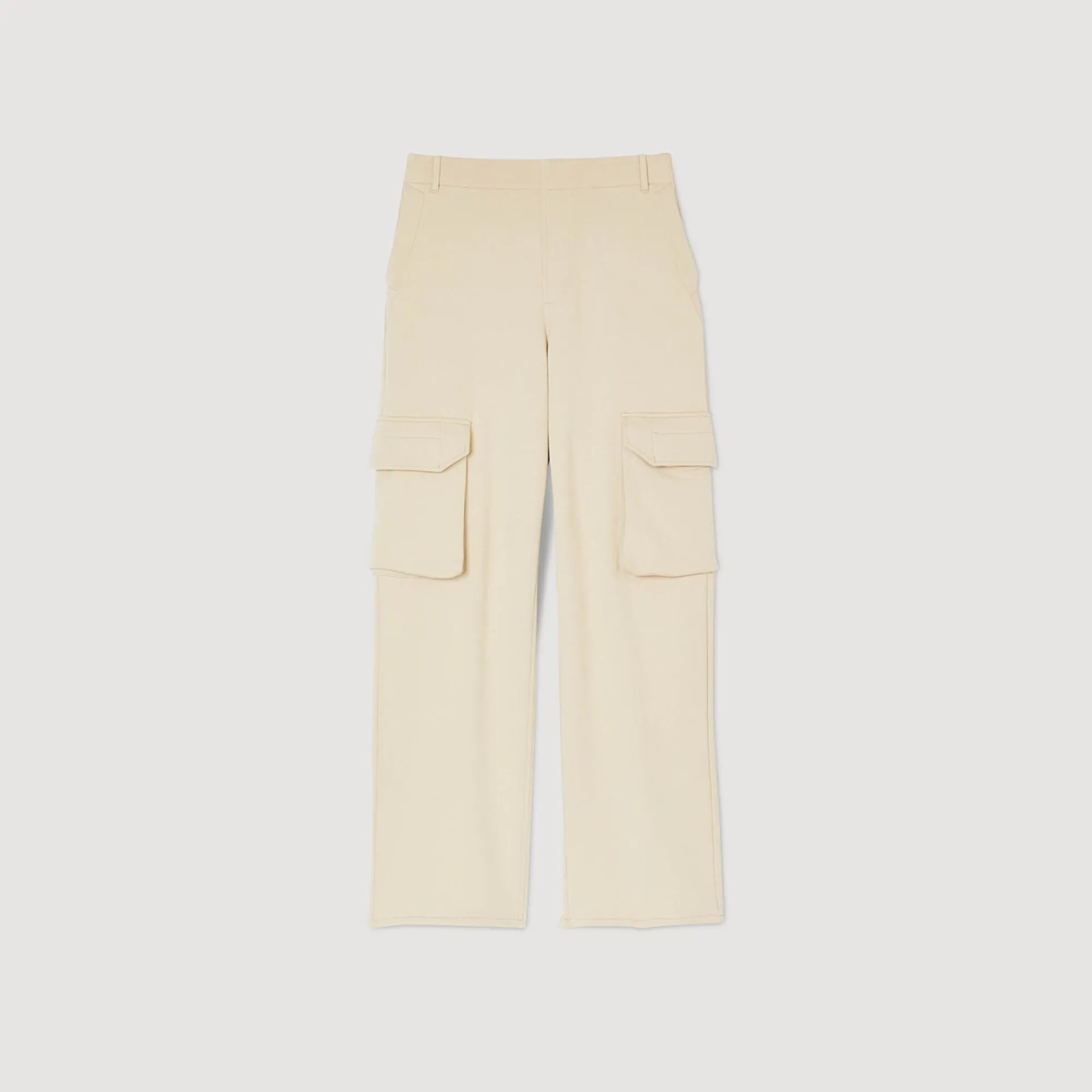 Calça De Moletom De Lã Escovada Com Bolsos Cargo Nas Laterais E Bordado Sandro.