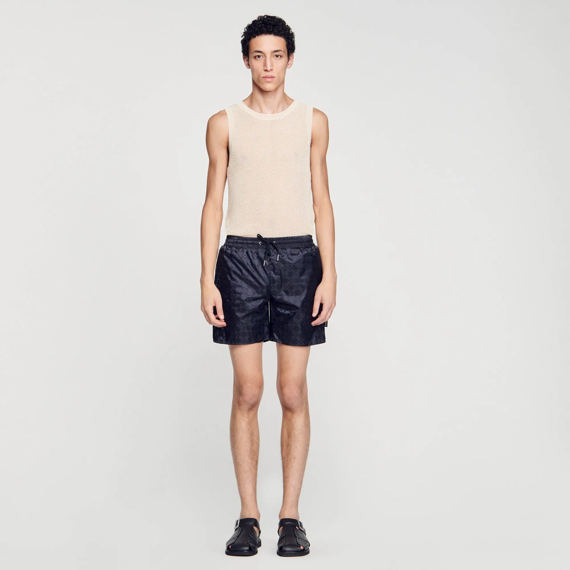 Fato De Banho Em Jacquard Squarecross, Cintura Elástica Com Cordões Ajustáveis, Bolsos Laterais E Bolsos De Aplicação Nas Costas.