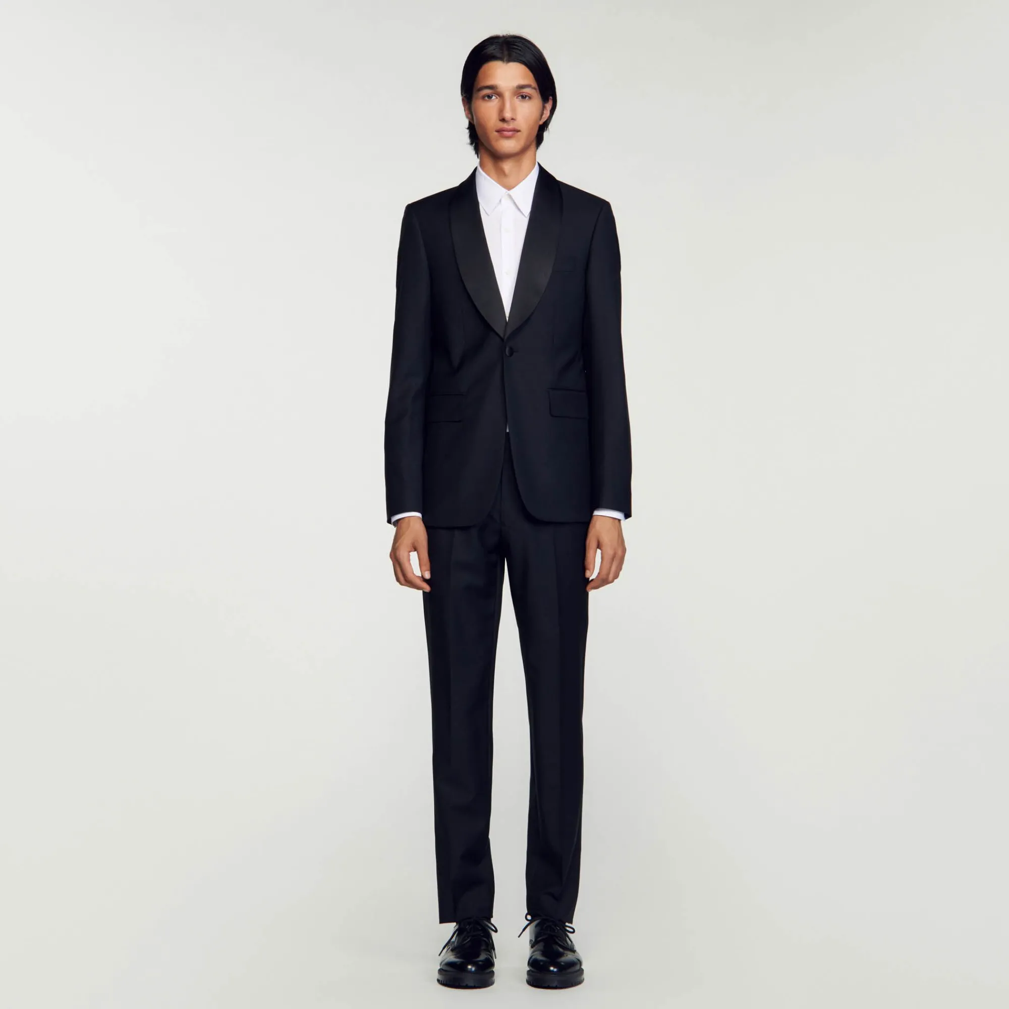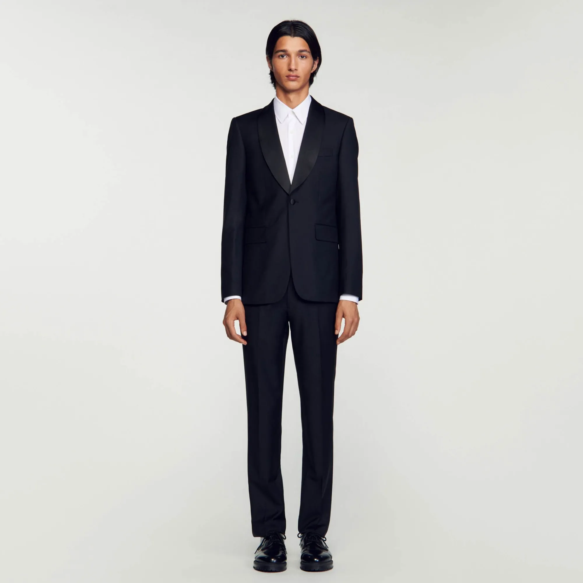 Jaqueta Smoking Com Gola Xale De Cetim, Mangas Compridas, Fecho De Botão E Bolsos Com Aba.Jaqueta De Smoking Sandro Hom…