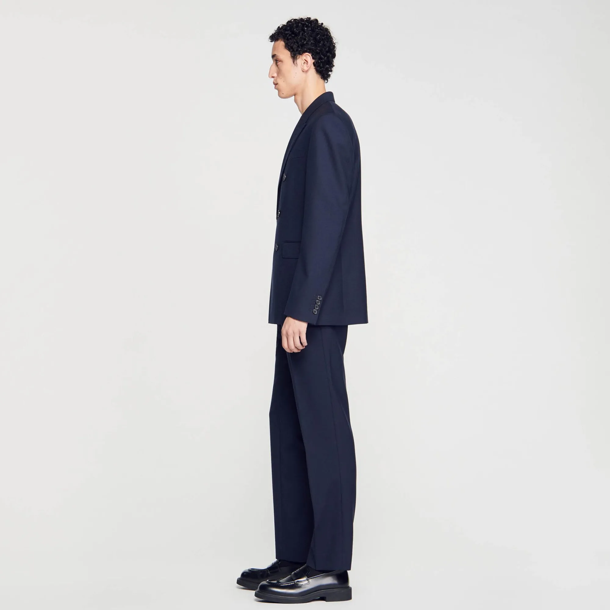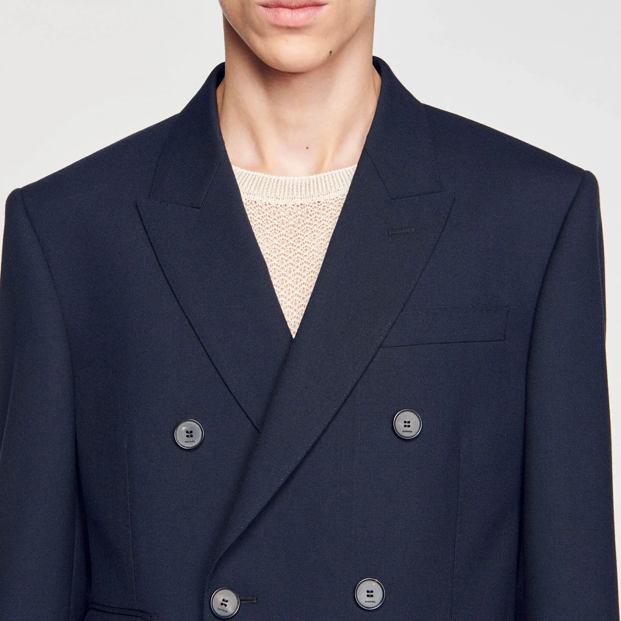 Casaco Trespassado De Lã, Manga Comprida Com Punhos Abotoados, Gola De Lapela, Três Bolsos De Pala E Um Bolso De Debrum.