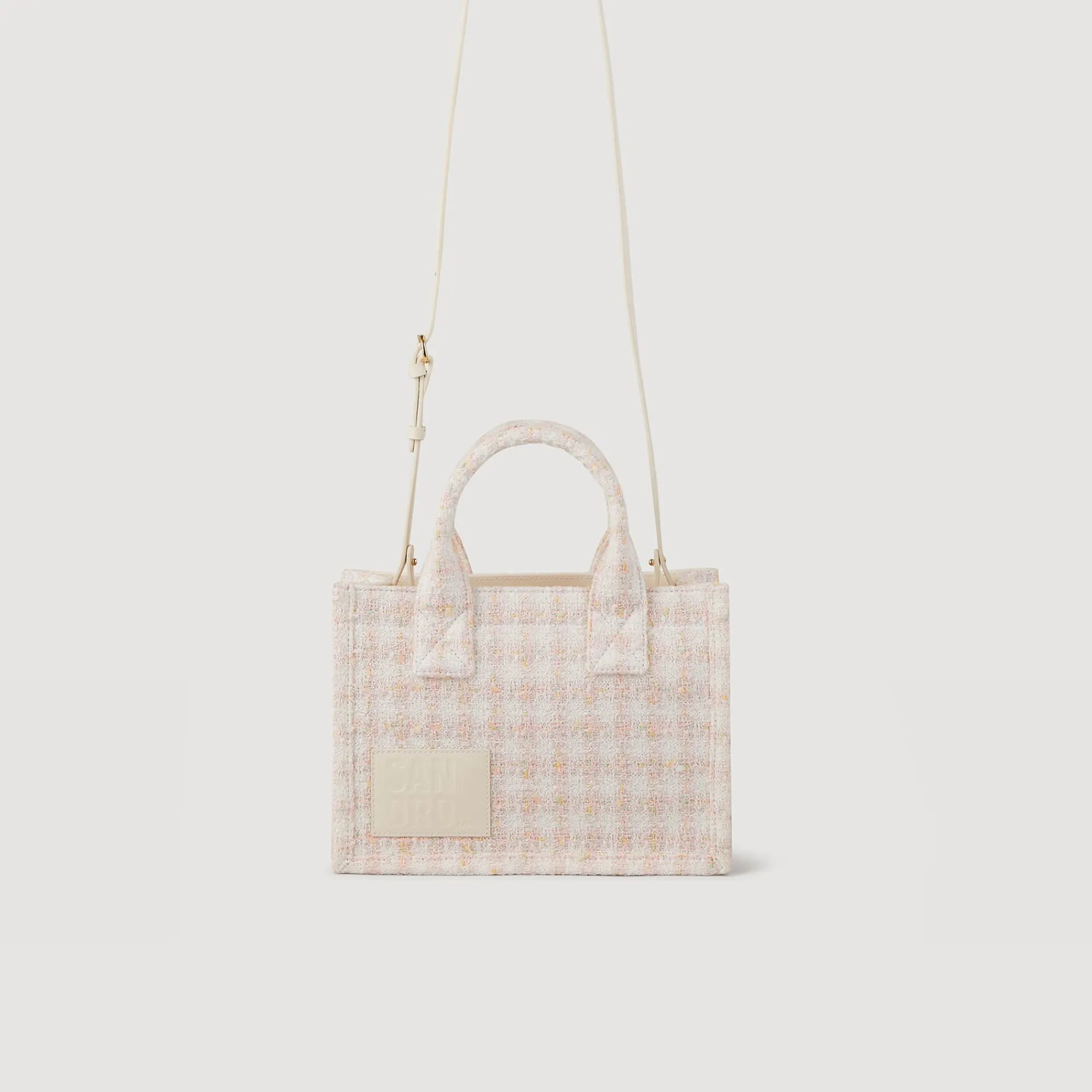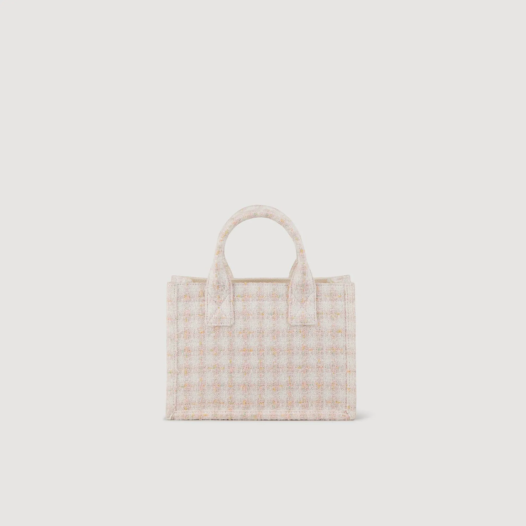 Bolsa Pequena De Sarja Fantasia Com Etiqueta Sandro Gravada Tom Sobre Tom, Fecho Magnético, Alças Pequenas E Bolso Interior.