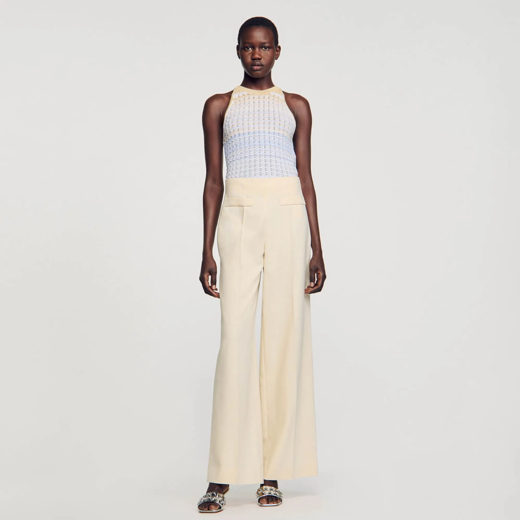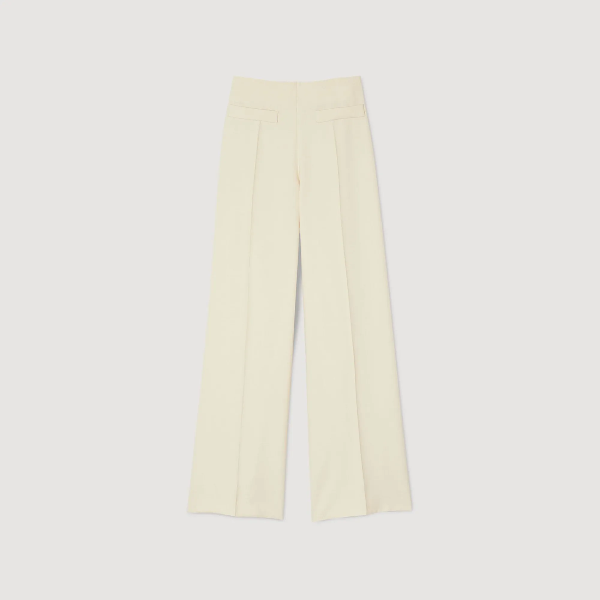 Calças Largas E Justas Com Pregas Marcadas E Bolsos De Debrum. Calças Largas Sandro Femme Presas Presas Marcadas Bolso…