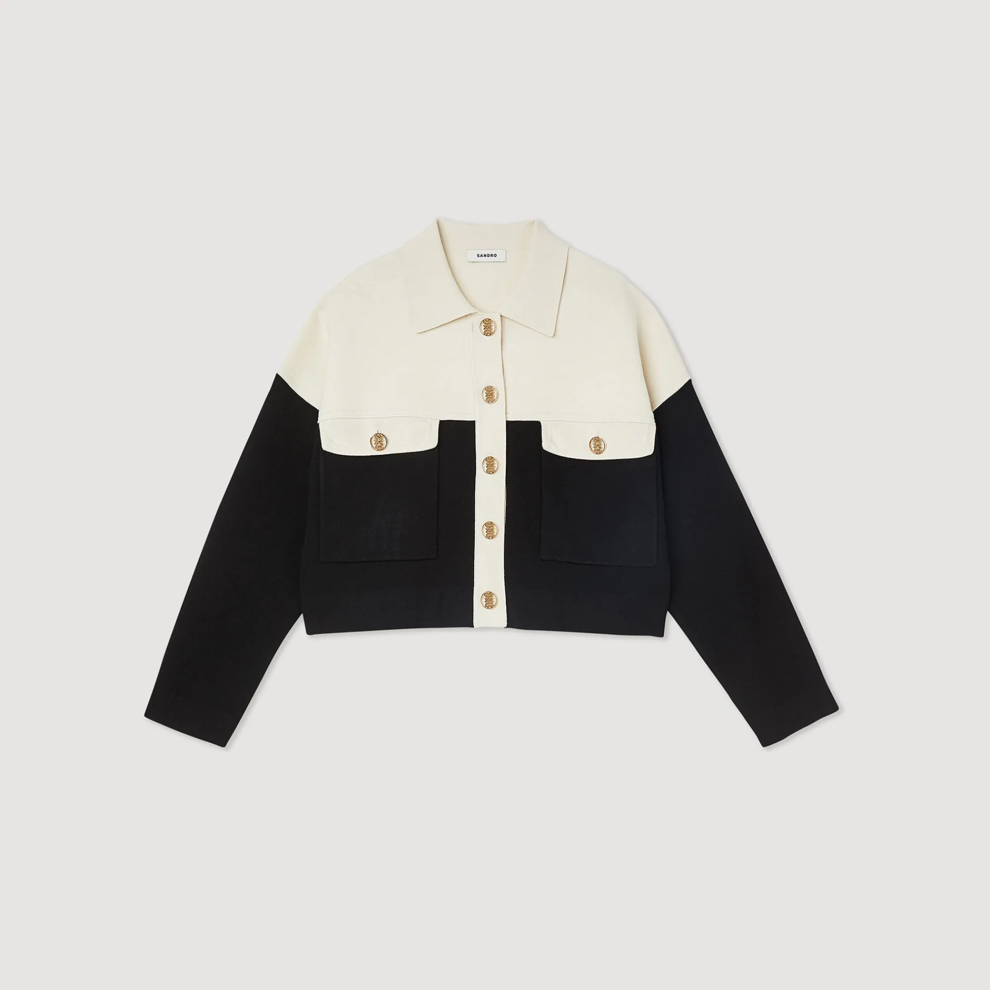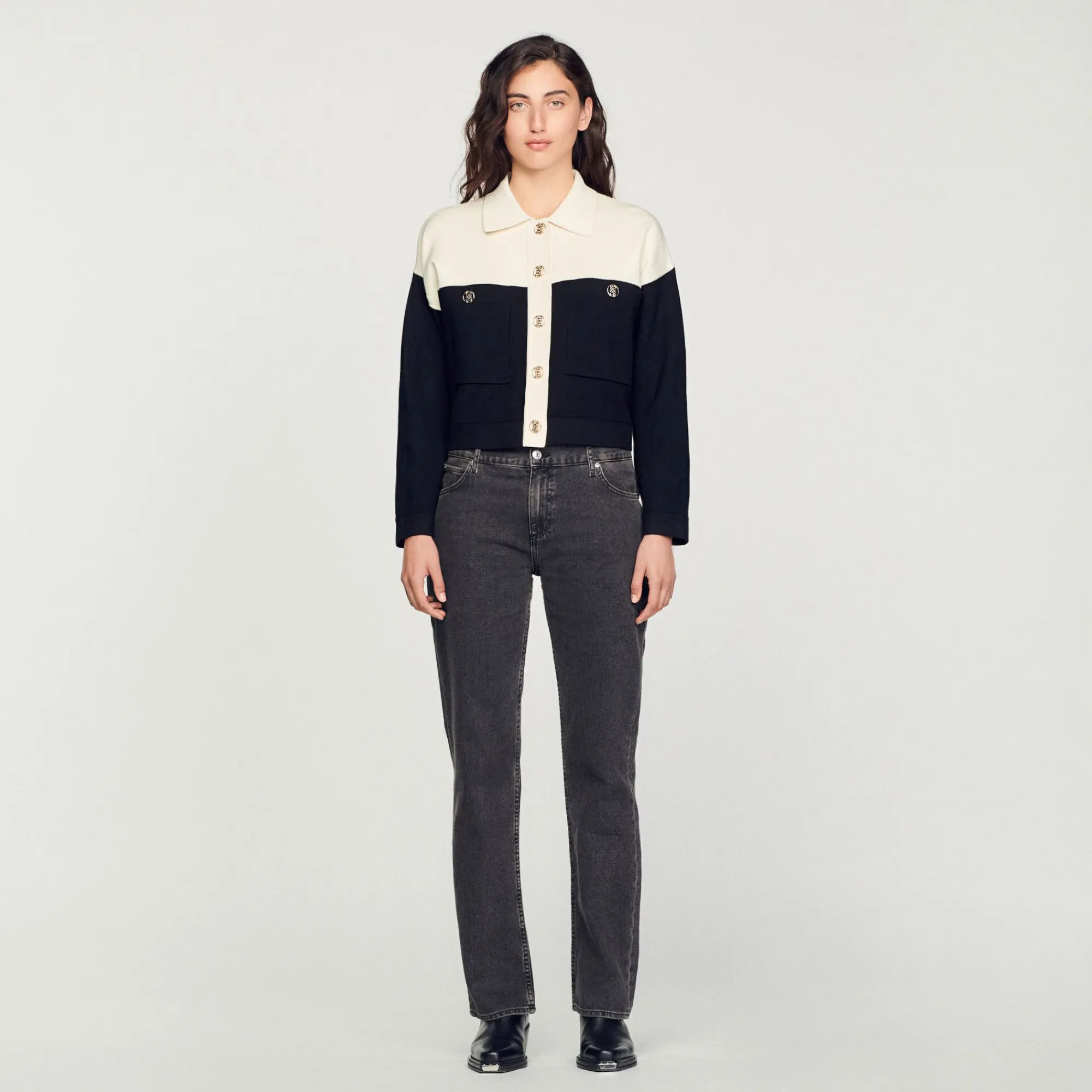 Cardigã Curto Oversized De Manga Comprida E Gola De Camisa, Com Bolsos No Peito E Sublimados Com Botões Dourados Com O Logotipo Duplo S Gravado.