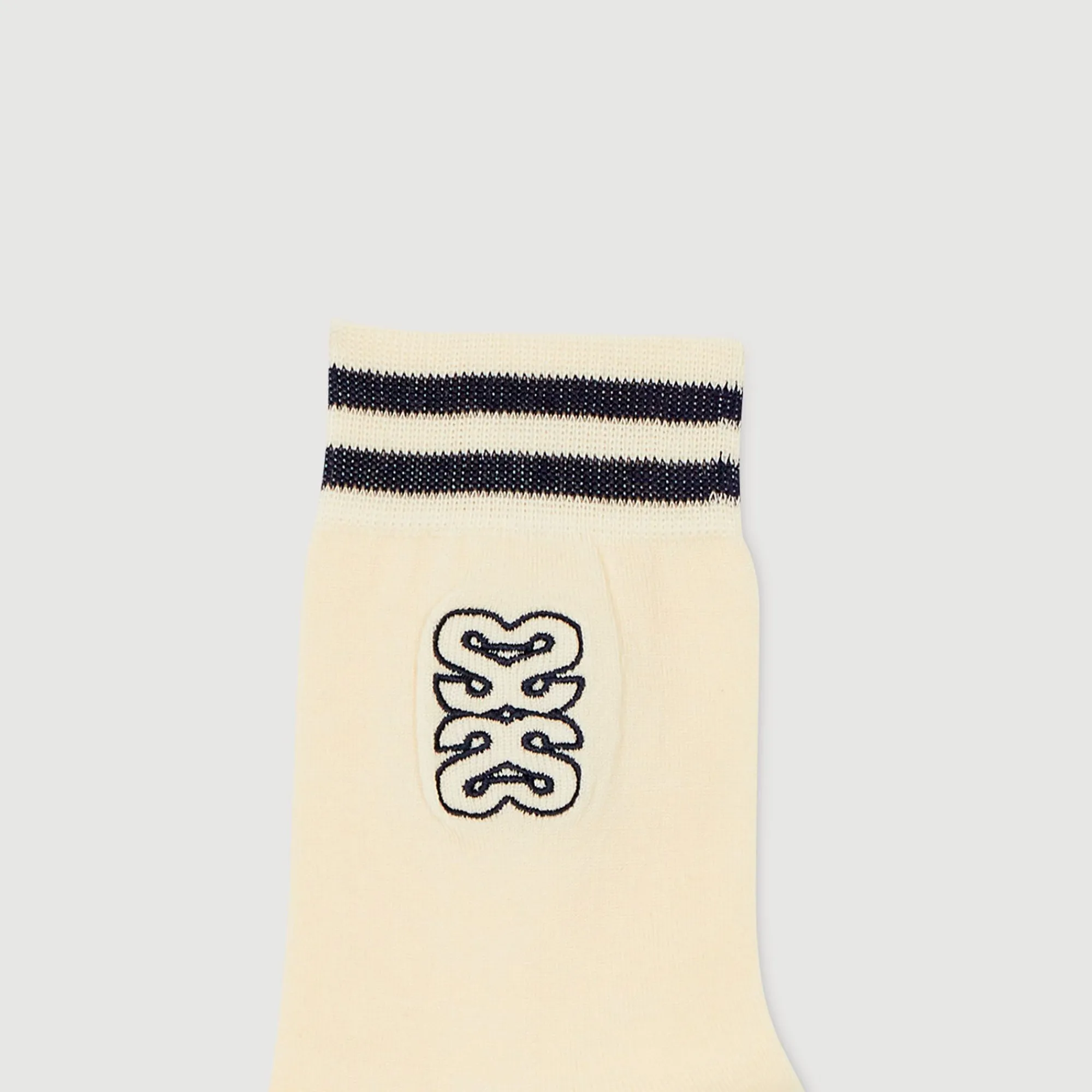 Meias Caneladas Decoradas Com Logótipo Duplo S Bordado. Meias Caneladas Sandro Femme Logotipos Bordados