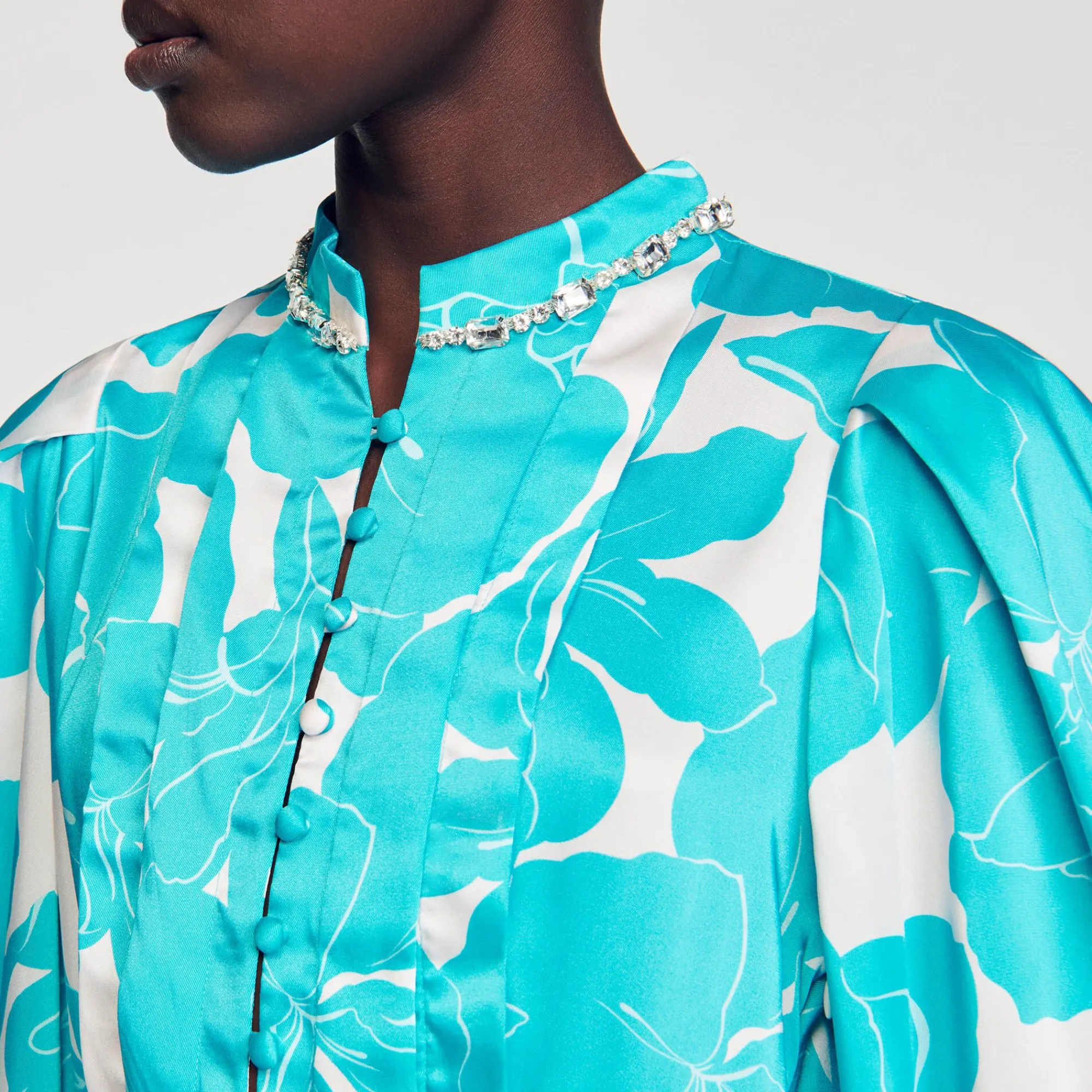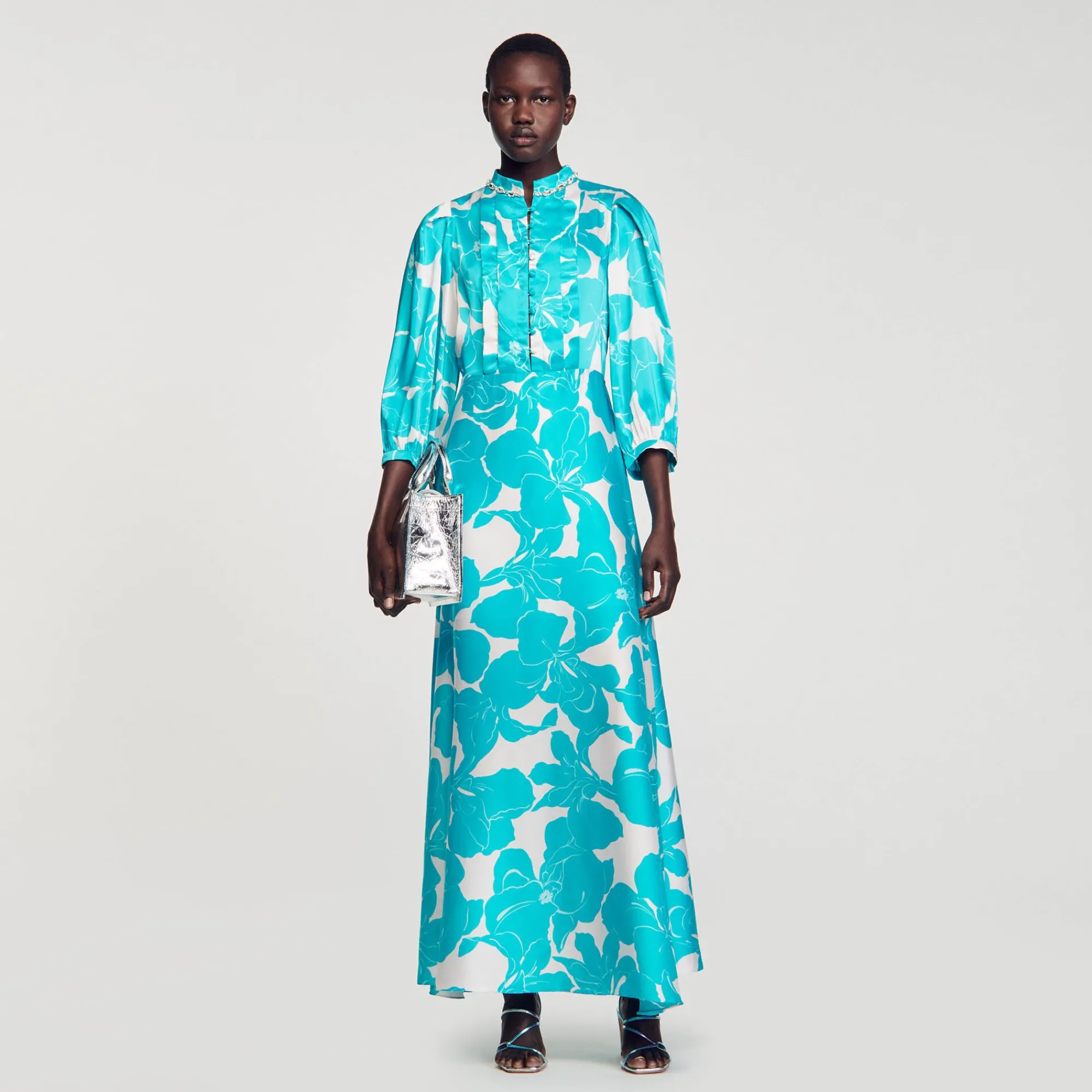 Mulheres Sandro Paris Robe Longue Fluido A Imprime Fleuri