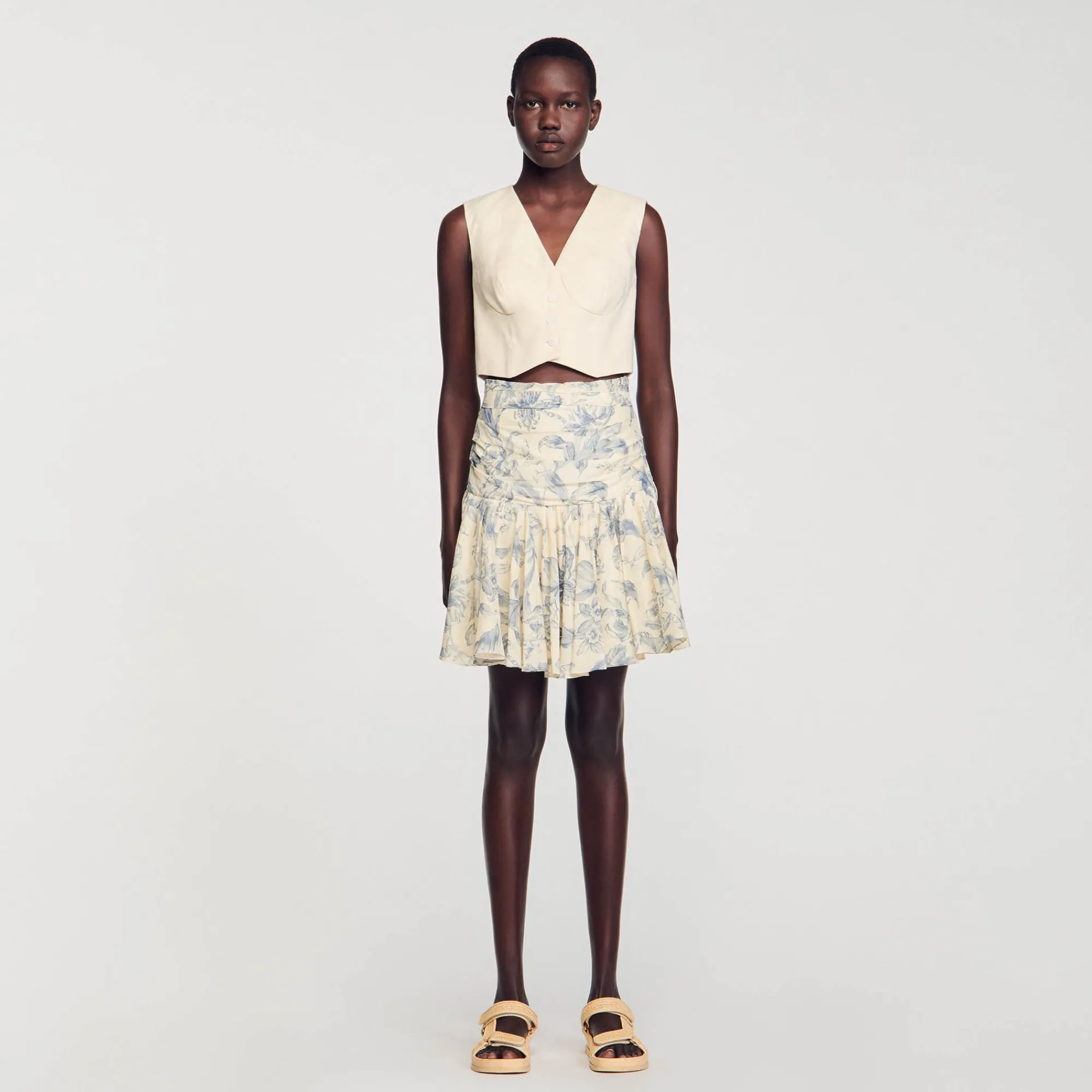Saia Curta Drapeada E Plissada, Decorada Com Estampa Floral Em Toda A Peça. Saia Curta Sandro Femme Top Franzido Base P…