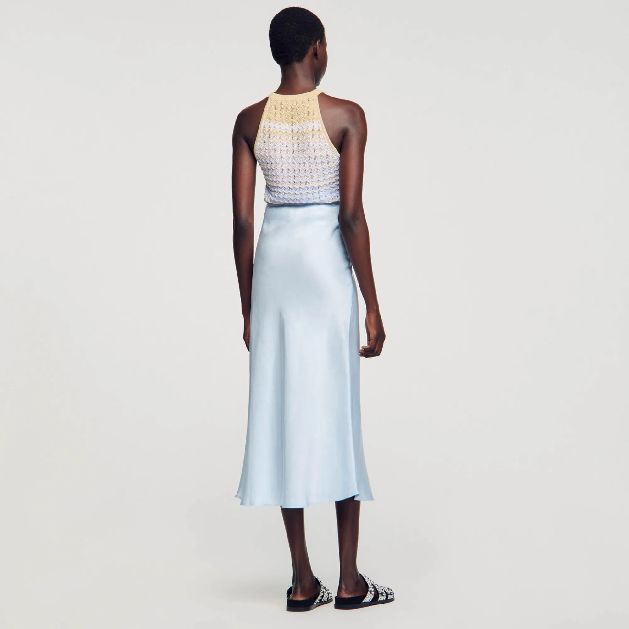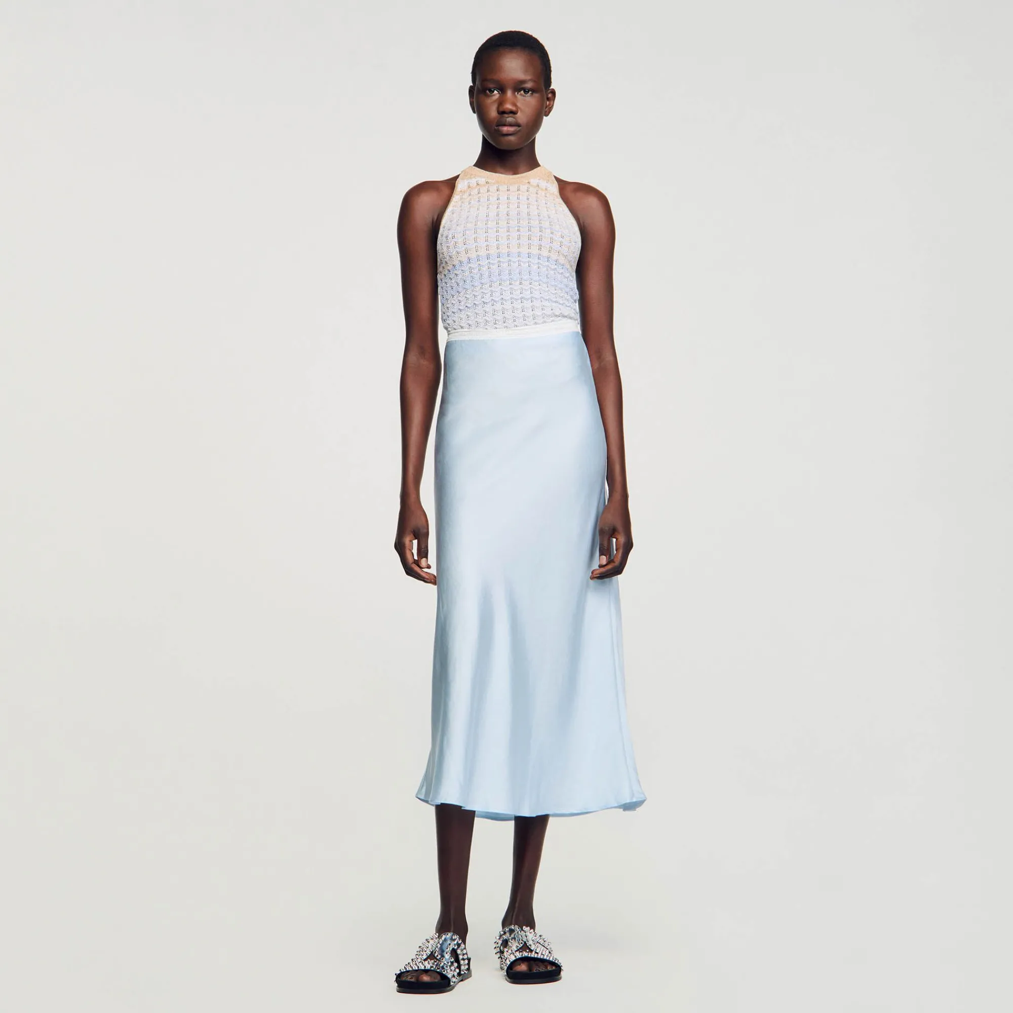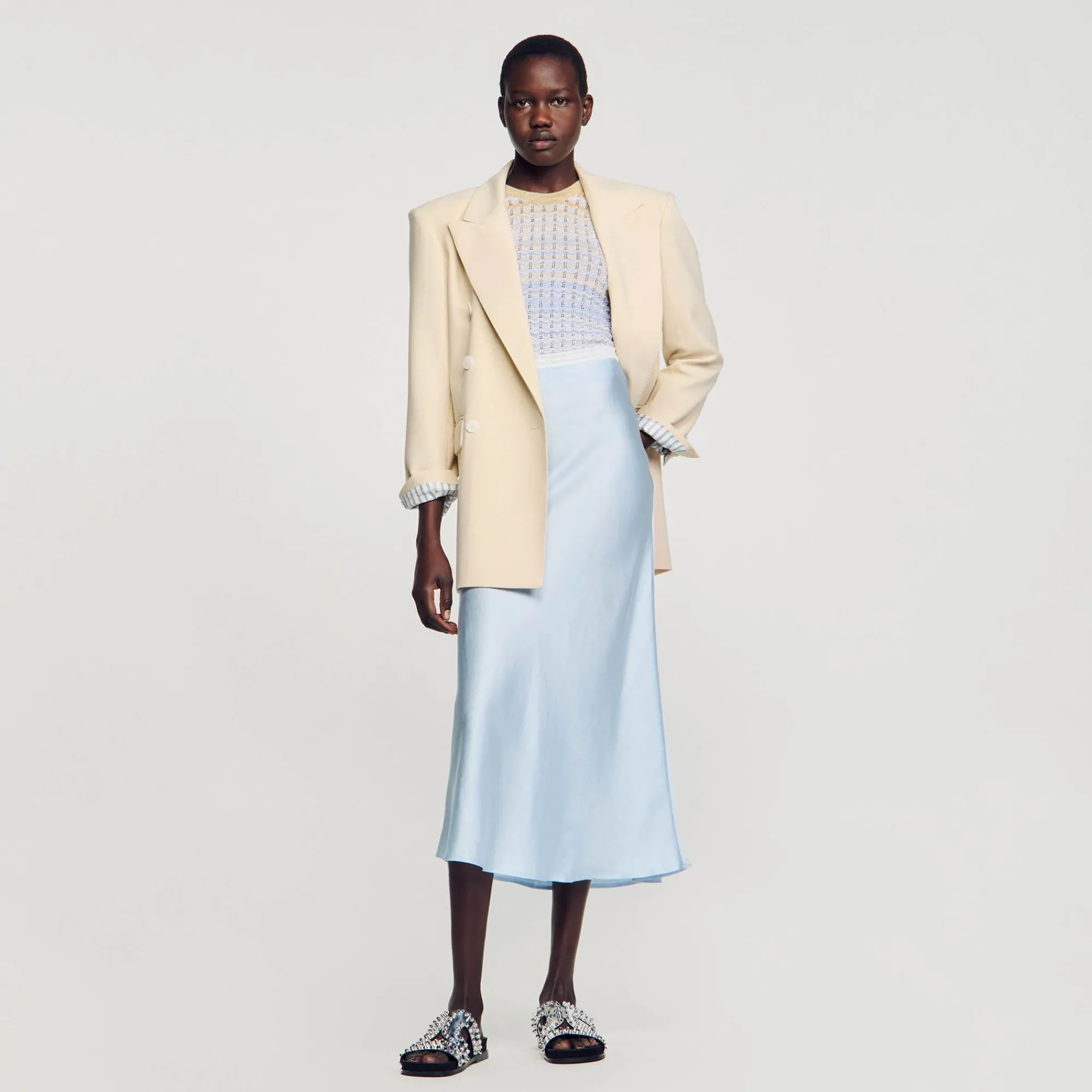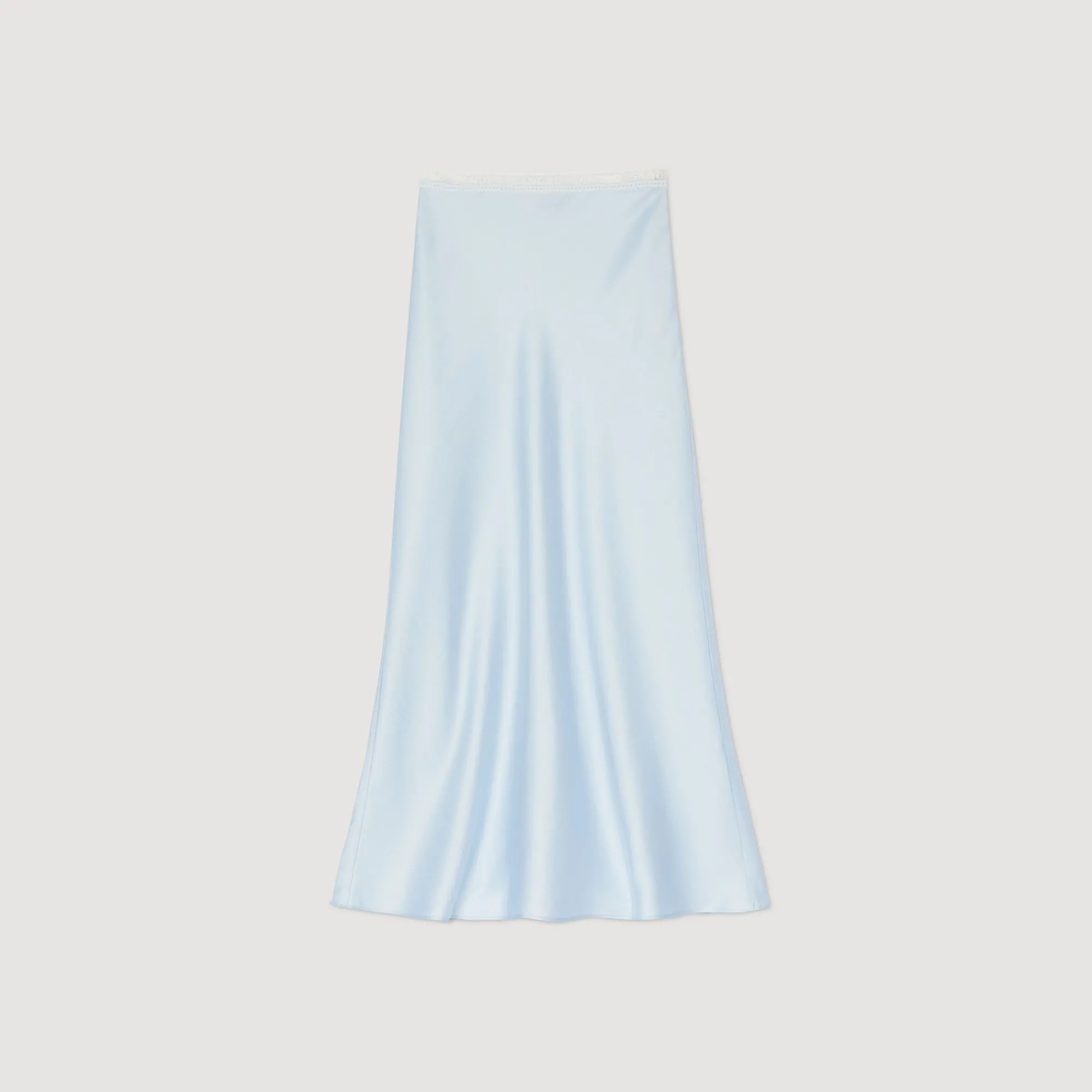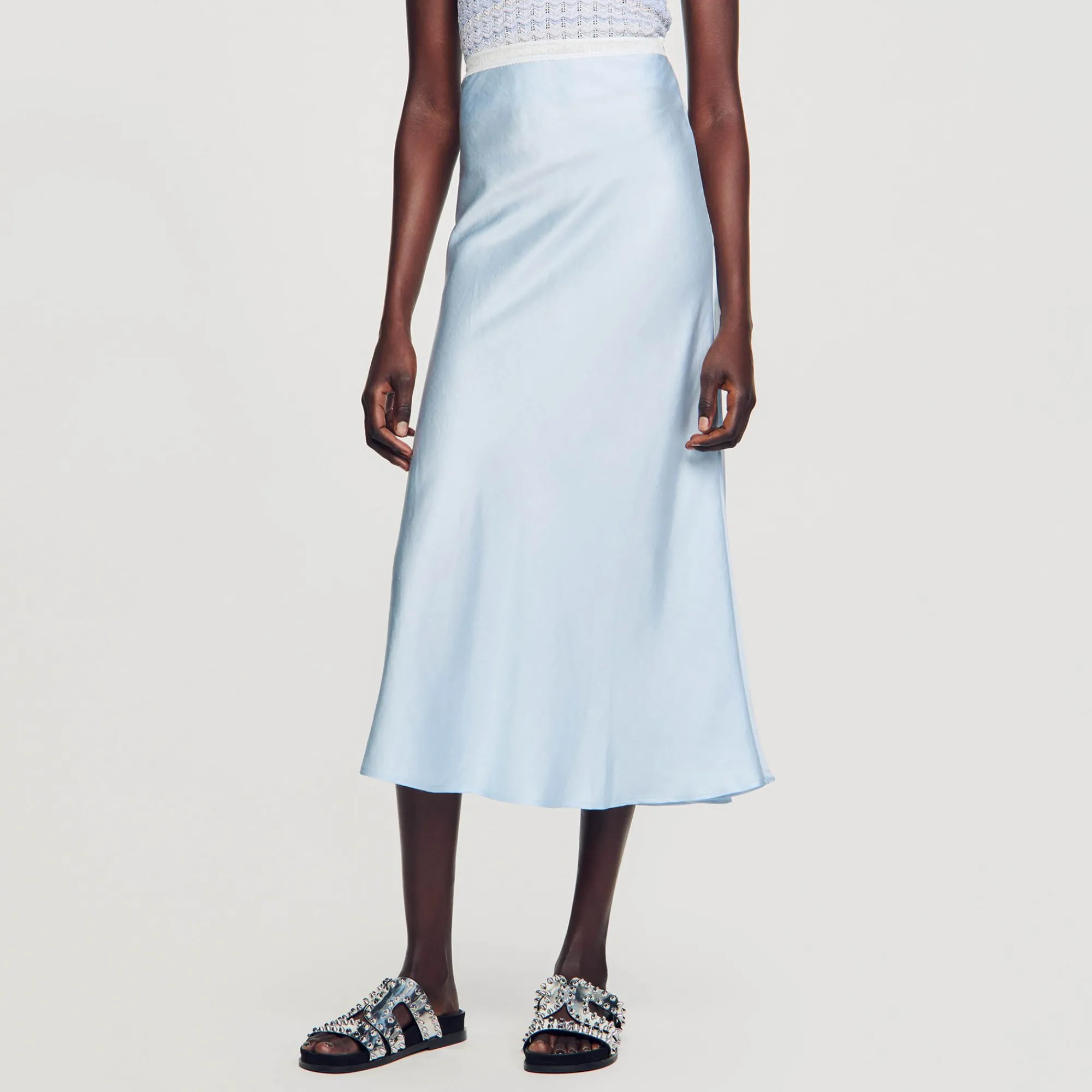 Saia Longa Reta E Fluida Em Mescla De Linho Acetinado, Com Cinto De Renda Na Cintura Com Iniciais Sandro. Saia Longa San…