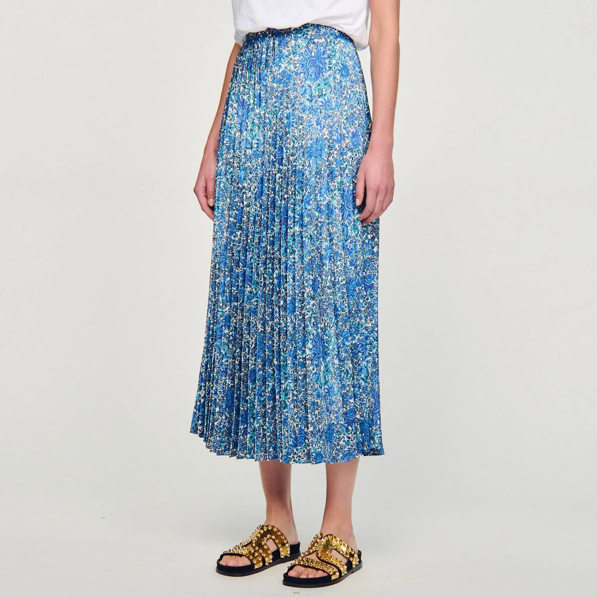 Saia Longa, Fluida E Plissada Com Detalhe De Estampa “Indie Liberty” E Fechamento Em Zíper. Sandro Saia Feminina Lo…